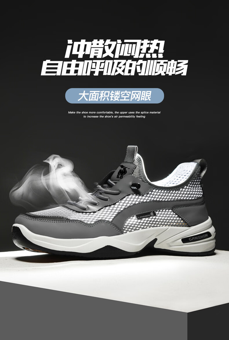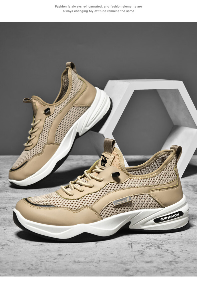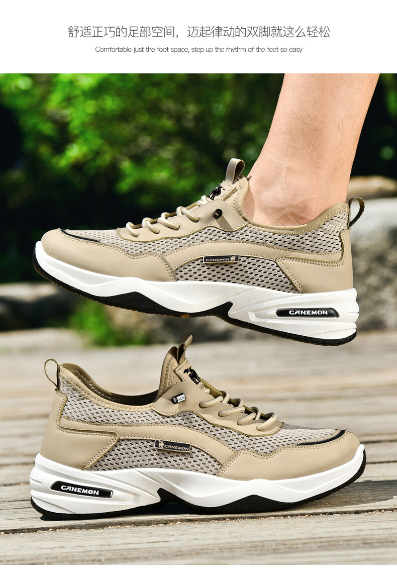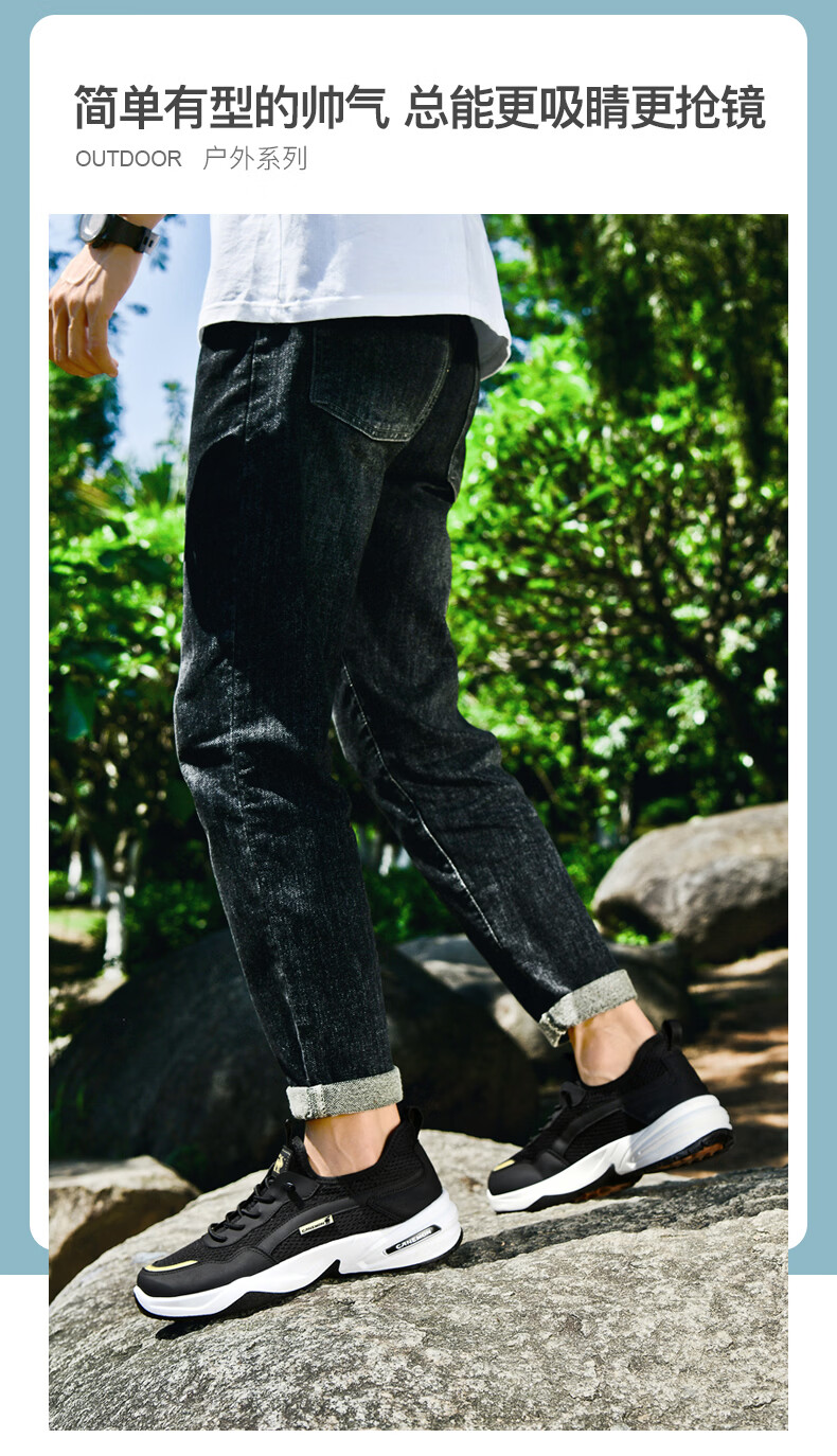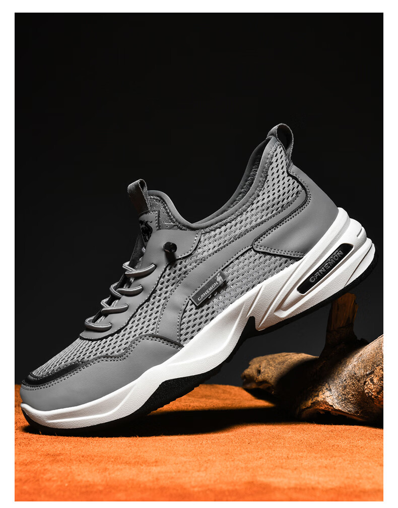 保罗骆驼运动鞋男夏季新款透气网面轻弹跑步鞋舒适耐磨休闲鞋男 黑色 38