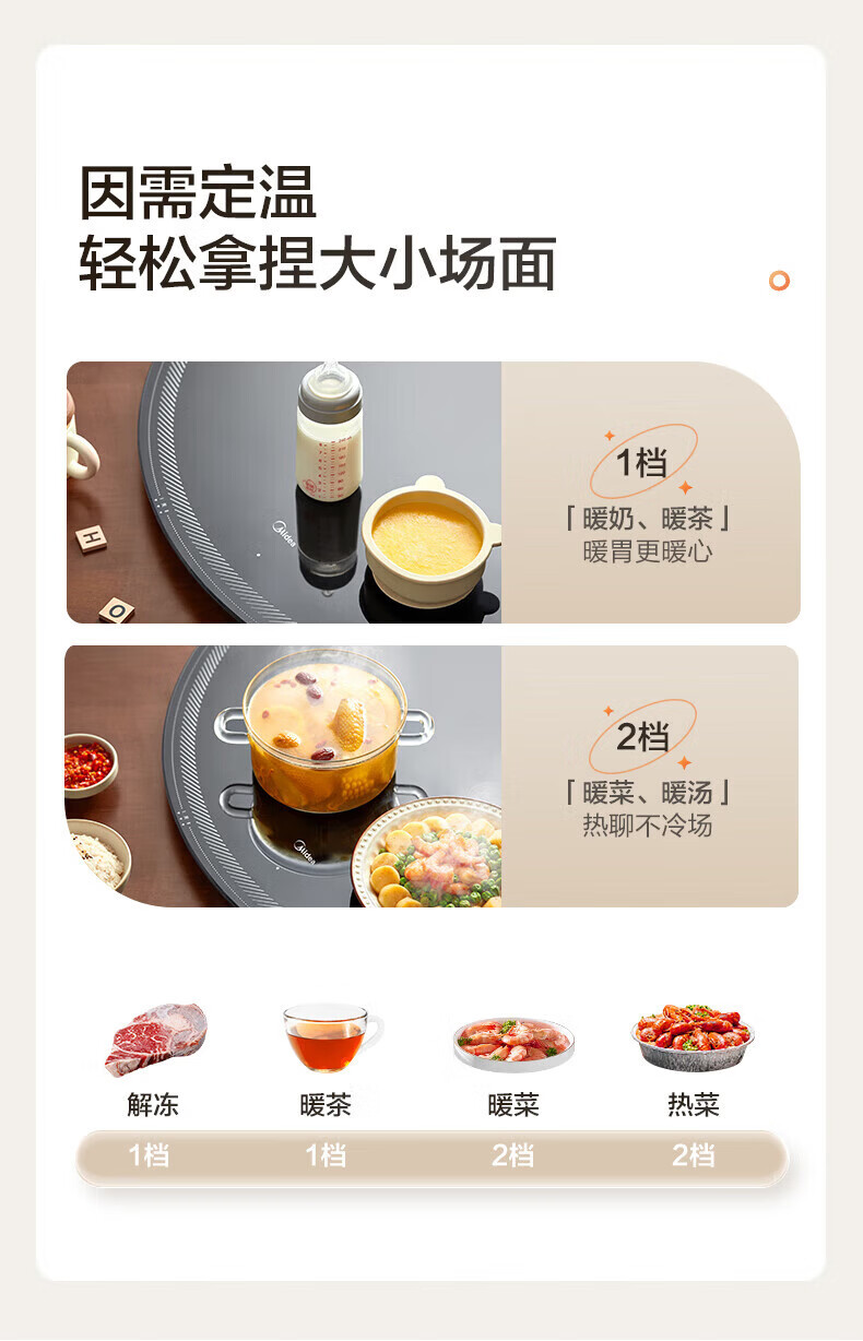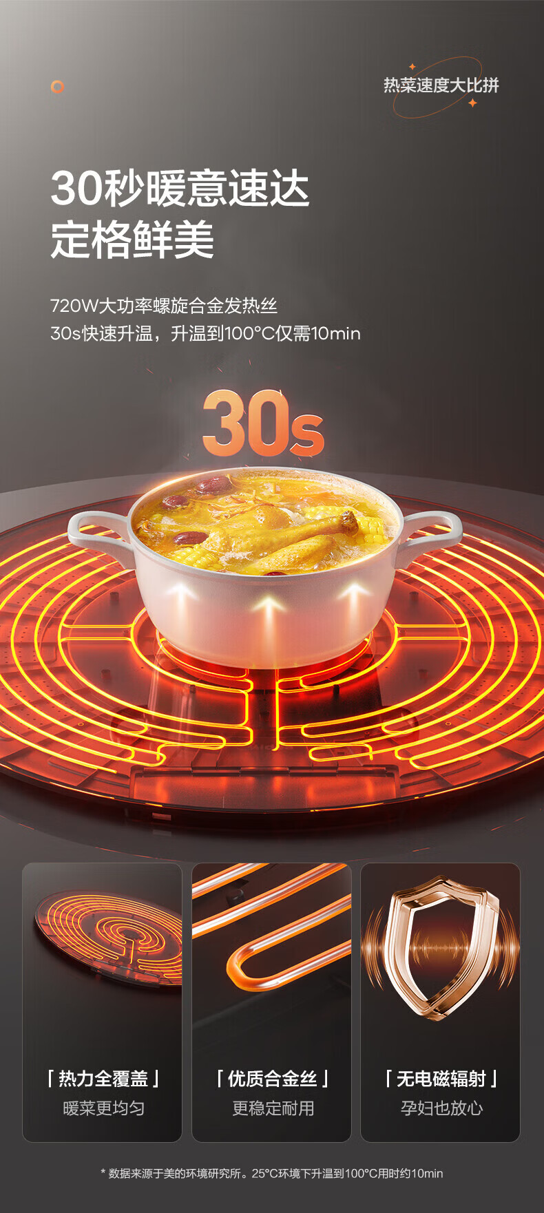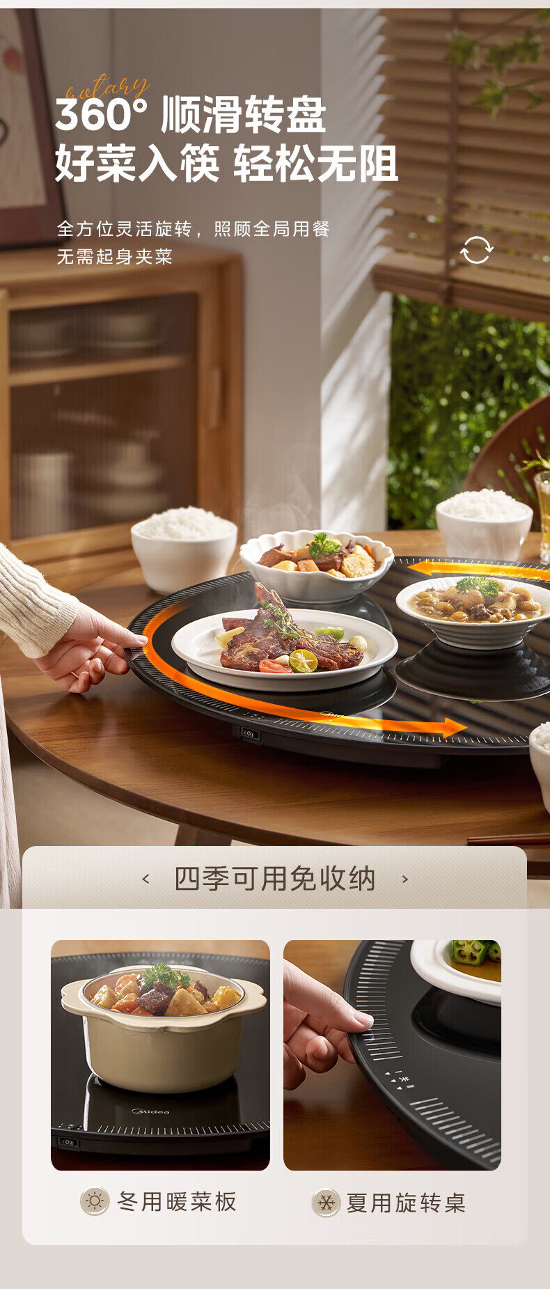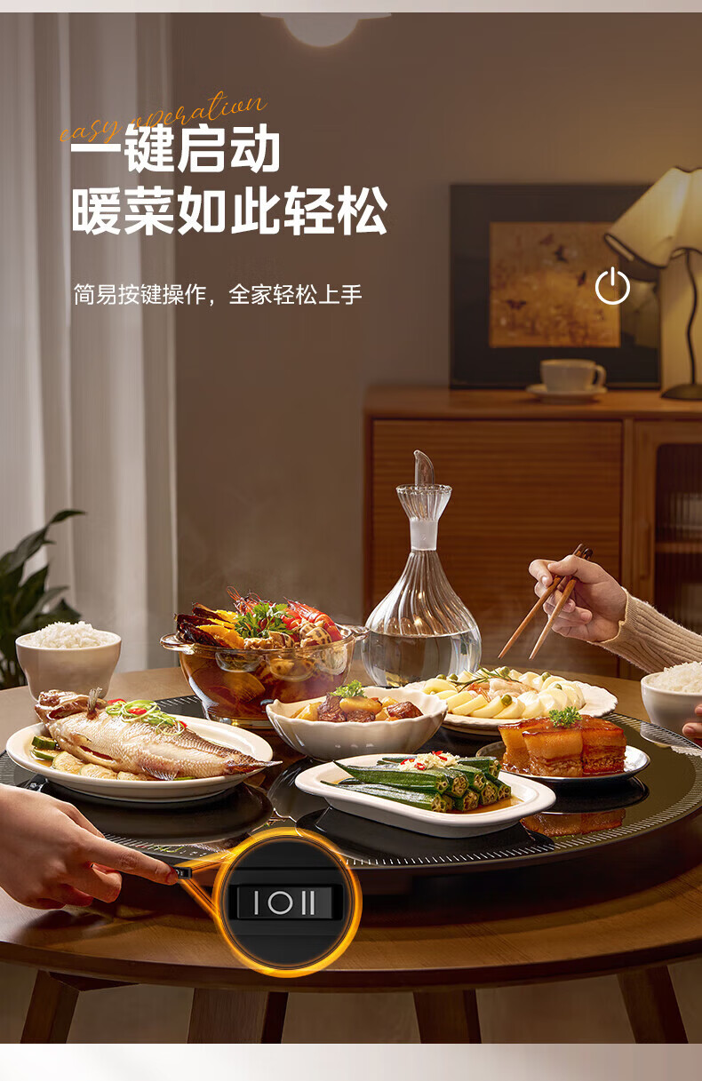 美的(Midea)【升级石墨烯速热】暖菜板加热板热菜板保温板家用多功能餐桌360度转盘定时加热垫饭菜保温神器 【石墨烯速热60CM】双档调节