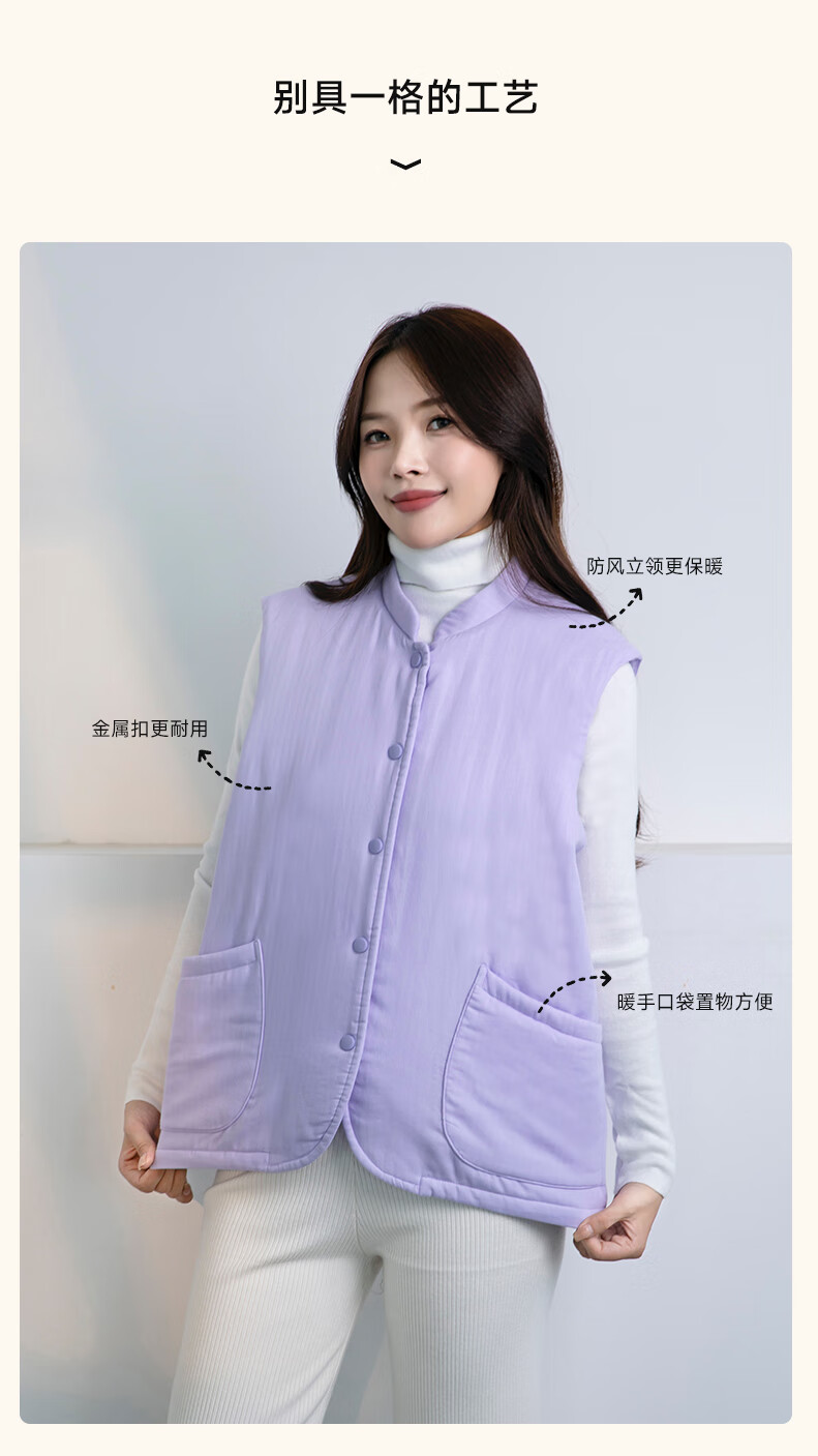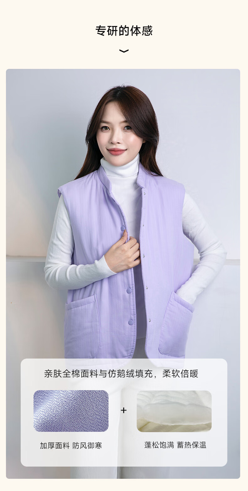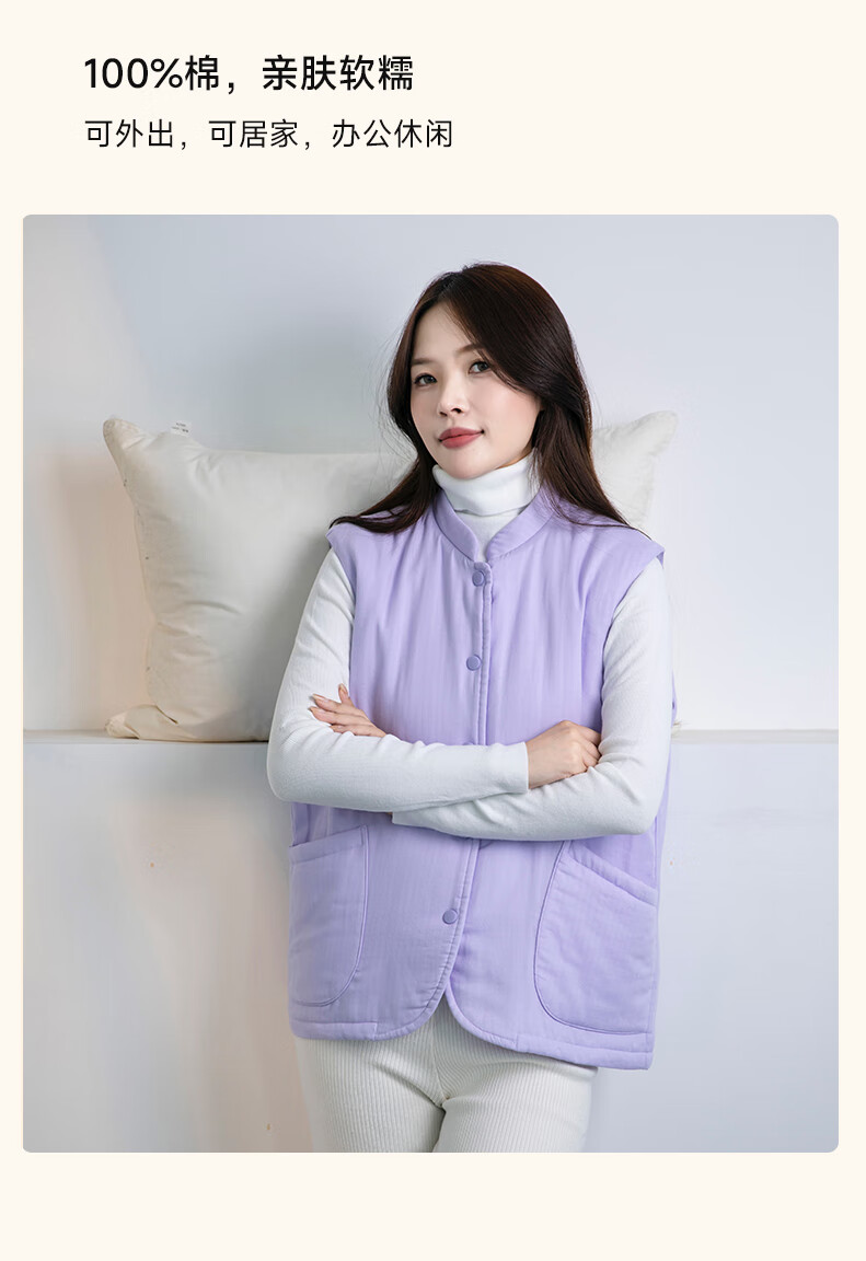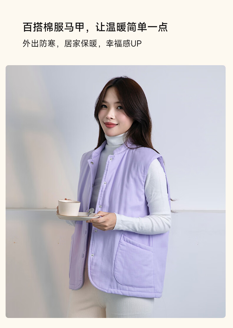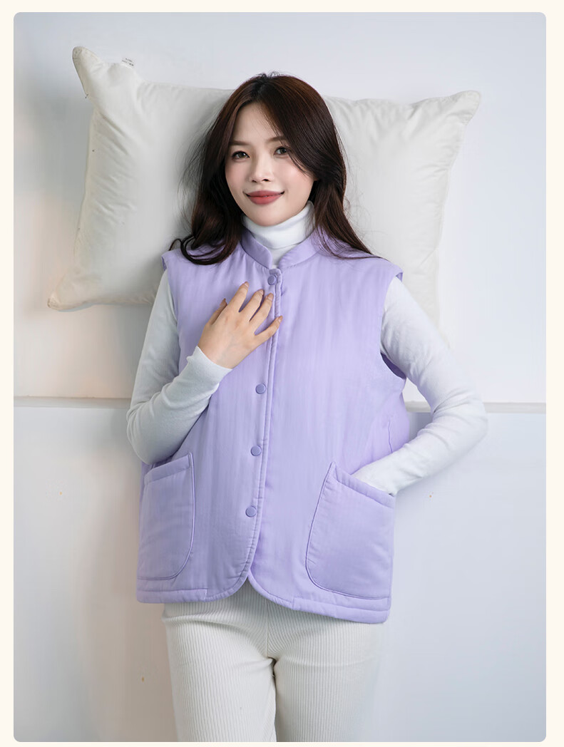 宜色家冬季加厚睡衣背心 纯棉纱织保暖棉服褂子情侣男女士可外穿家居服 傲然灰 M (女130斤)或(男160斤)