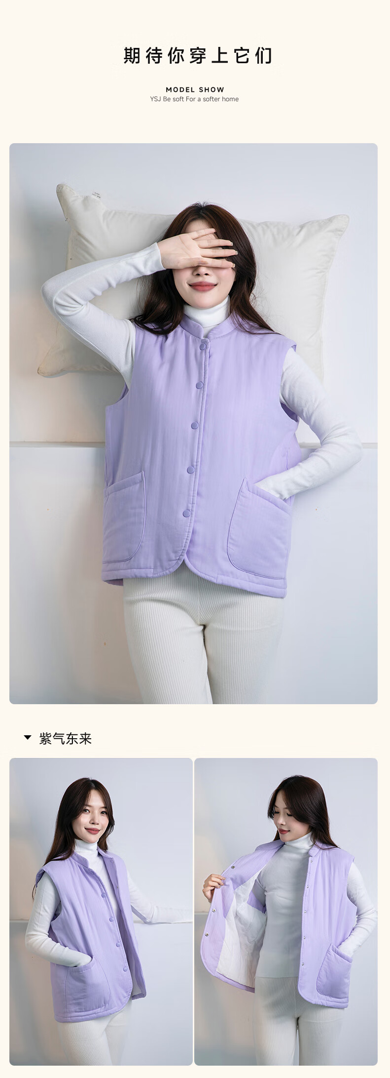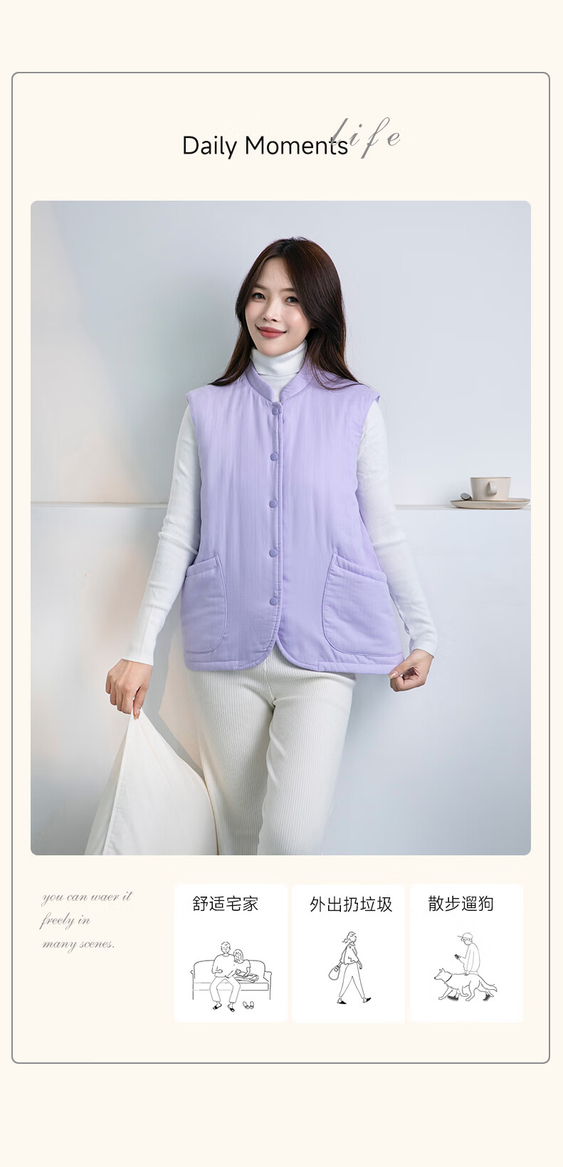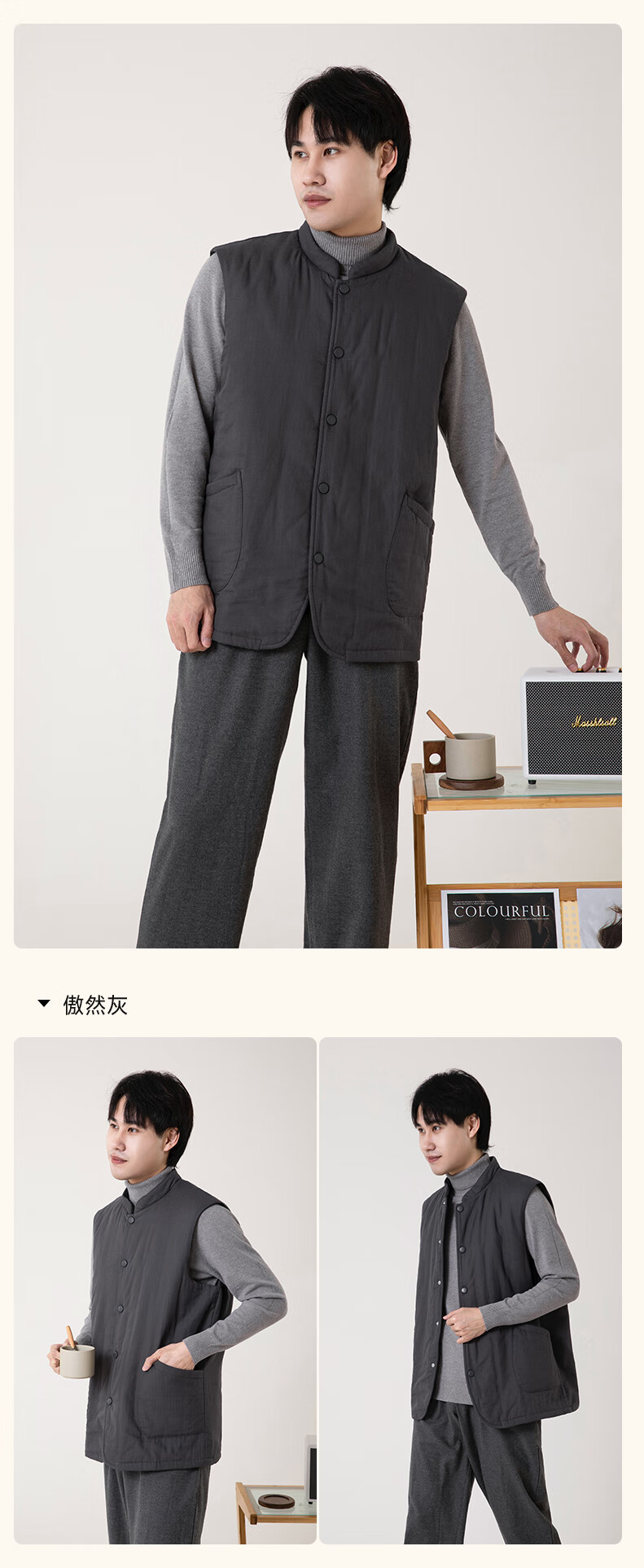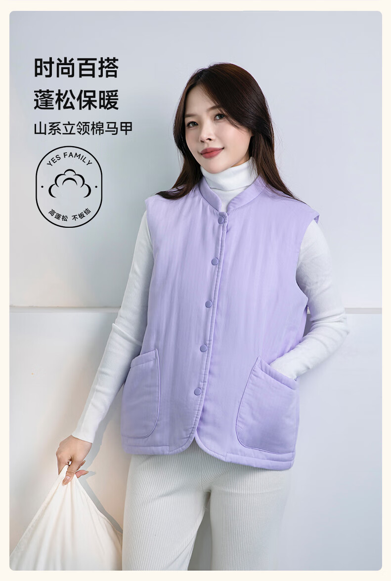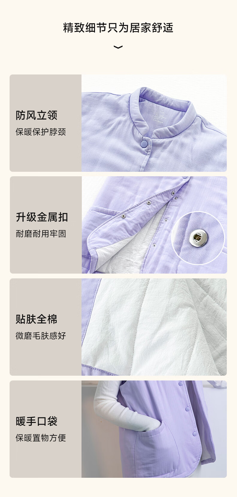 宜色家冬季加厚睡衣背心 纯棉纱织保暖棉服褂子情侣男女士可外穿家居服 傲然灰 M (女130斤)或(男160斤)