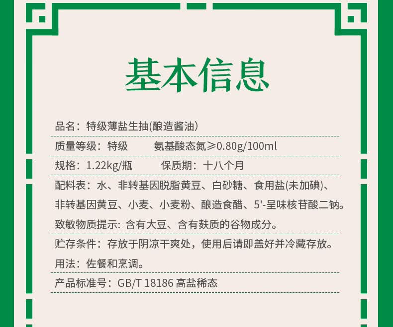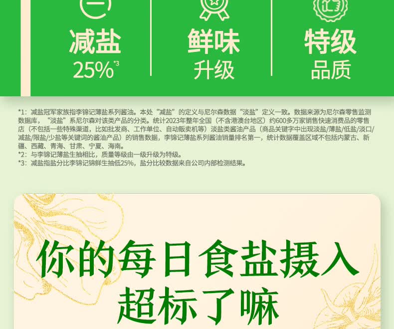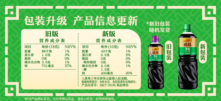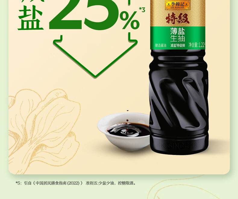 李锦记特级薄盐生抽1.22kg 减盐25% 特级品质 减盐特级鲜 酿造酱油