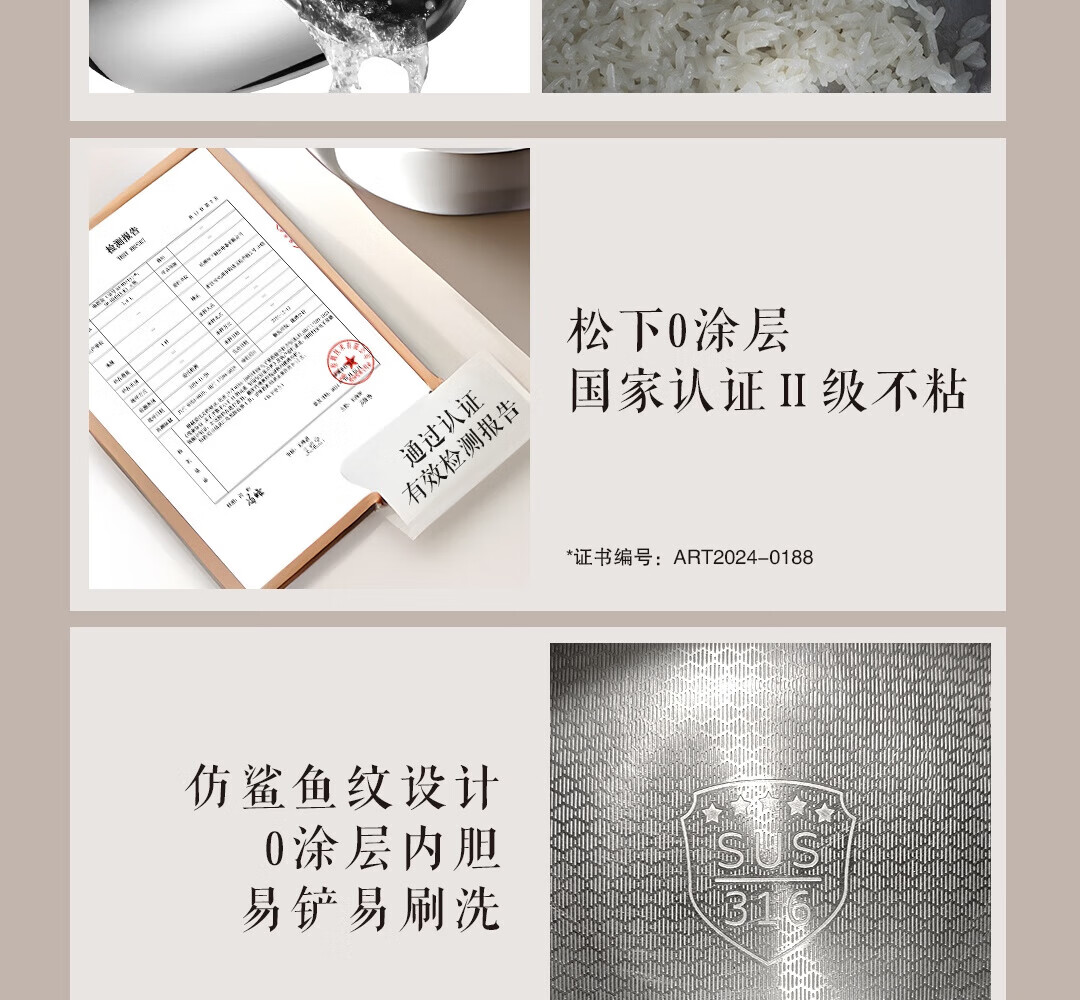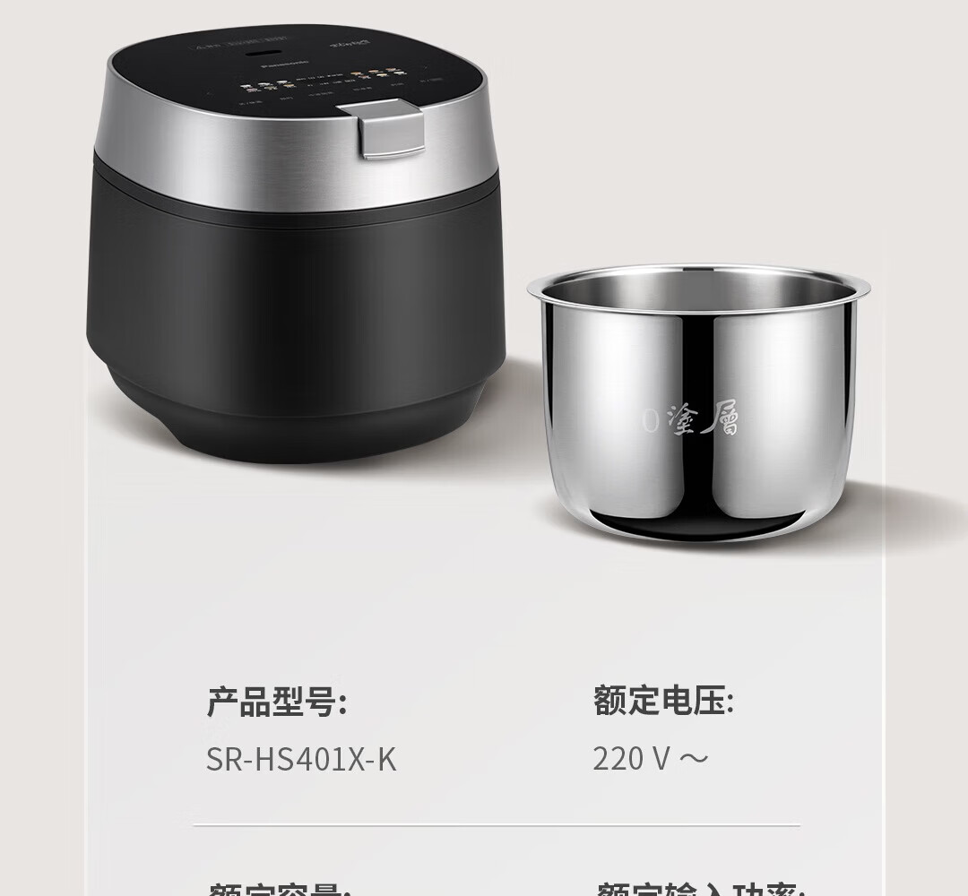 松下(Panasonic)电饭煲 IH可变压技术 变频电饭锅 零涂层内胆智能预约煮饭锅3.8升 SR-HS401X-K