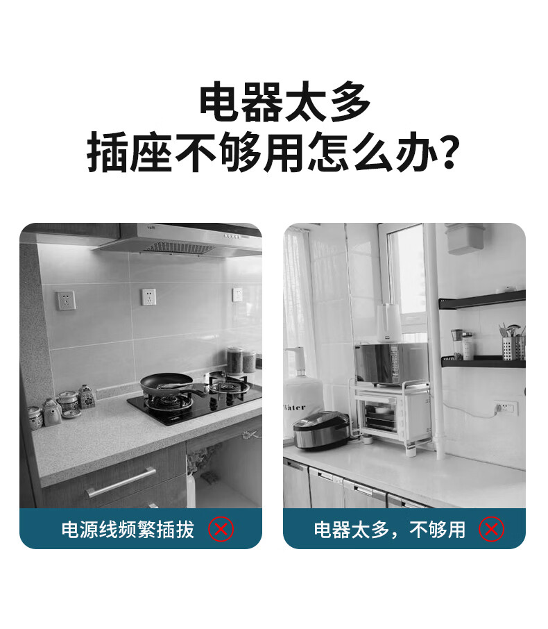 国际电工(FDD)原位扩展插座86型家用厨房分控带开关插排多功能USB快充拓展排插 白色带USB-三开21孔-向左扩展(2.1A)