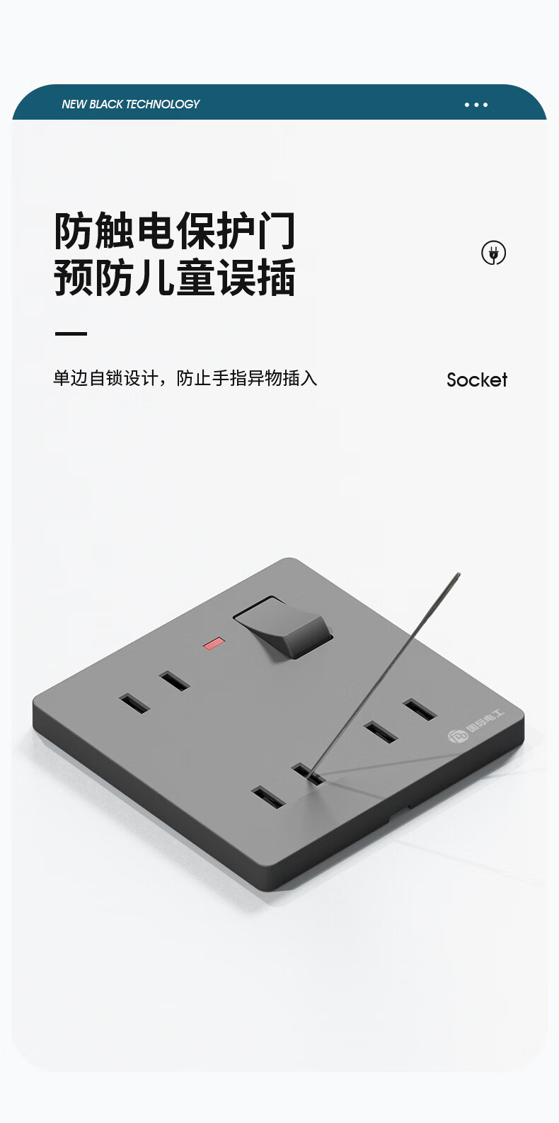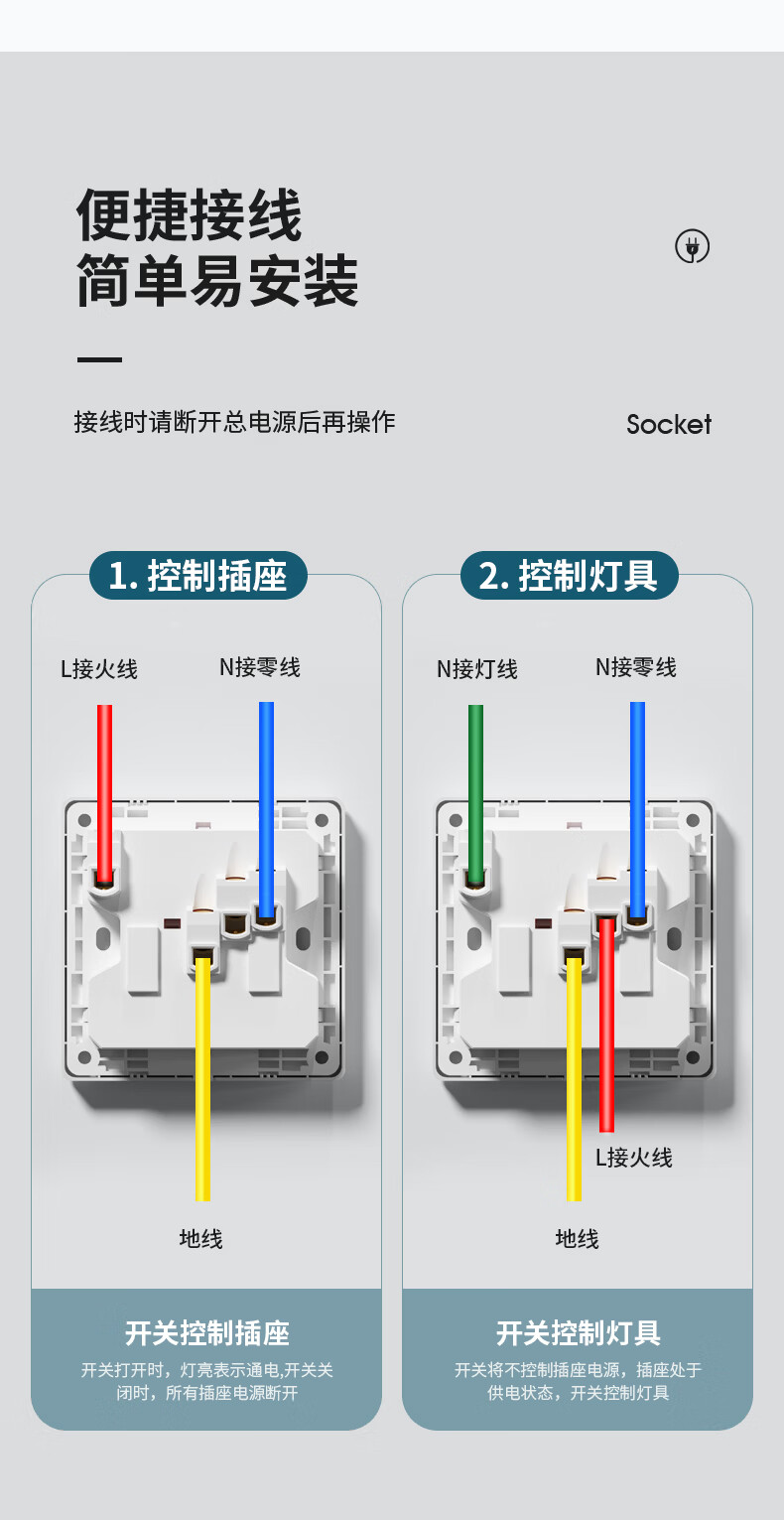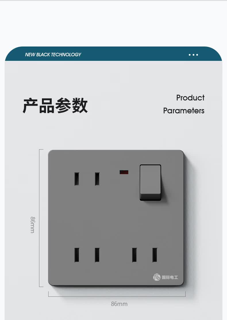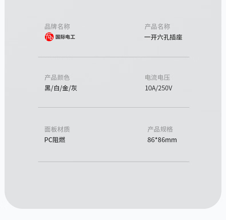 国际电工(FDD)86型暗装一开六孔插座带开关一键控制面板10A二插卧室用电源插座 一开六孔丨灰色