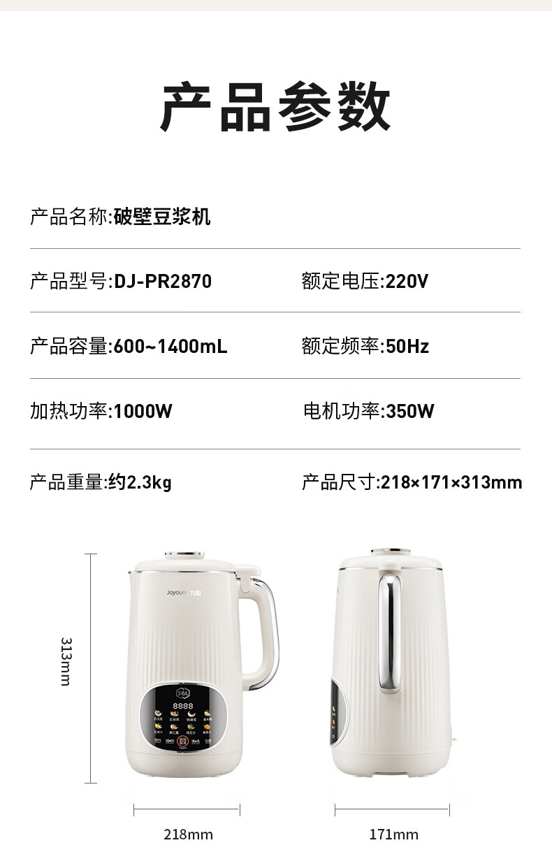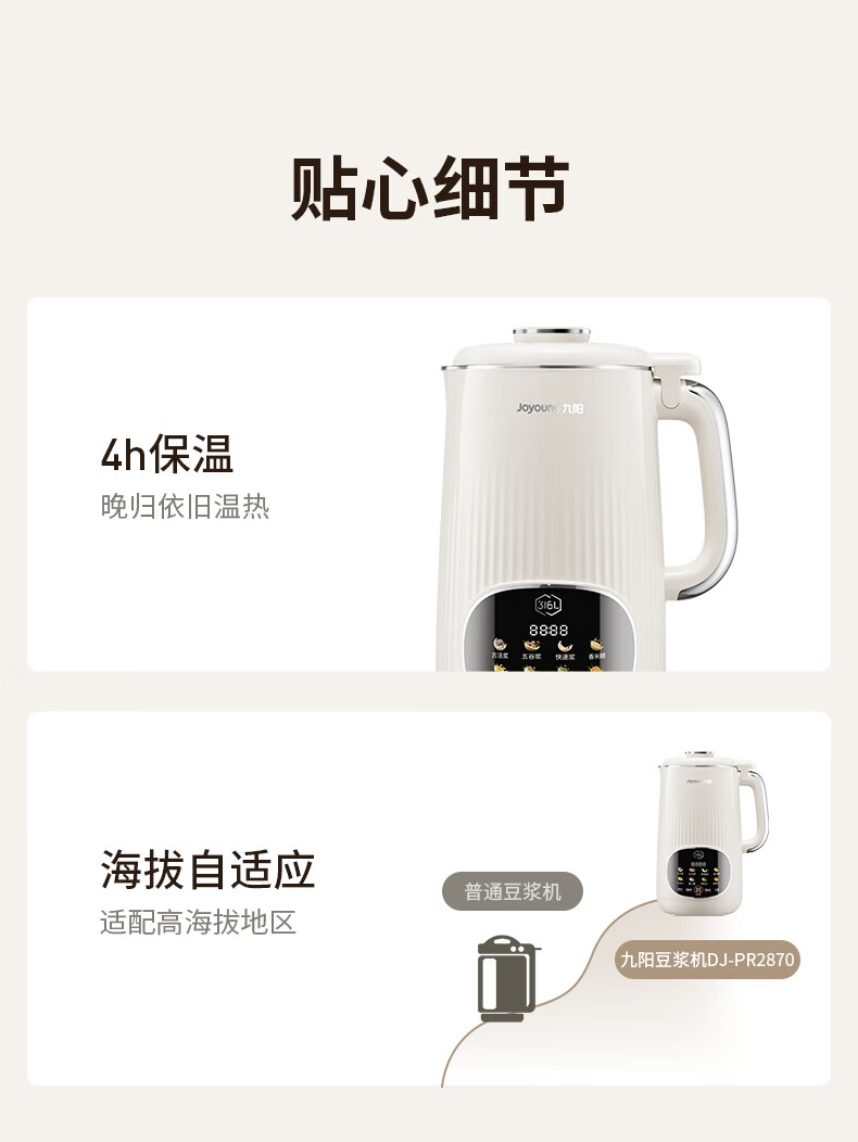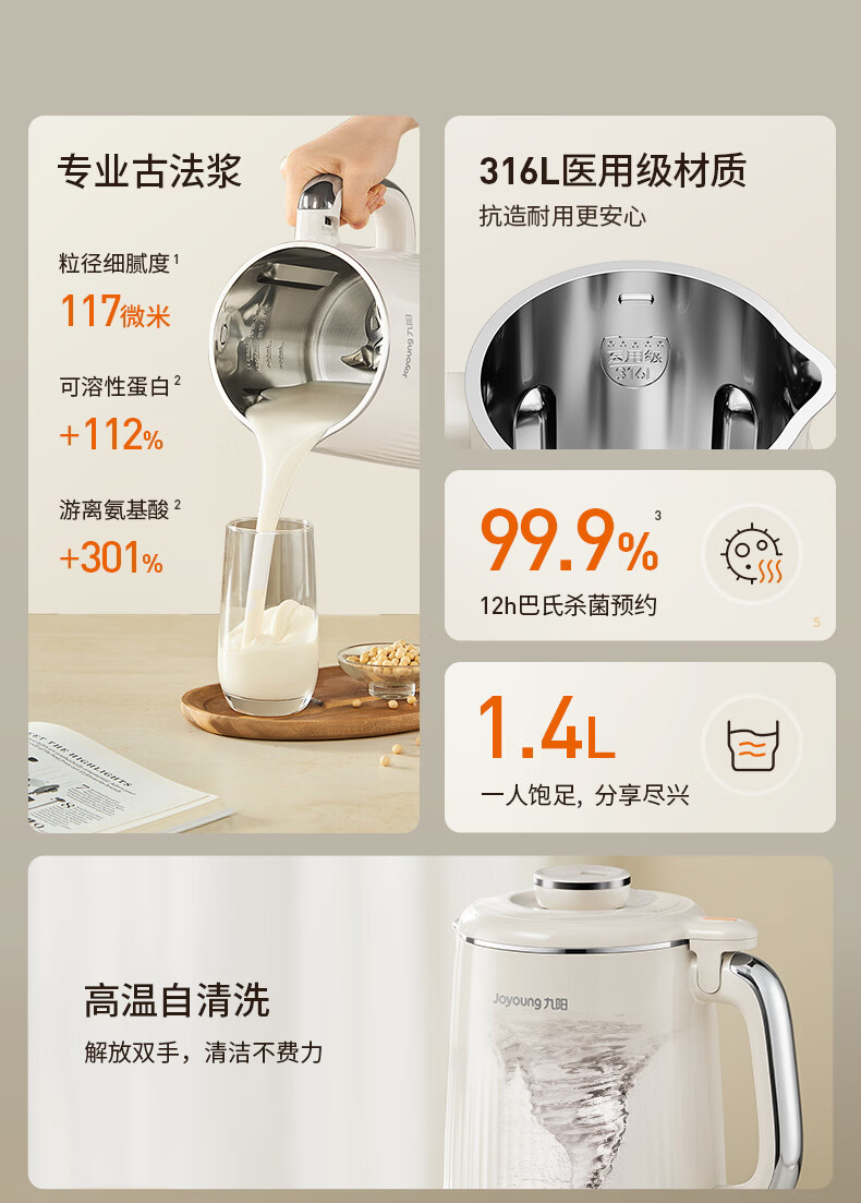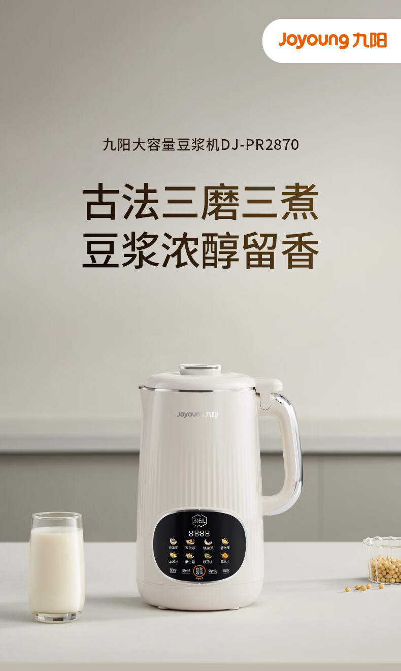 九阳(Joyoung)豆浆机全自动免煮2026新款免滤古法浆316L不锈钢内胆家用 魔法豆 1.4升大容量破壁机轻音自清洗 DJ-PR2870【细腻香浓古法浆】 1.4L