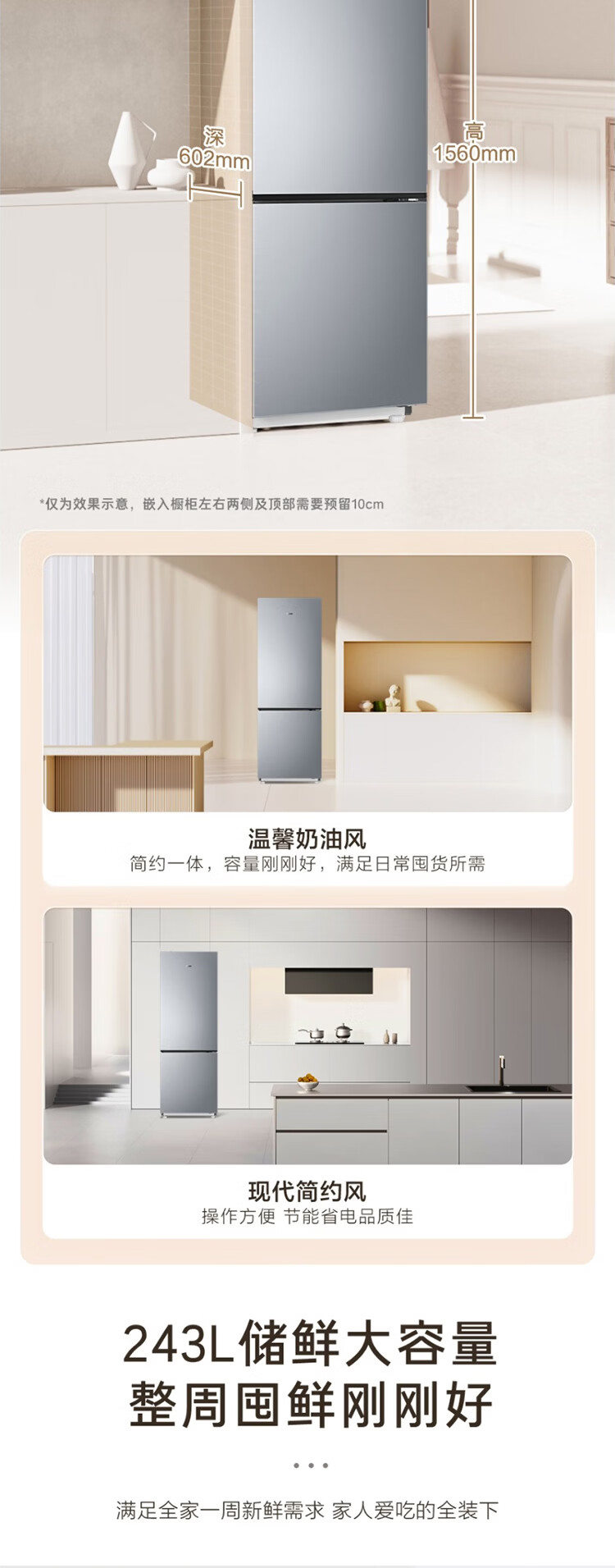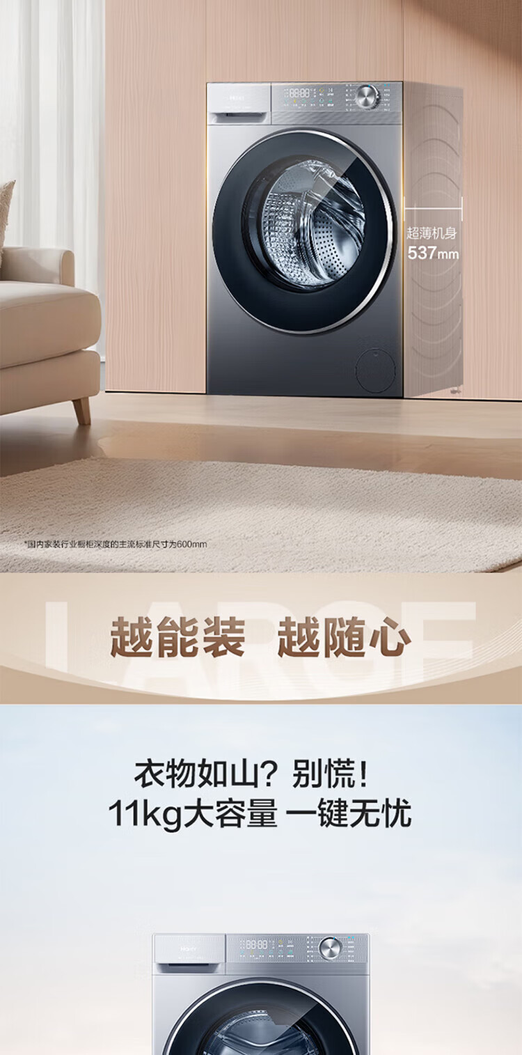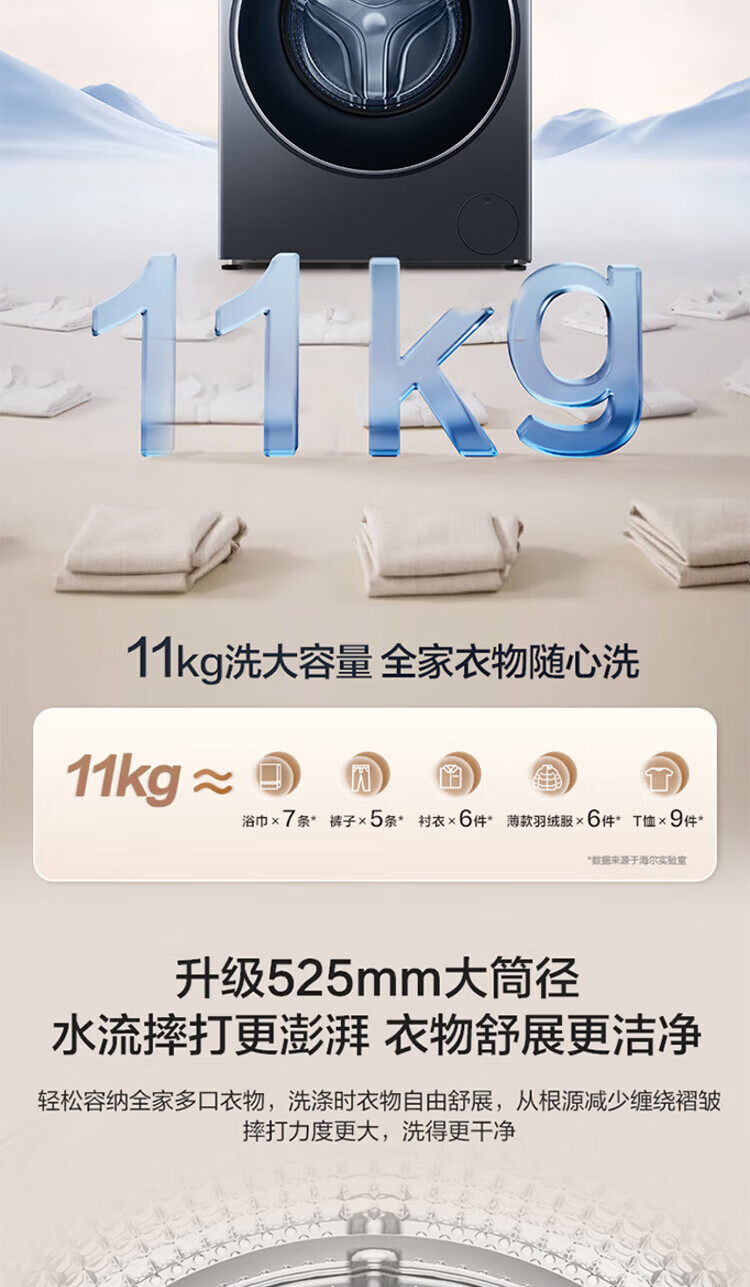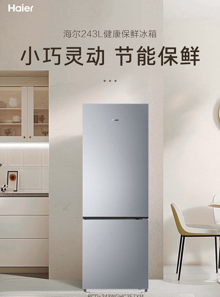 海尔(Haier)冰洗套装超薄243升净味无霜一级双变频两门冰箱+11公斤大容量蓝盾除菌全自动变频滚筒洗衣机带烘干洗烘一体机 243升冰箱净味无霜+11公斤洗烘一体机除菌冲浪洗