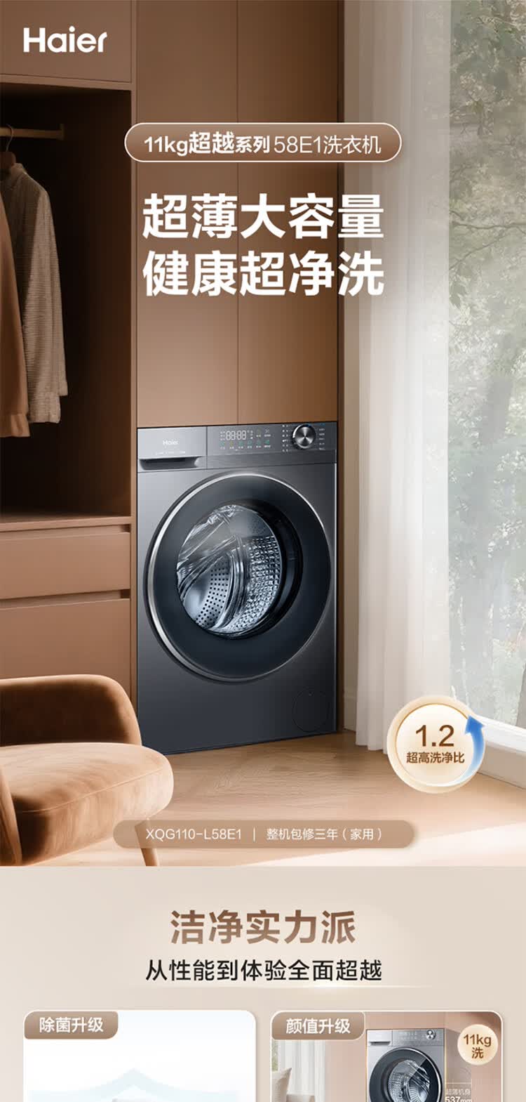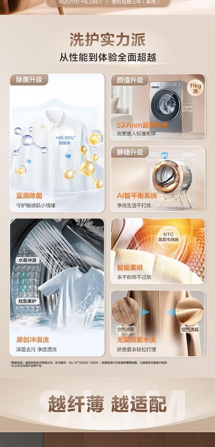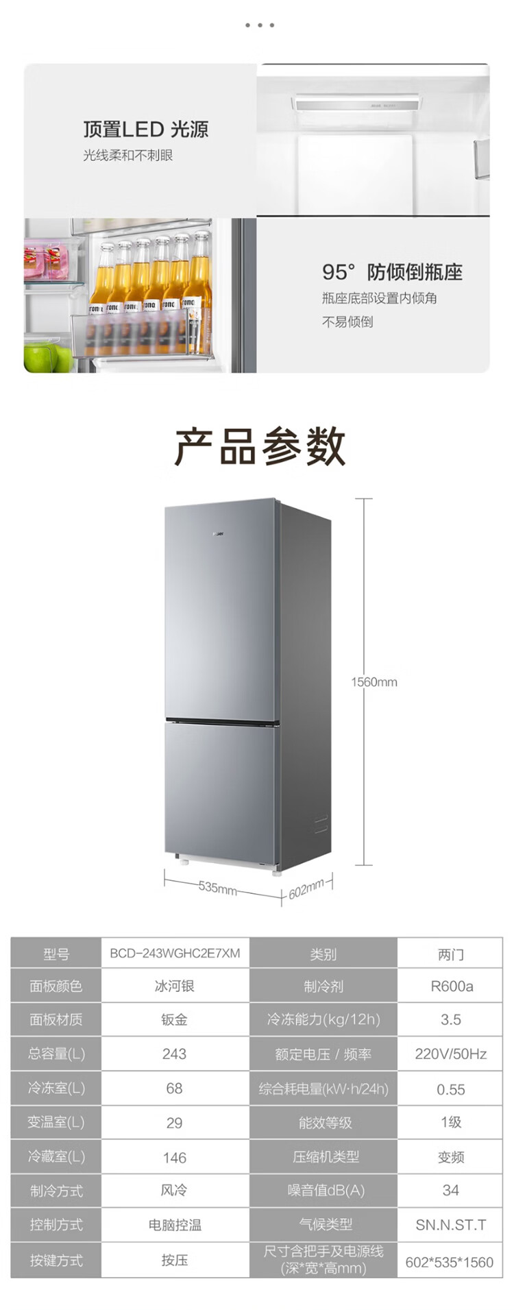 海尔(Haier)冰洗套装超薄243升净味无霜一级双变频两门冰箱+11公斤大容量蓝盾除菌全自动变频滚筒洗衣机带烘干洗烘一体机 243升冰箱净味无霜+11公斤洗烘一体机除菌冲浪洗