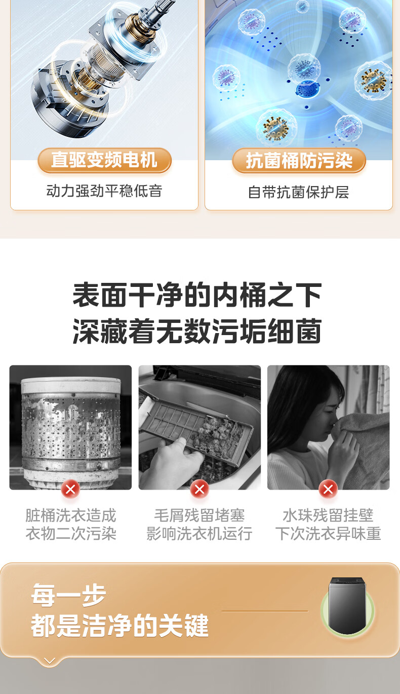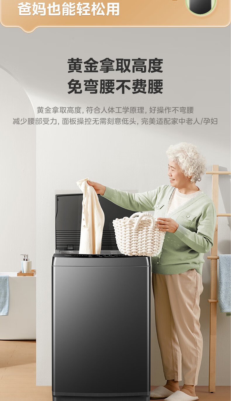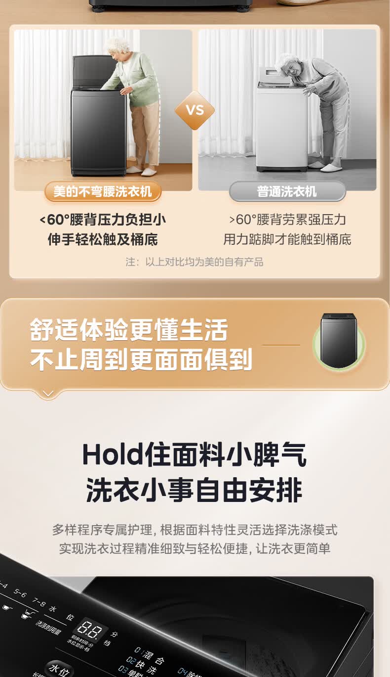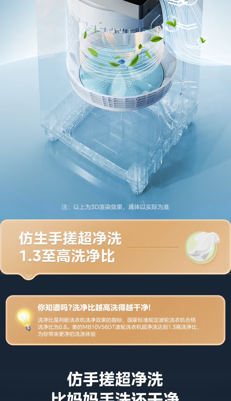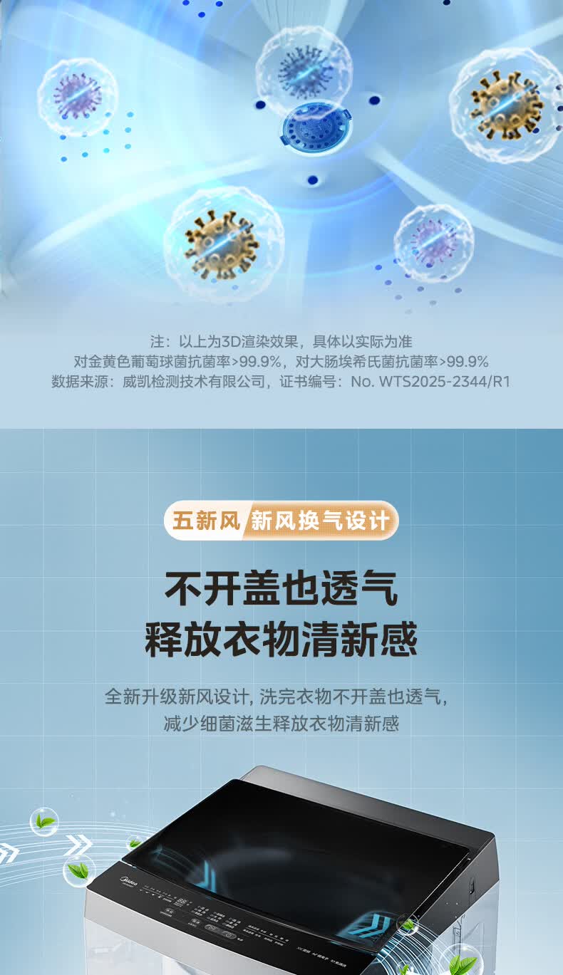 美的(Midea)全自动波轮洗衣机10公斤V36DT直驱变频更节能家用大容量一级能效出租房宿舍必备 除螨家电政府补贴 一级能效 MB100V36DT 波轮 10kg