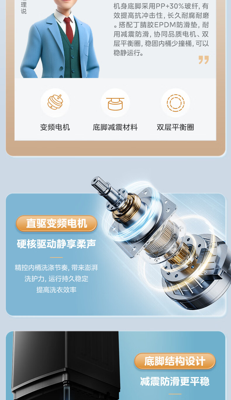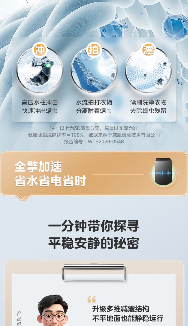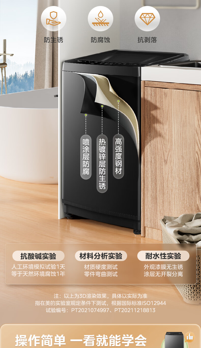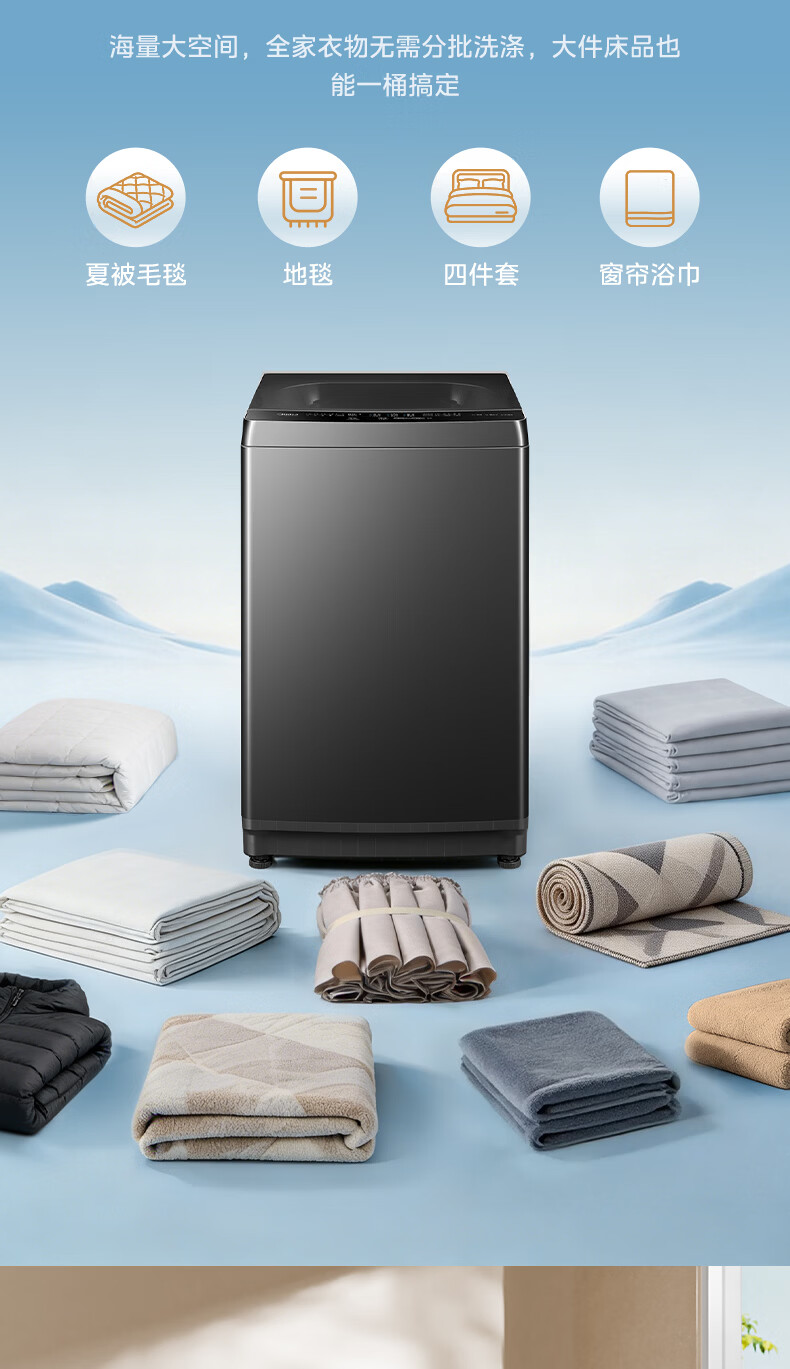 美的(Midea)全自动波轮洗衣机10公斤V36DT直驱变频更节能家用大容量一级能效出租房宿舍必备 除螨家电政府补贴 一级能效 MB100V36DT 波轮 10kg