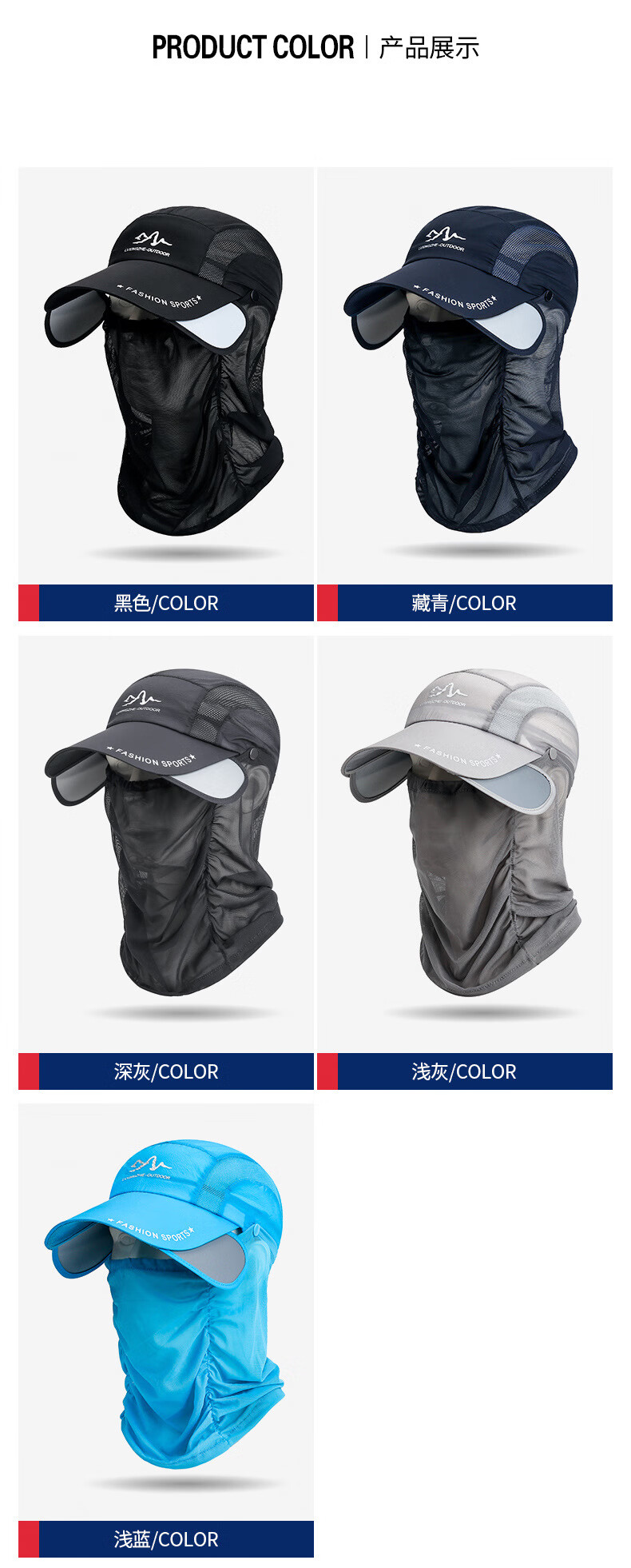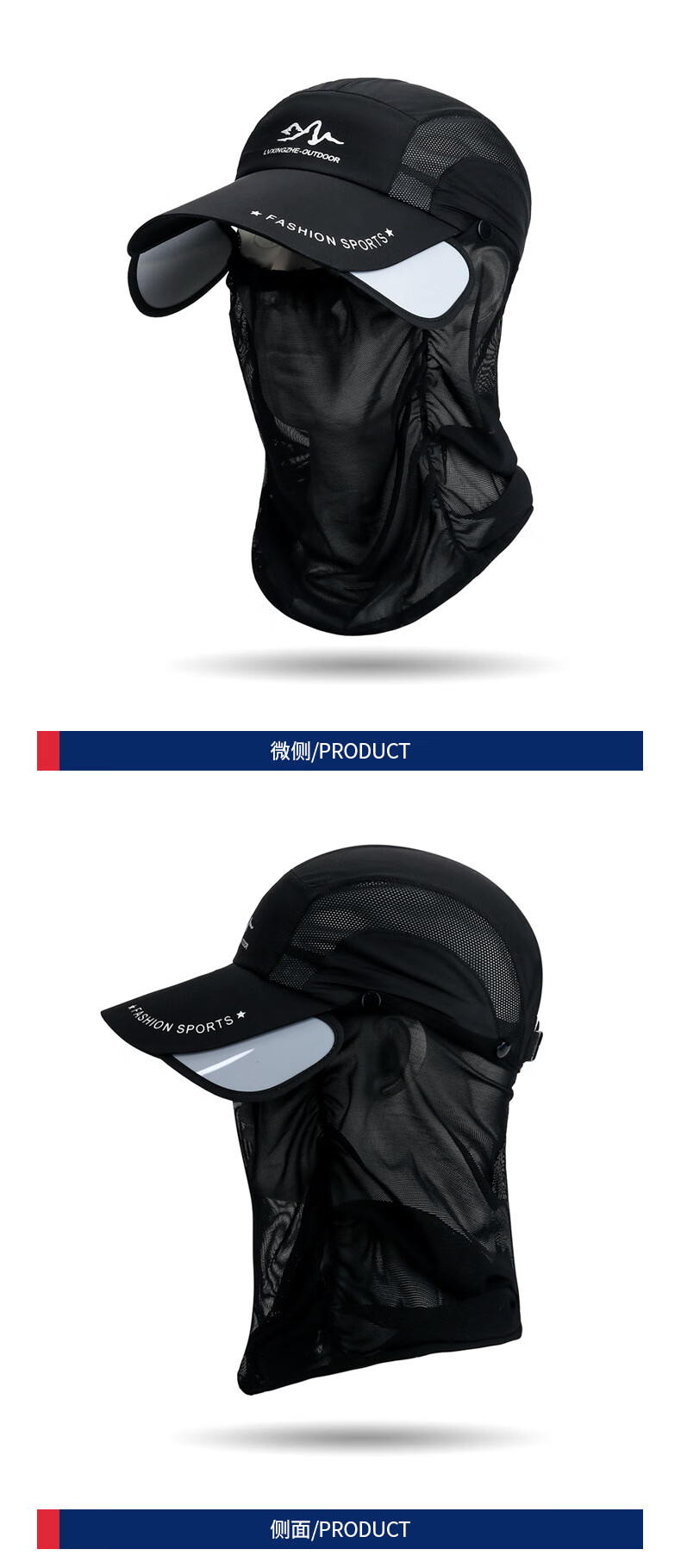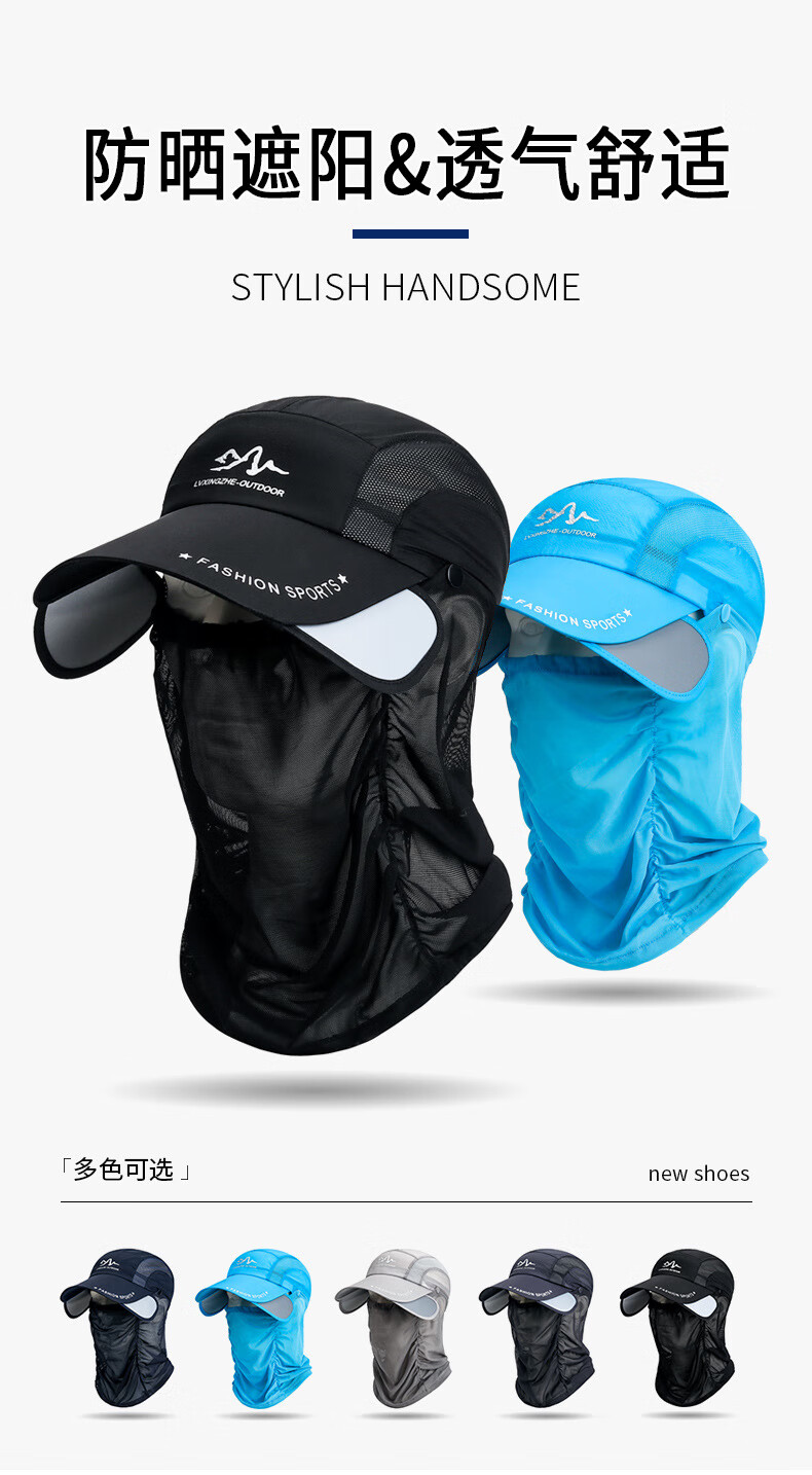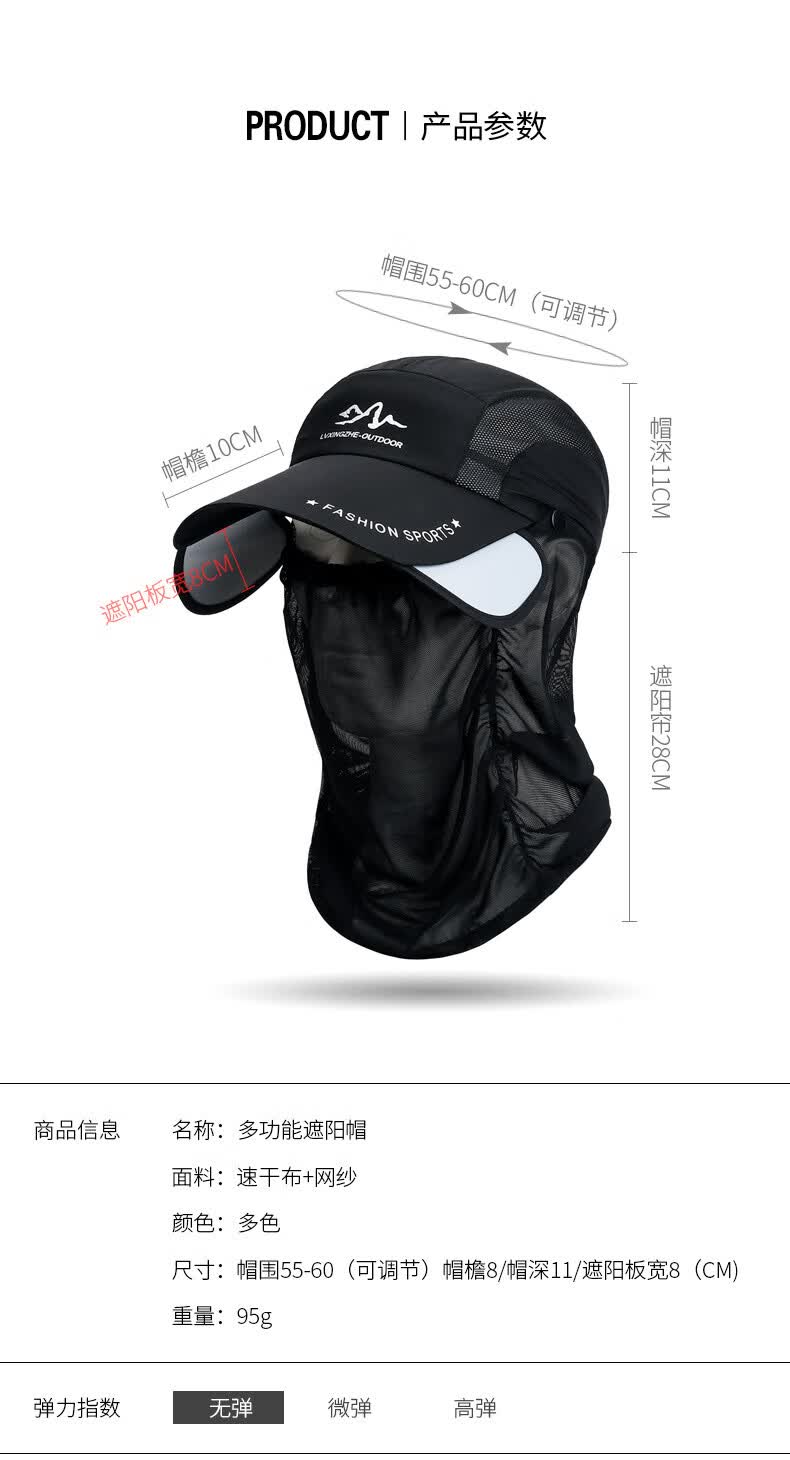 夏季伸缩檐可拆卸护脖面纱遮阳棒球帽男户外防晒遮脸钓鱼速干帽子 玫红色 均码可调节