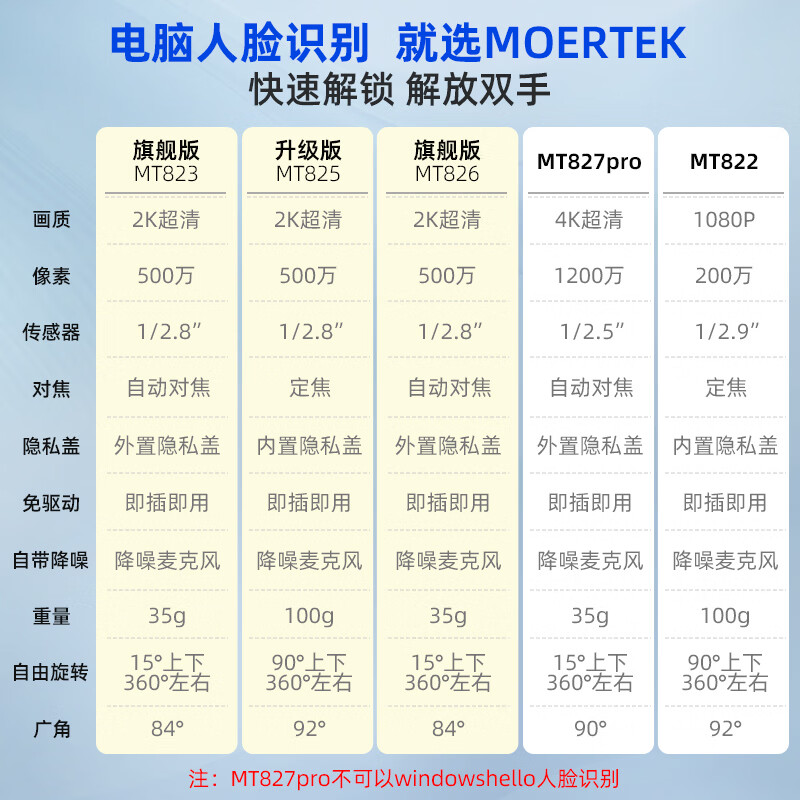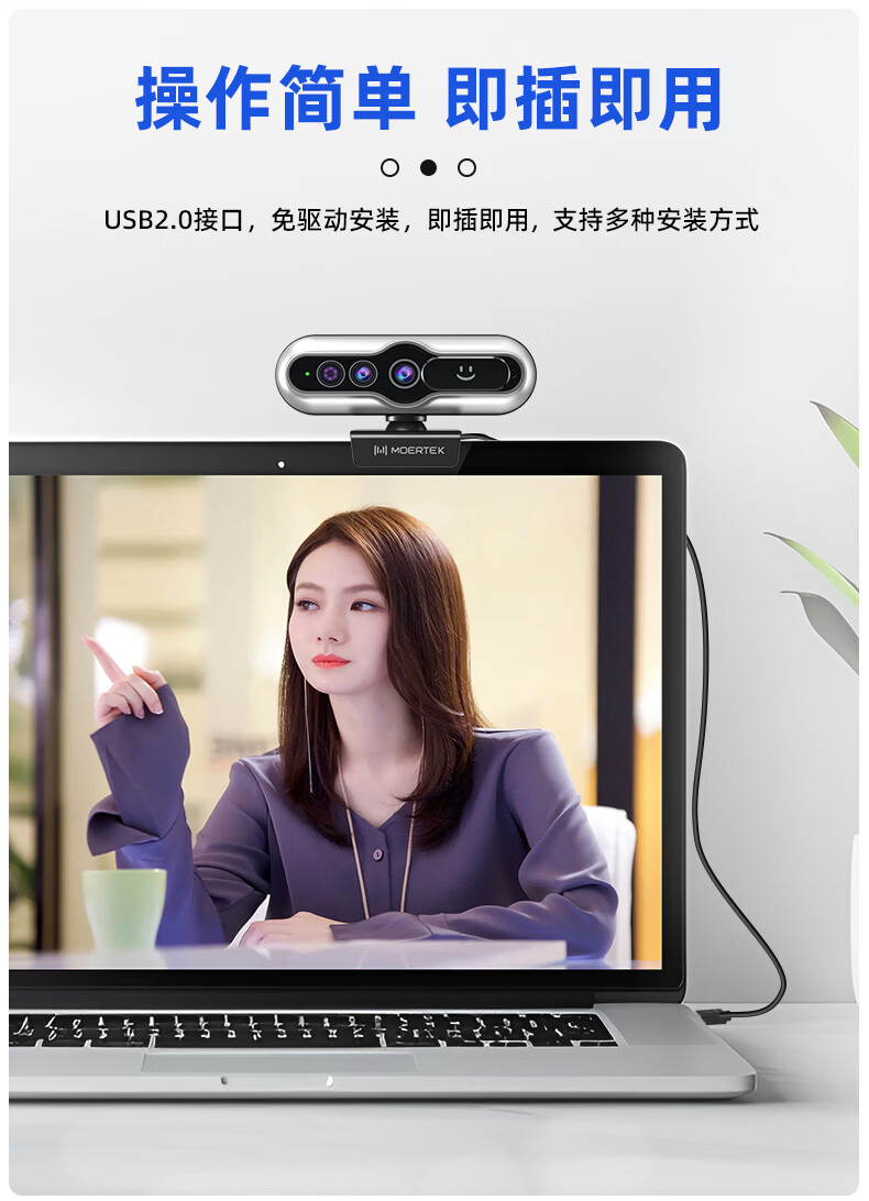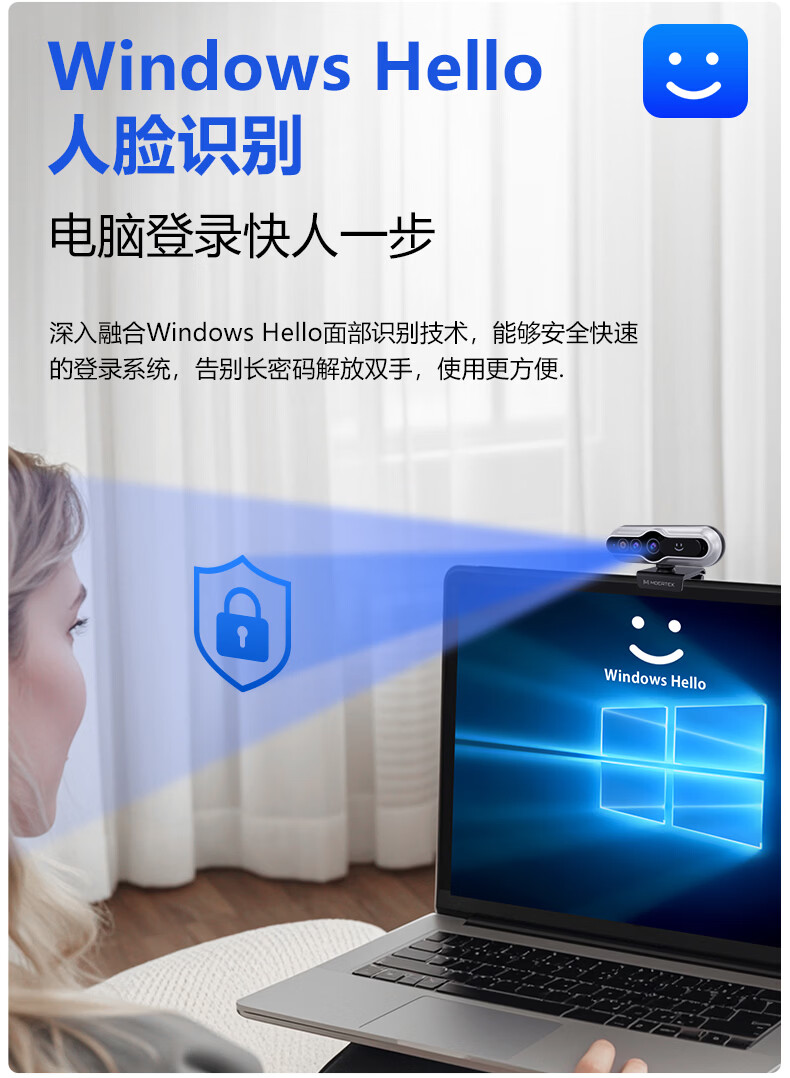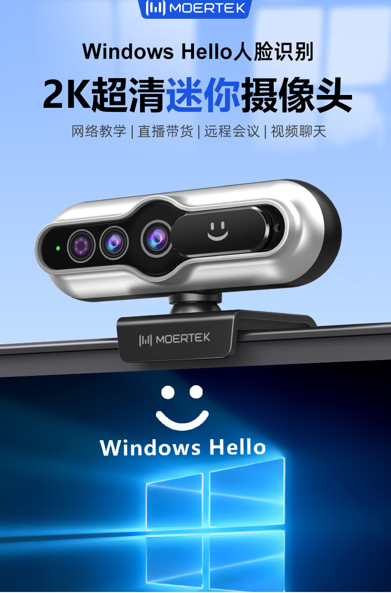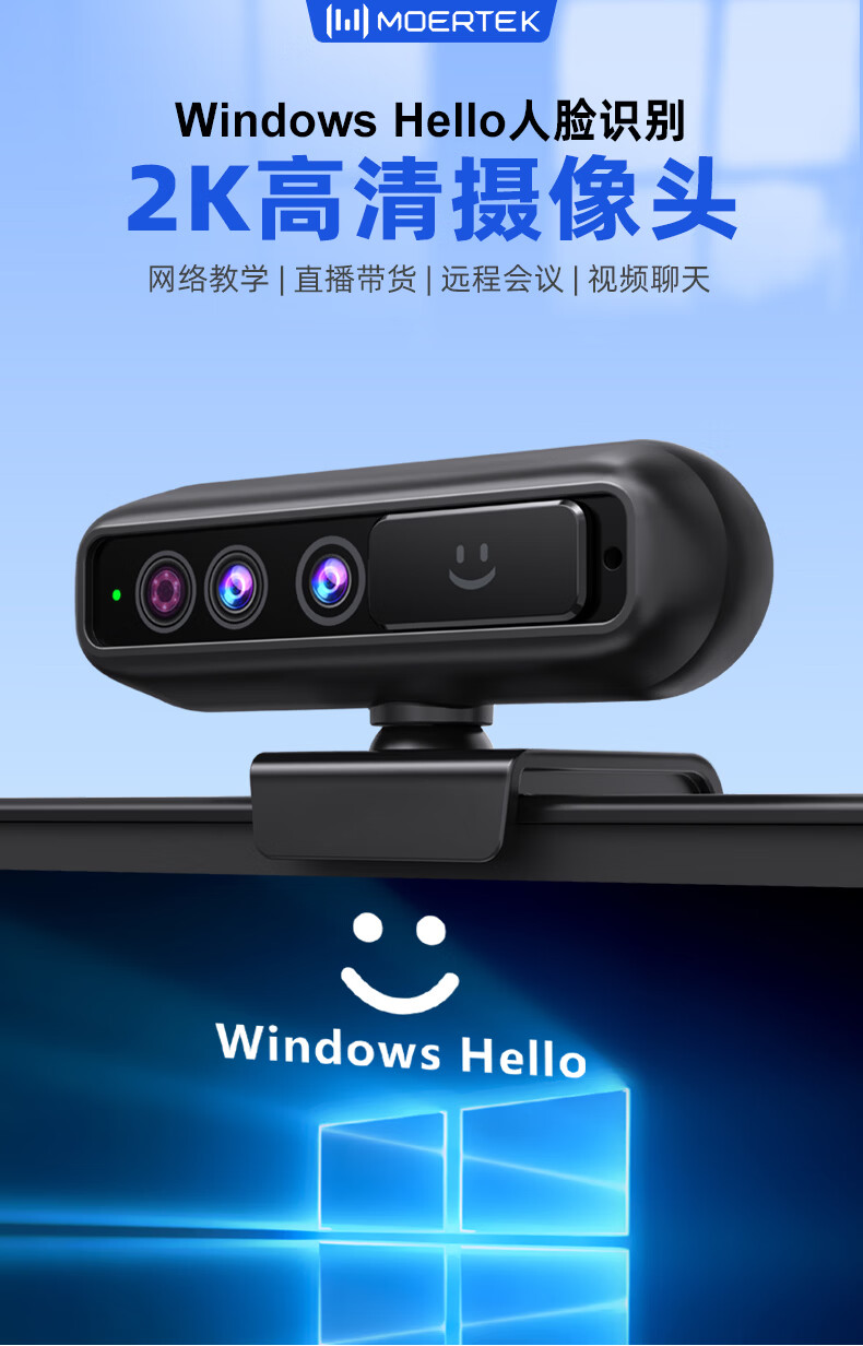 MoertekWindowsHello 2K电脑摄像头人脸解锁免驱动台式笔记本外置摄像头办公会议网课直播视频家用摄像头 2K 升级版WindowsHello人脸识别