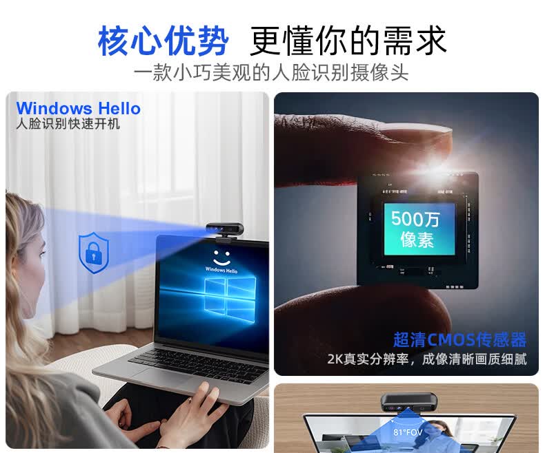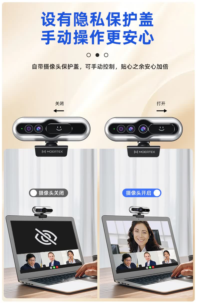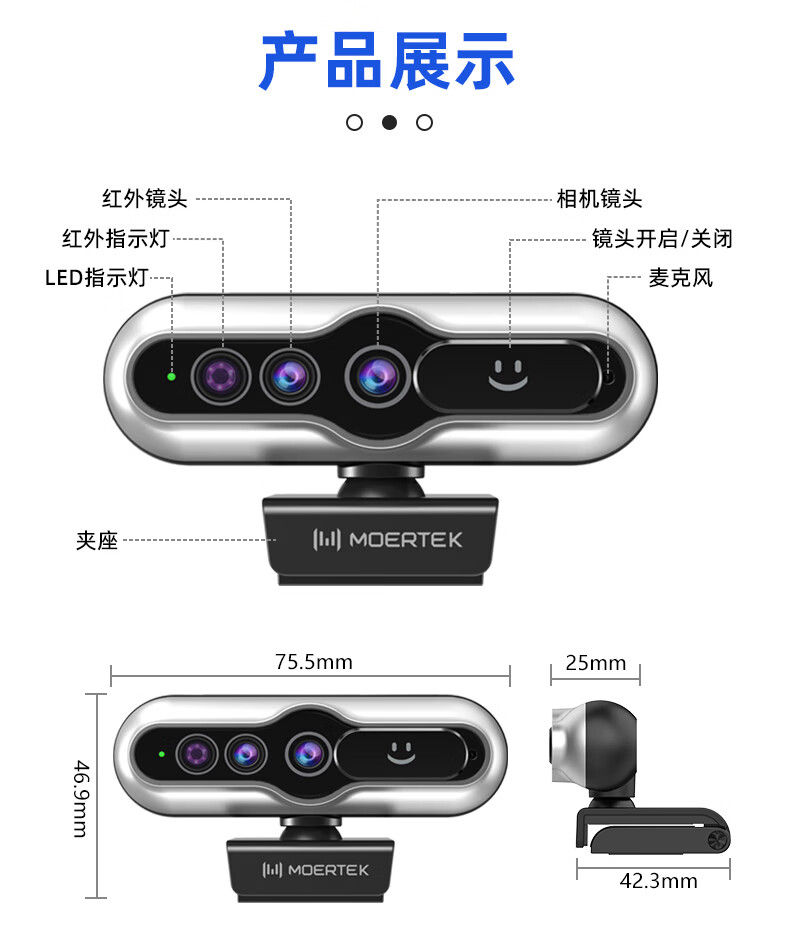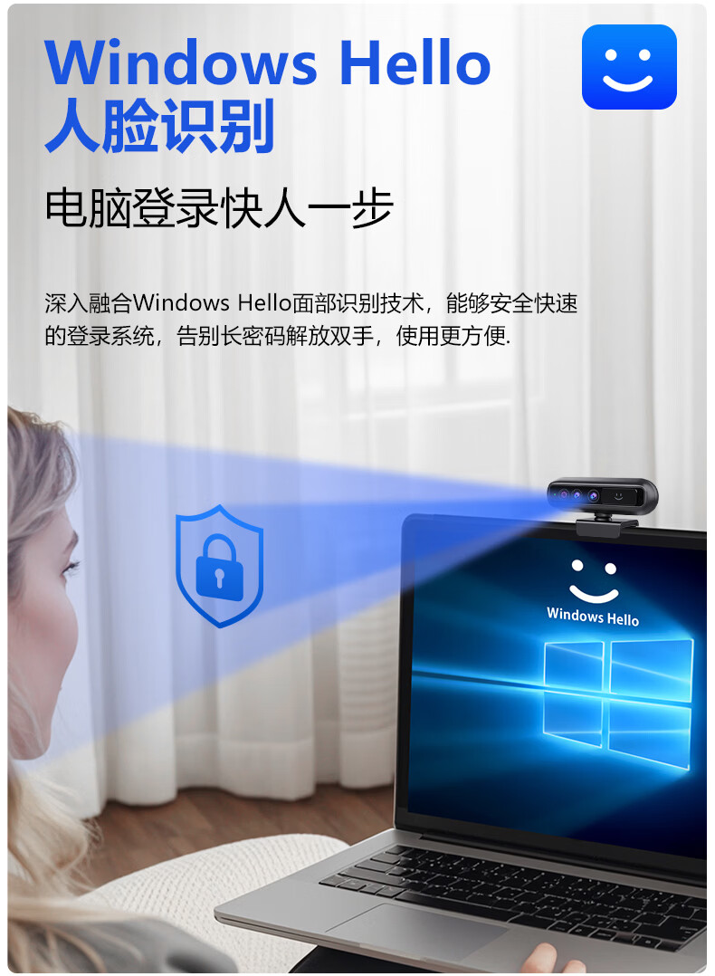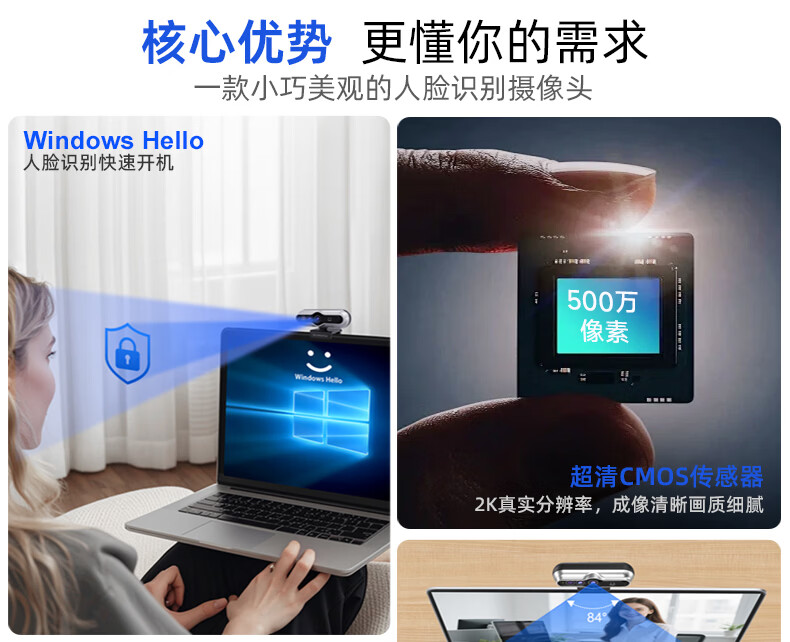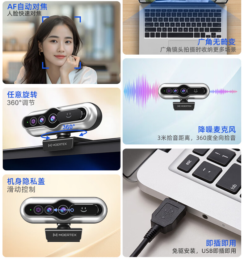 MoertekWindowsHello 2K电脑摄像头人脸解锁免驱动台式笔记本外置摄像头办公会议网课直播视频家用摄像头 2K 升级版WindowsHello人脸识别