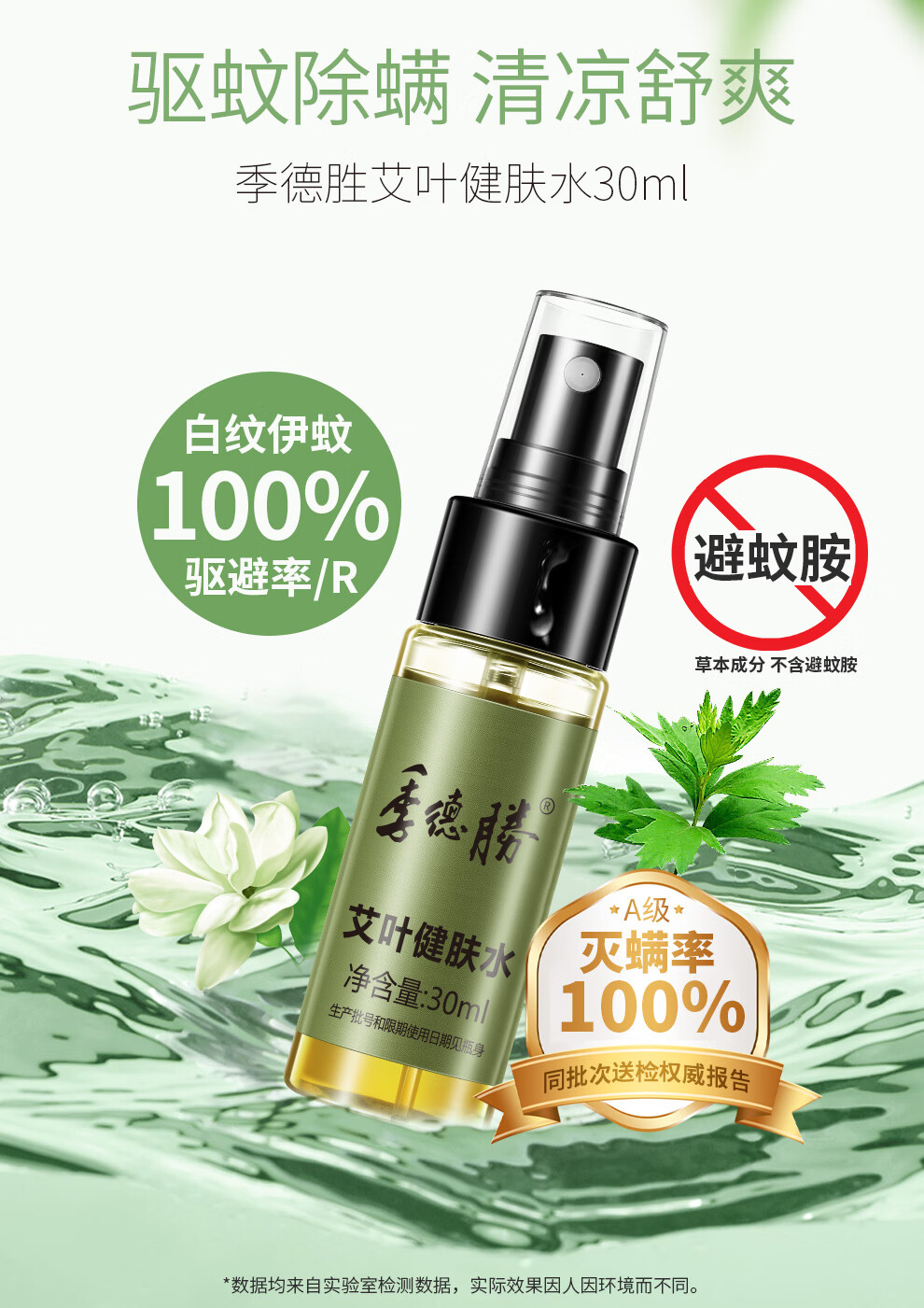 季德胜艾叶健肤水蚊虫叮咬爽身健肤水植物本草不含避蚊胺30ml 艾叶健肤水+431抑菌液