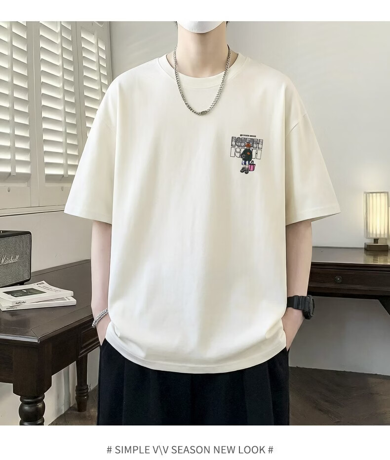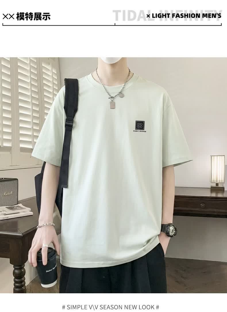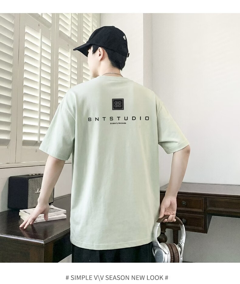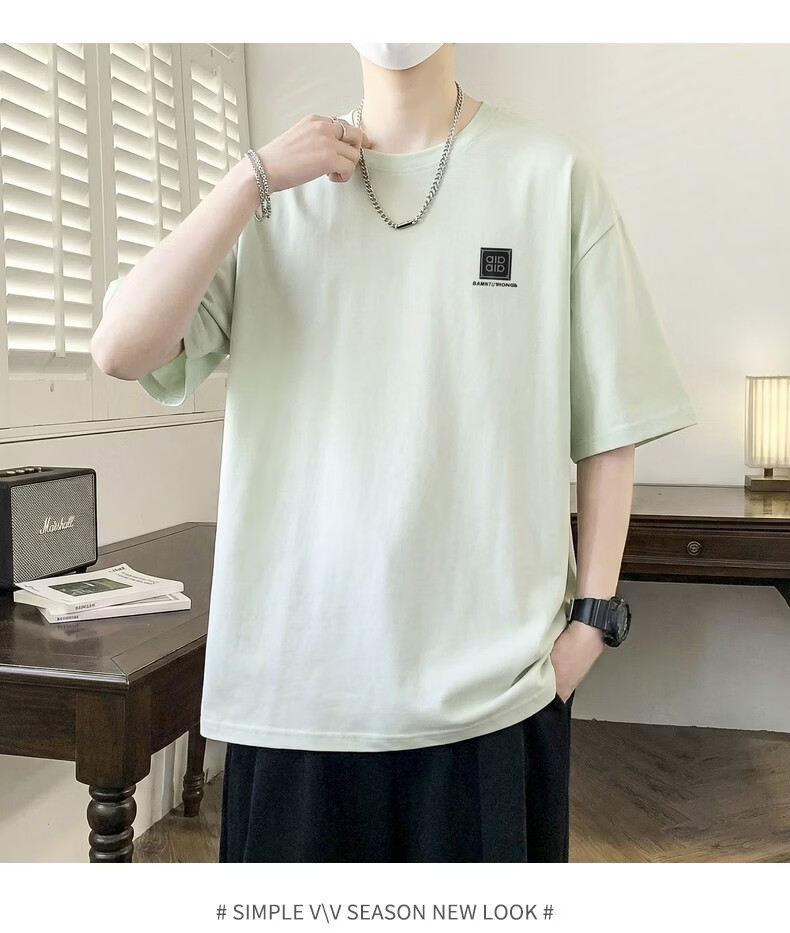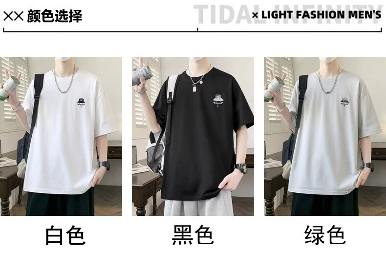 轩程短袖t恤男2026夏季宽松大码潮流港风男装半袖打底衫男 T8510绿色 2XL (185)