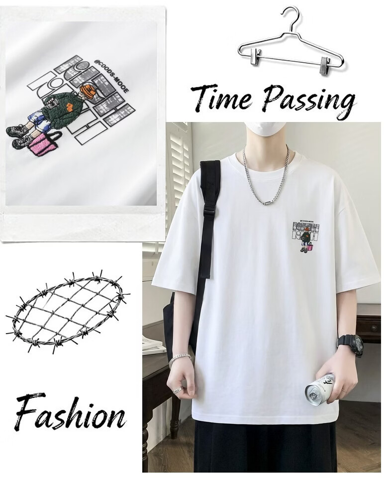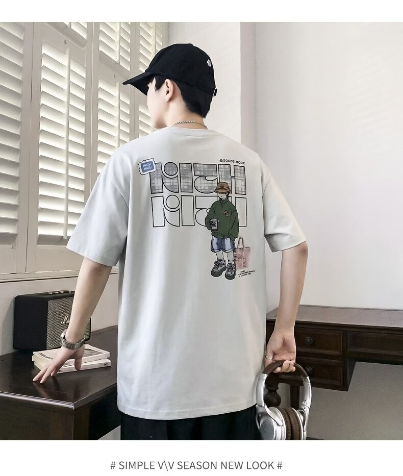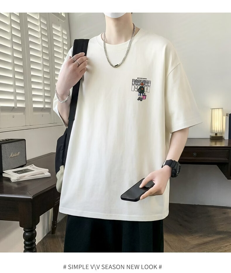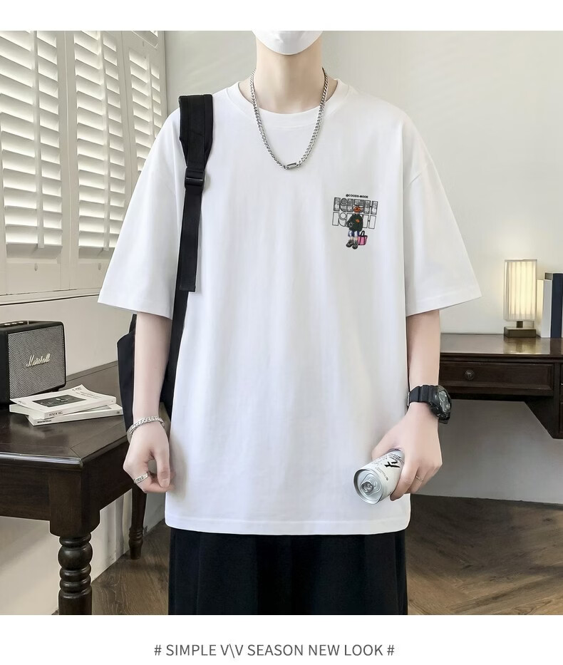 轩程短袖t恤男2026夏季宽松大码潮流港风男装半袖打底衫男 T8510绿色 2XL (185)