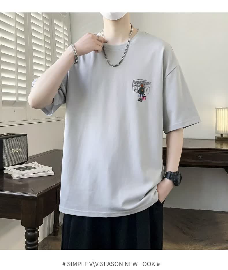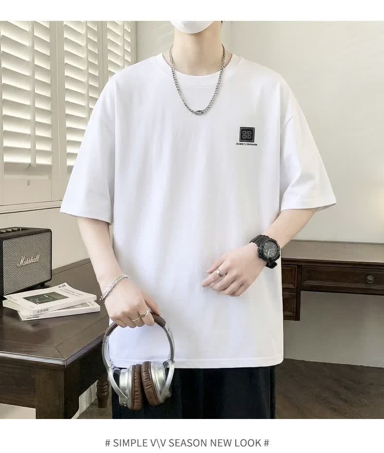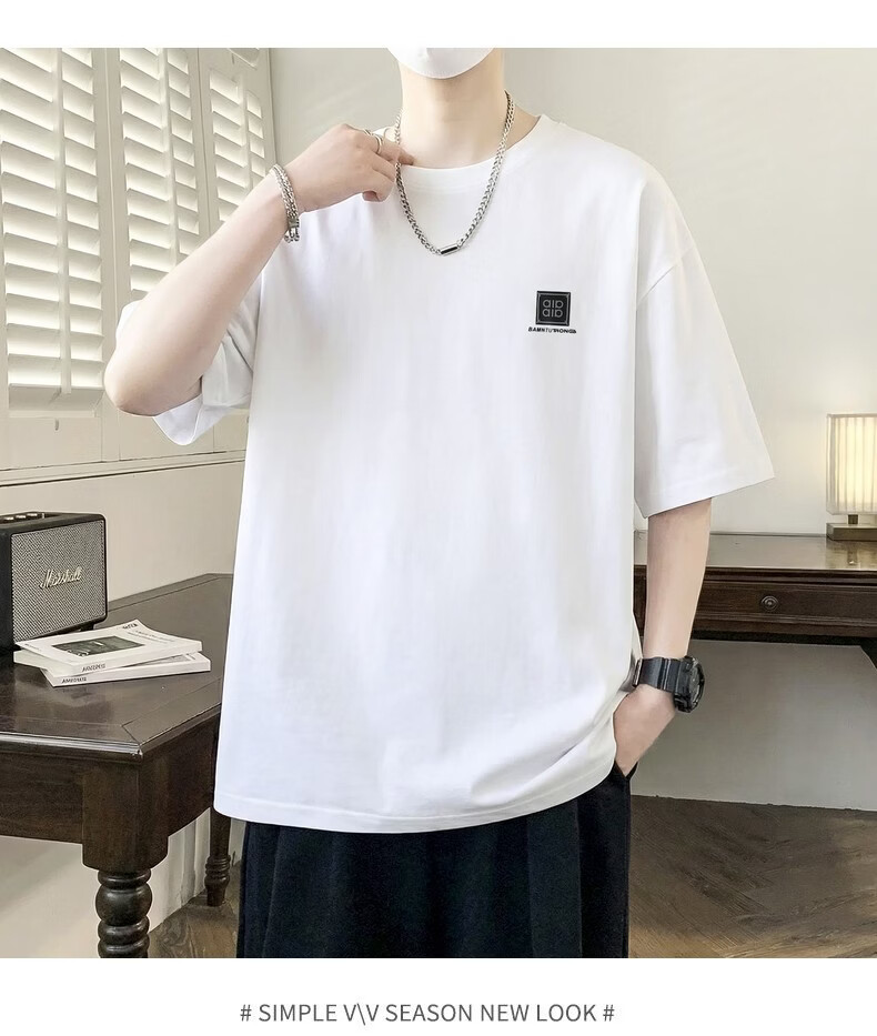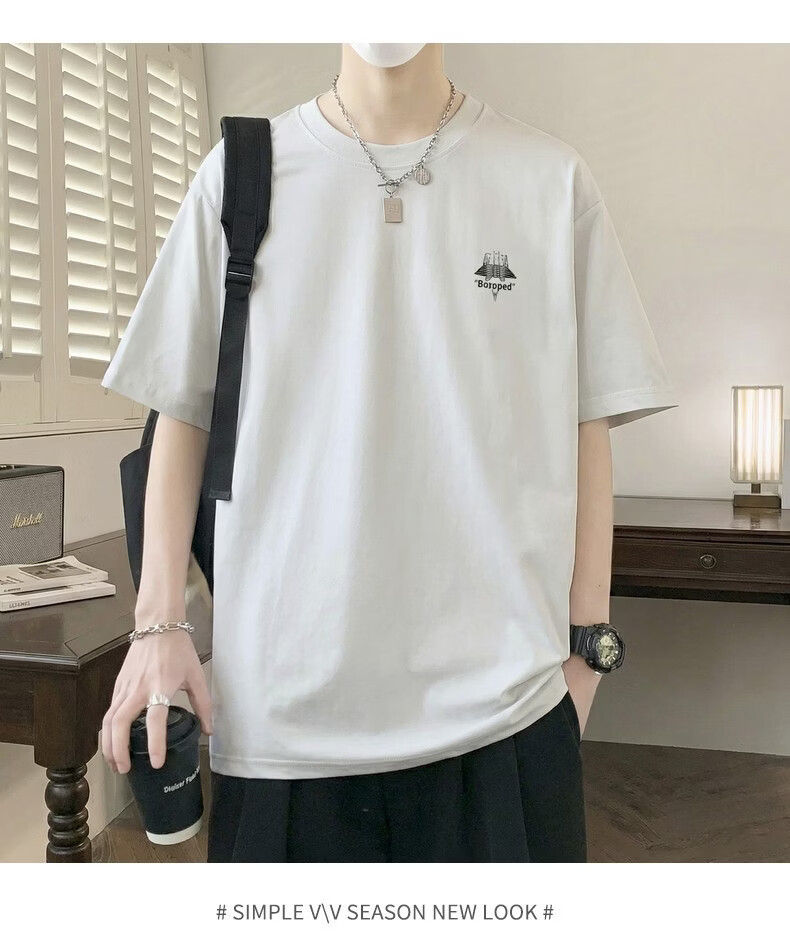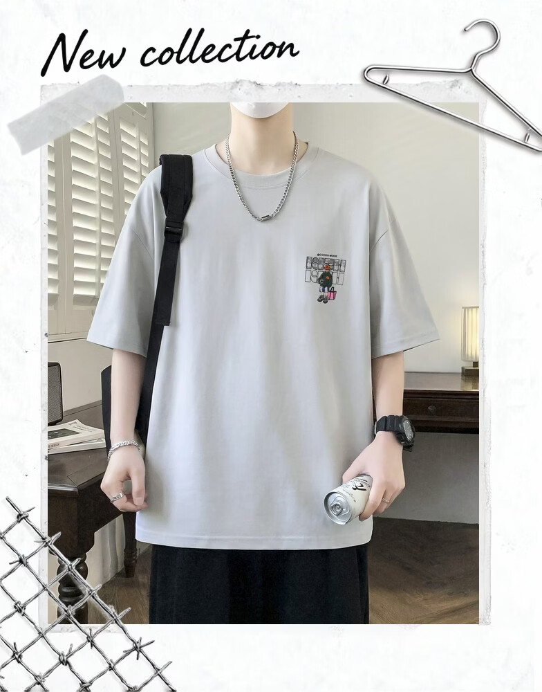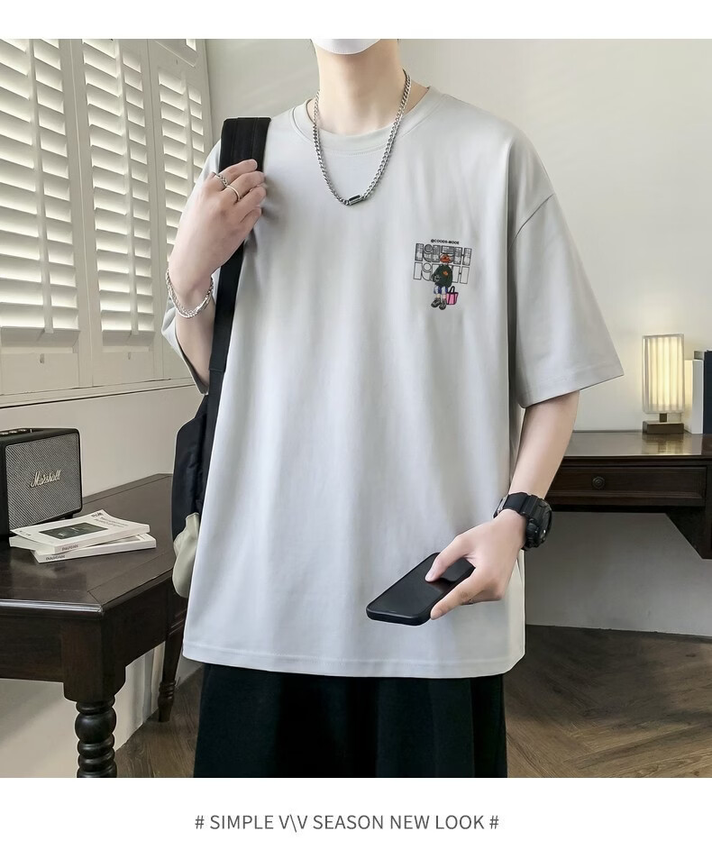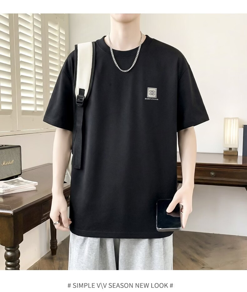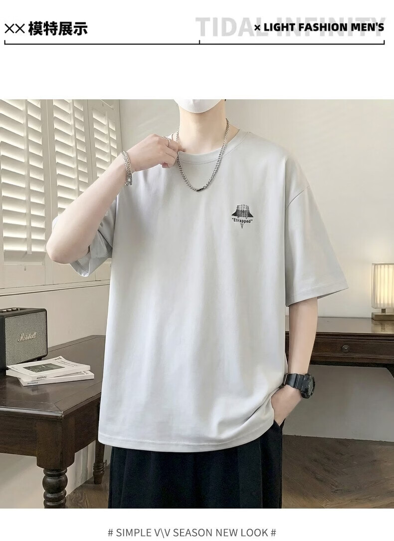 燠阳夏季新款短袖t恤男装休闲简约潮流百搭polo衫纯色刺绣打底衫T恤 灰色-战马标 2XL 【130-145斤】