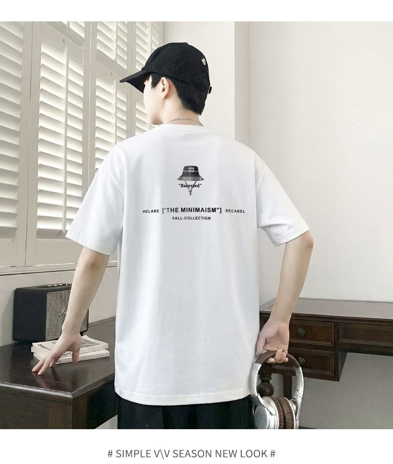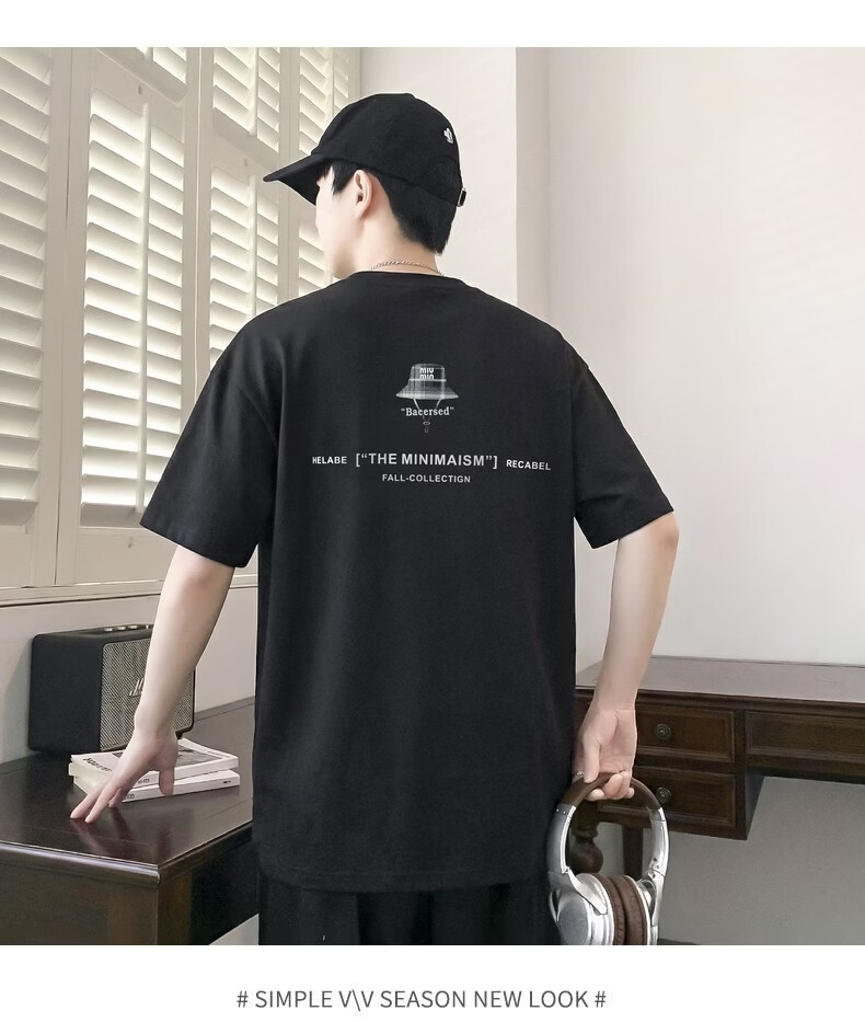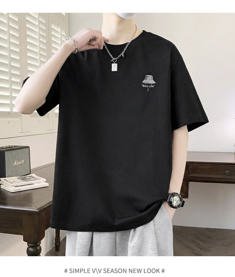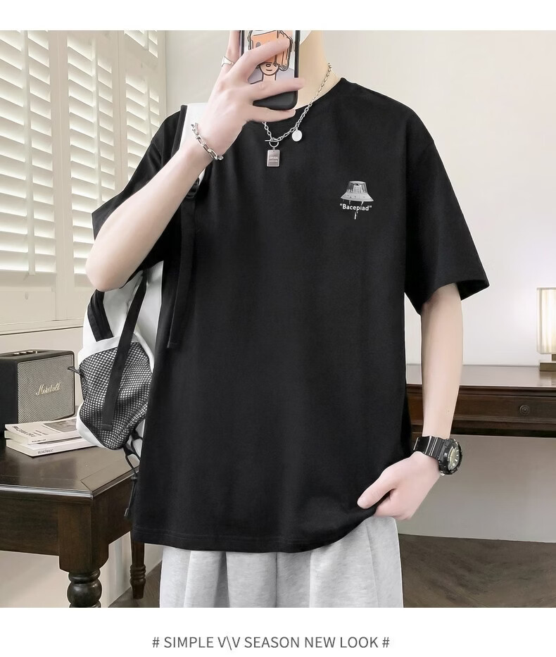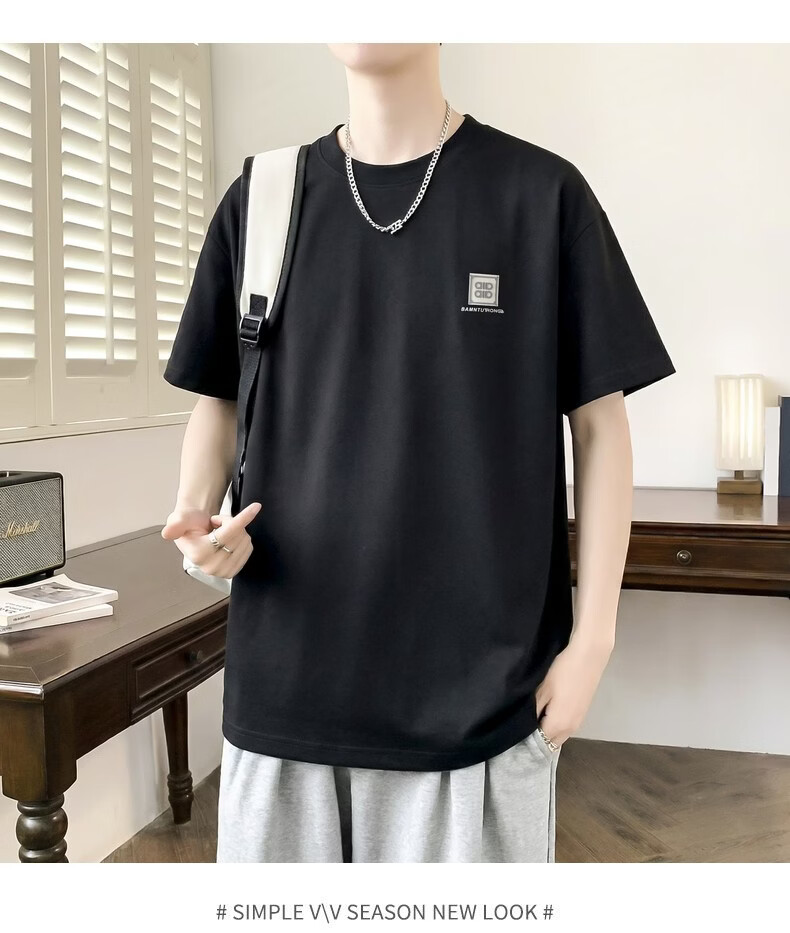 罗蒙(ROMON)纯棉短袖t恤男新款潮流时尚圆领印花上衣夏季休闲凉感半袖体恤T 黑色8873 2XL 180