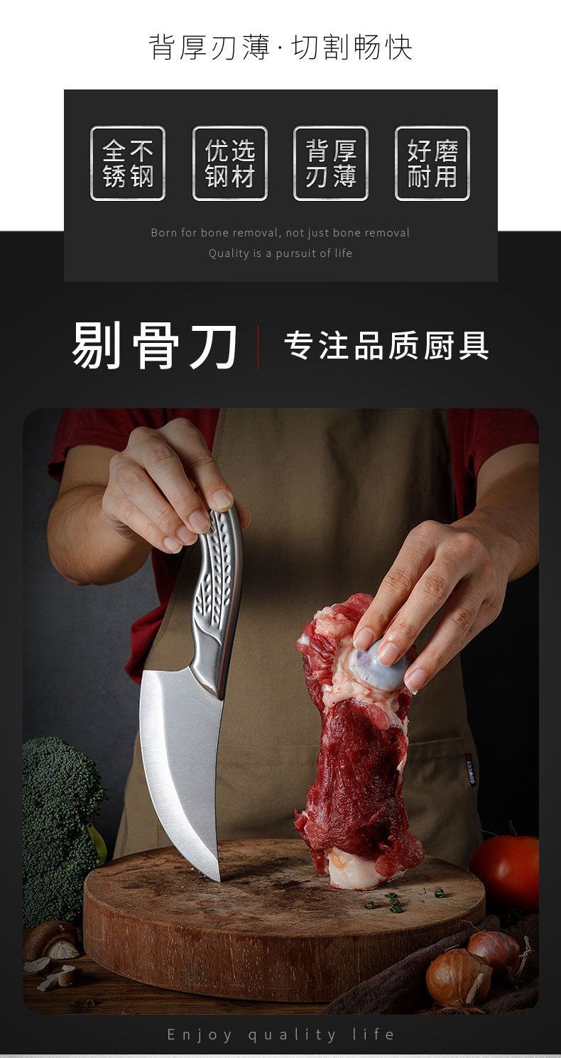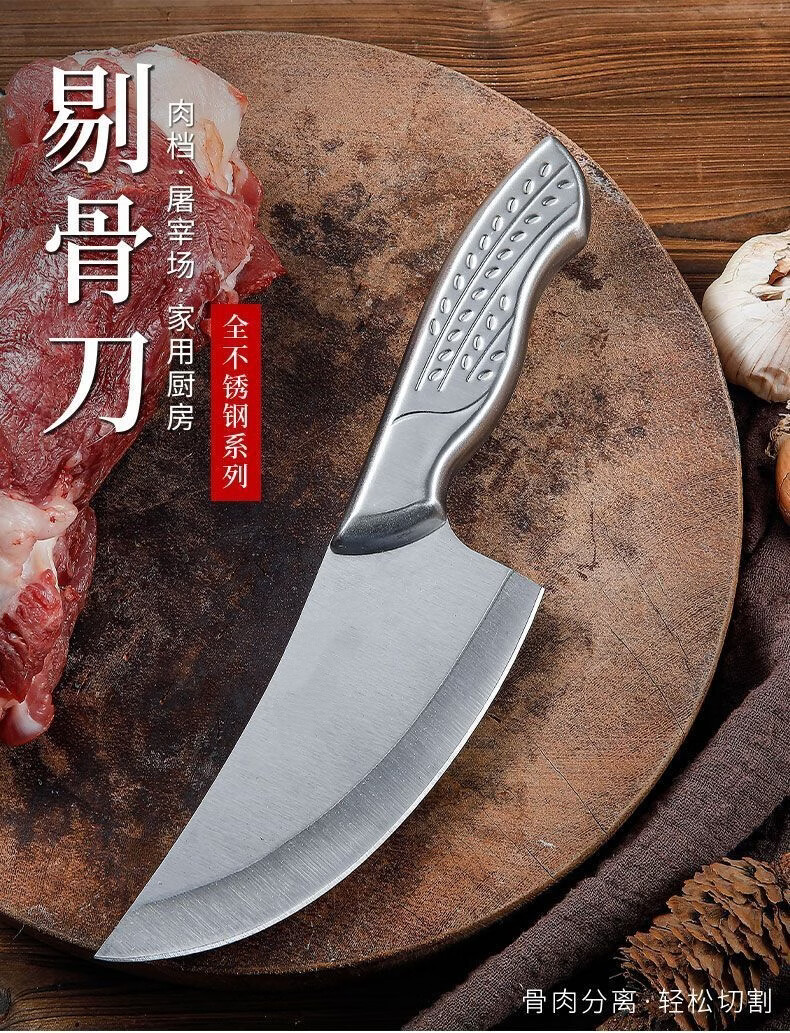 优赏全钢厨师屠宰刀斩骨小弯刀家用不锈钢剔猪骨刀砍骨刀厨房阳江菜刀 全钢剔猪骨刀