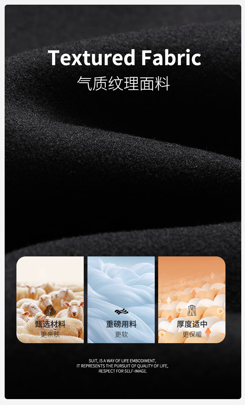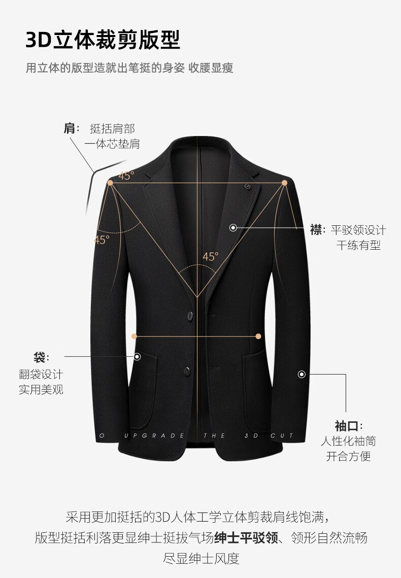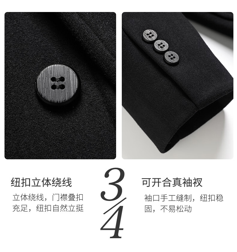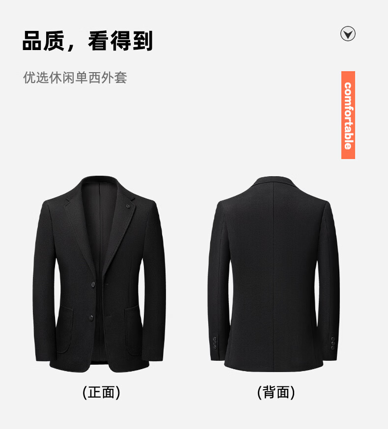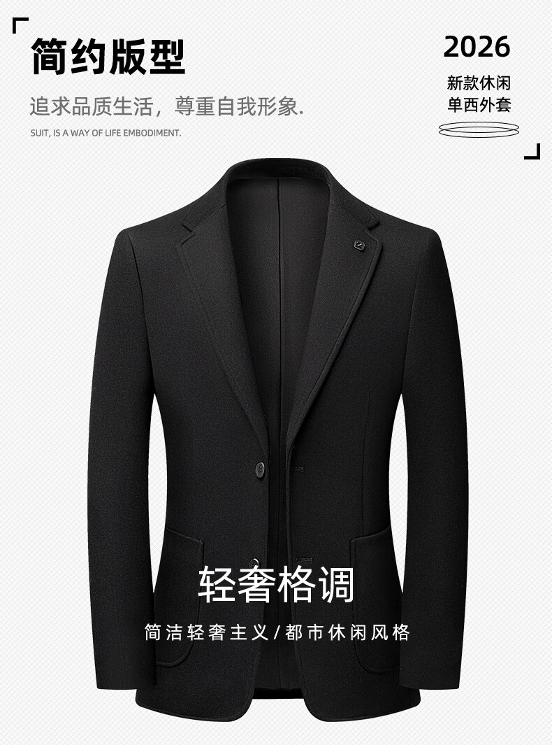 SHANSHAN杉杉含羊毛西装外套男商务休闲百搭西服外套加厚保暖男士毛呢正装 黑色 46 /170