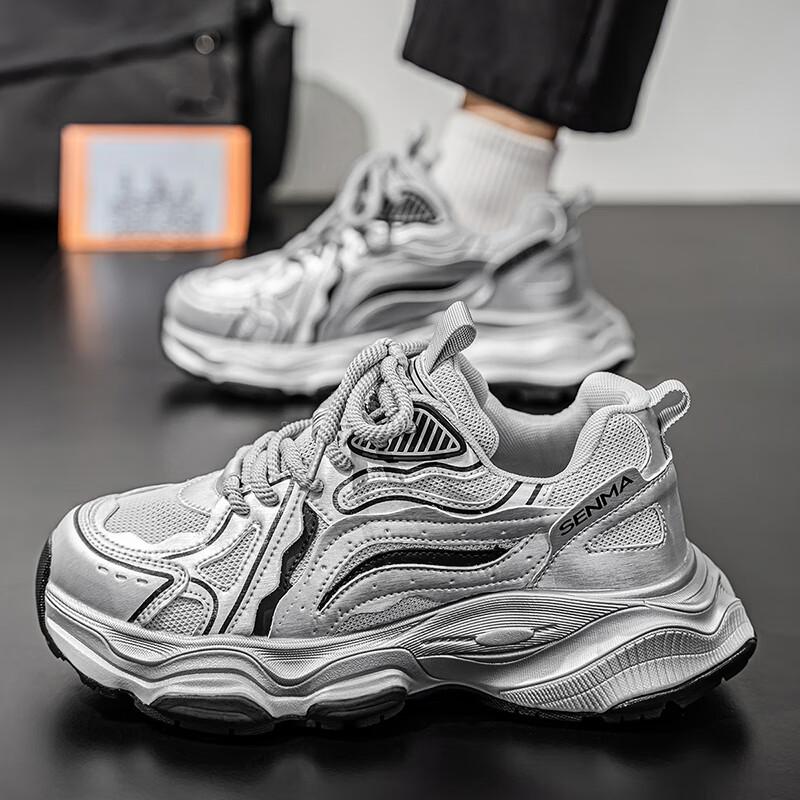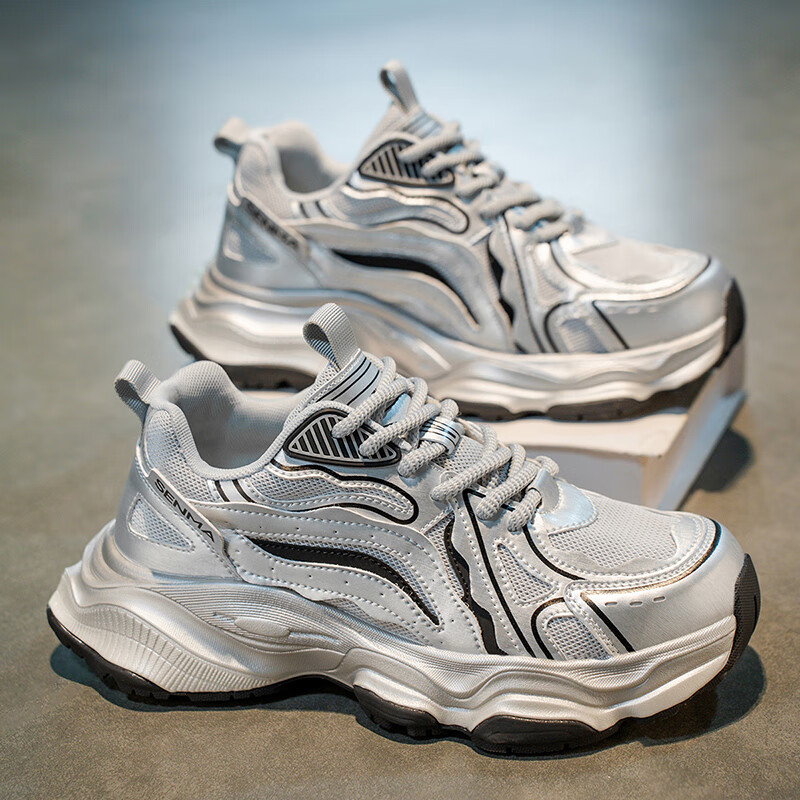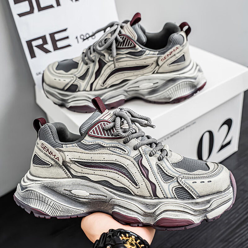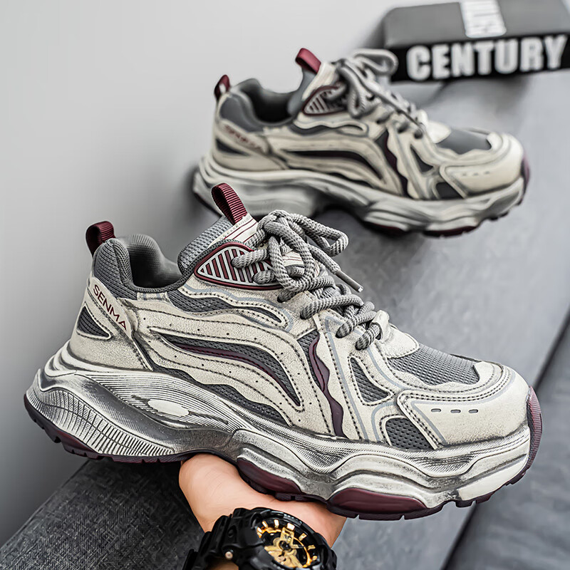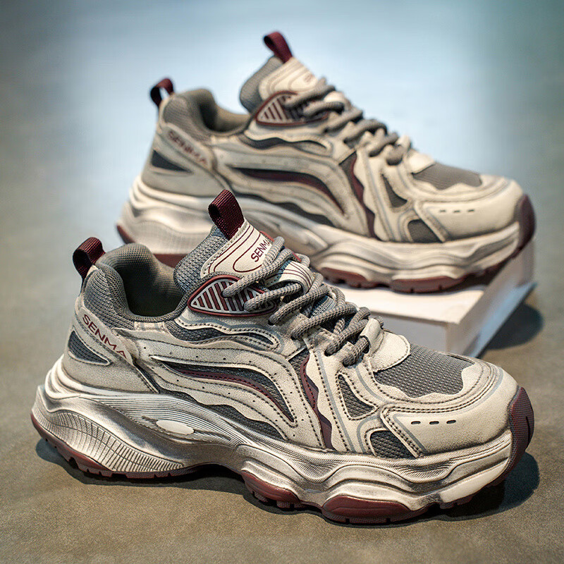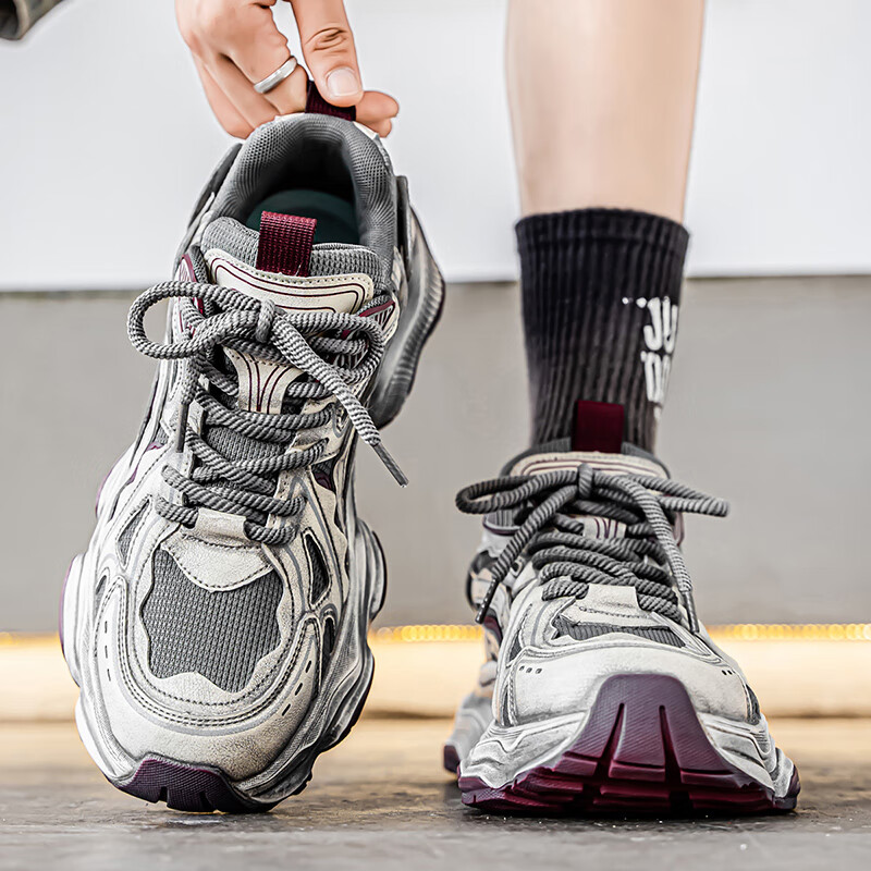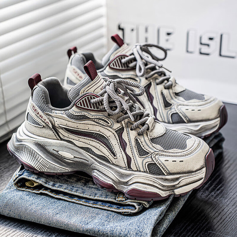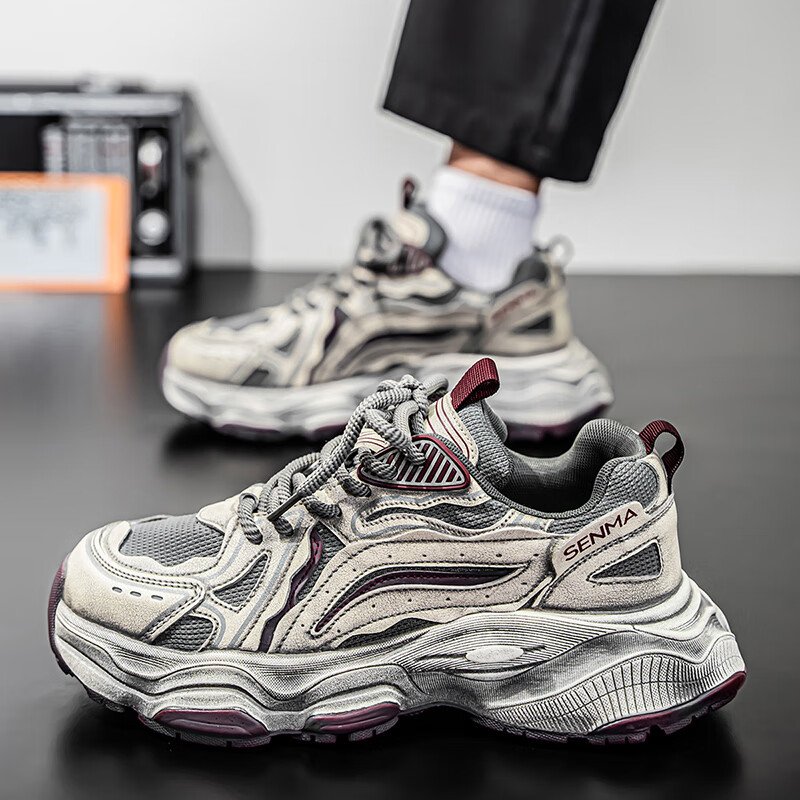 森馬男鞋2026新款夏季网面透气休闲运动跑步鞋男士复古厚底增高老爹鞋 灰绿【升级款】 41 标准码数/现货秒发