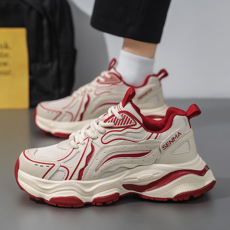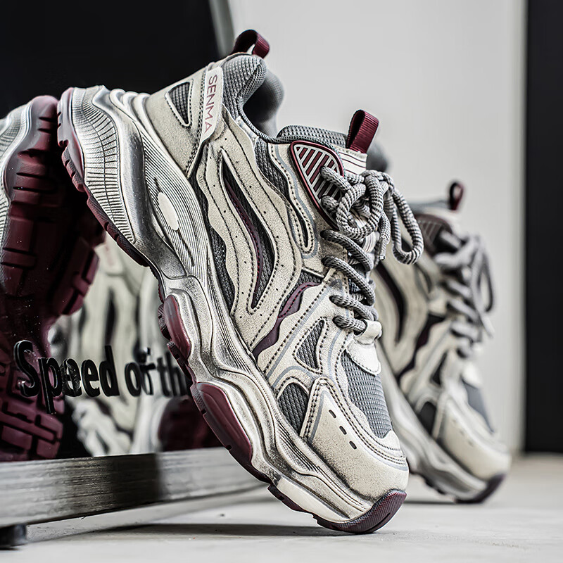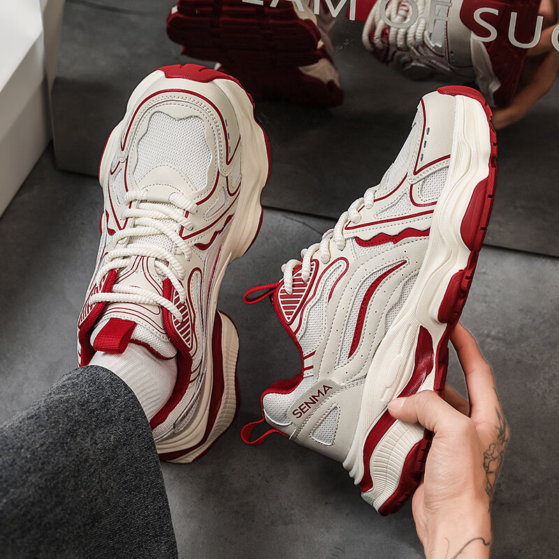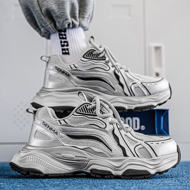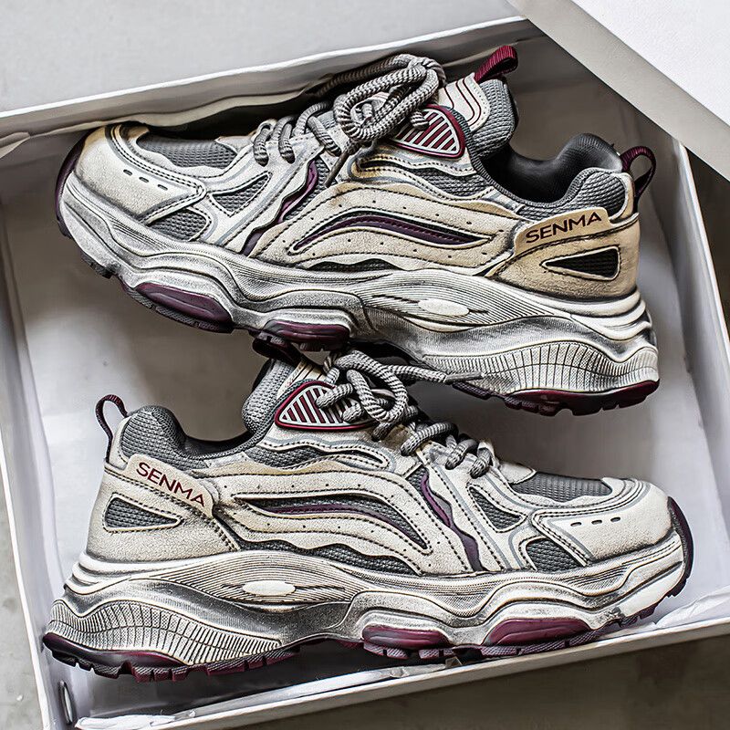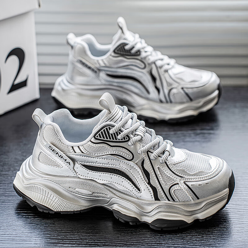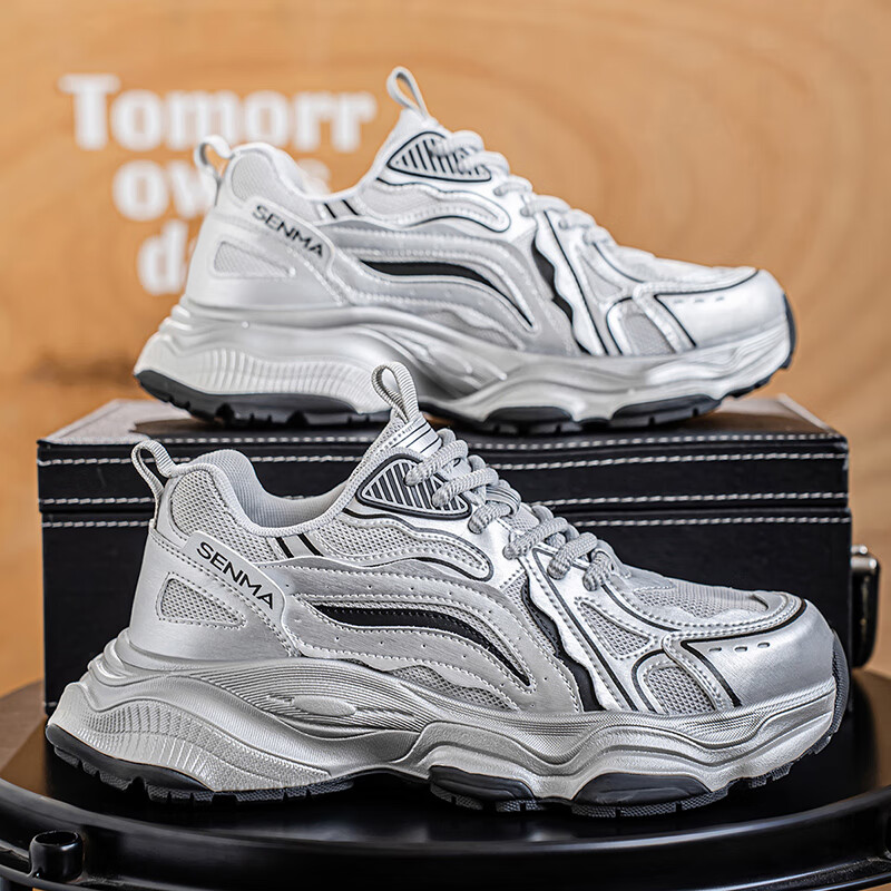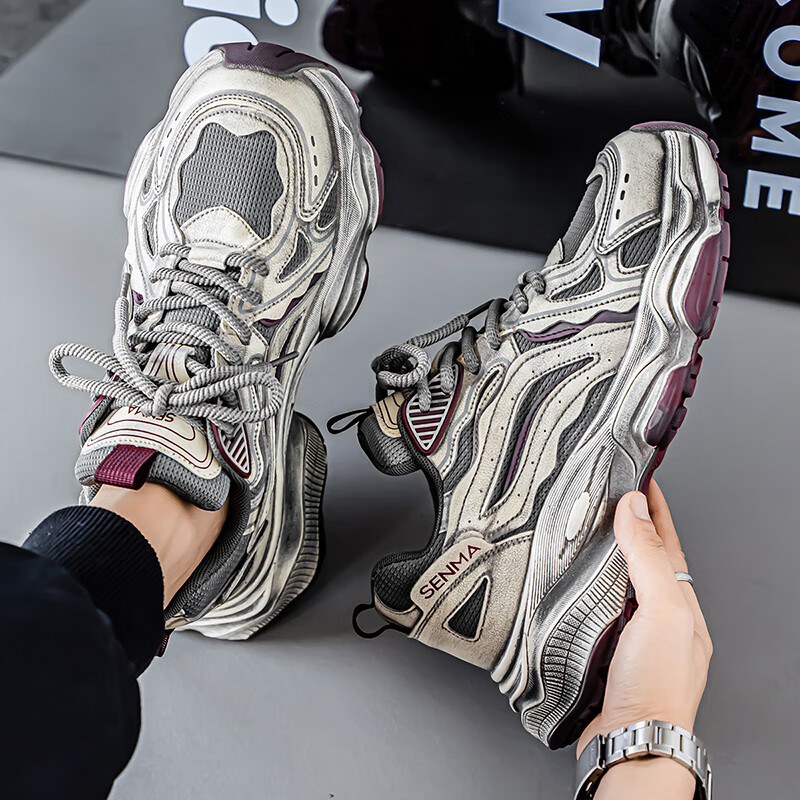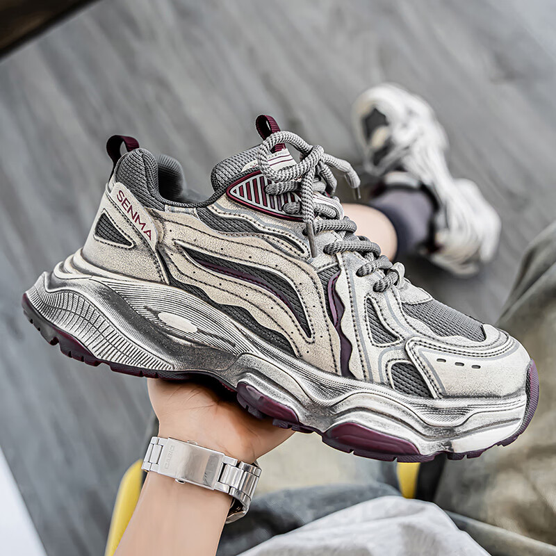 森馬男鞋2026新款夏季网面透气休闲运动跑步鞋男士复古厚底增高老爹鞋 灰绿【升级款】 41 标准码数/现货秒发