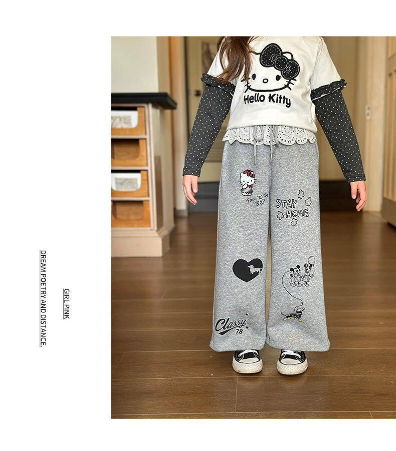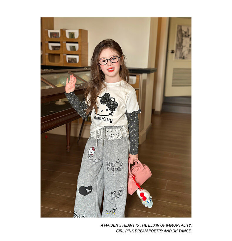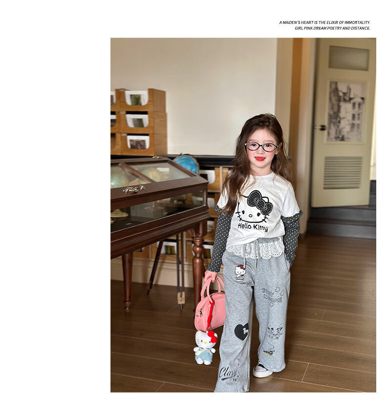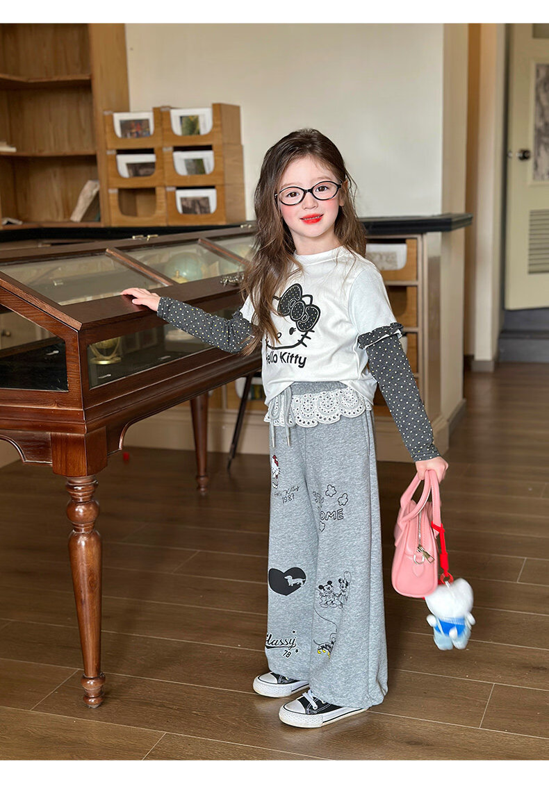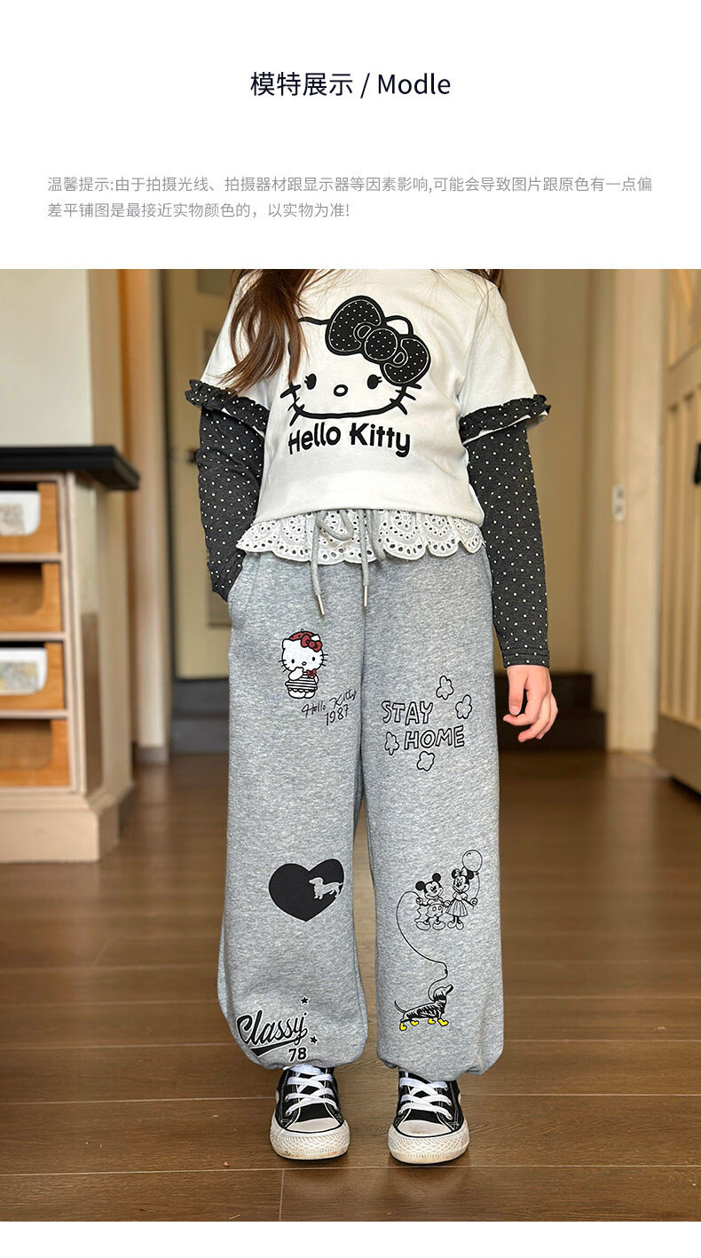 栀了成长记童装女童韩版休闲束脚裤2026春季儿童可爱百搭宽松裤子 灰色 裤子 150 cm