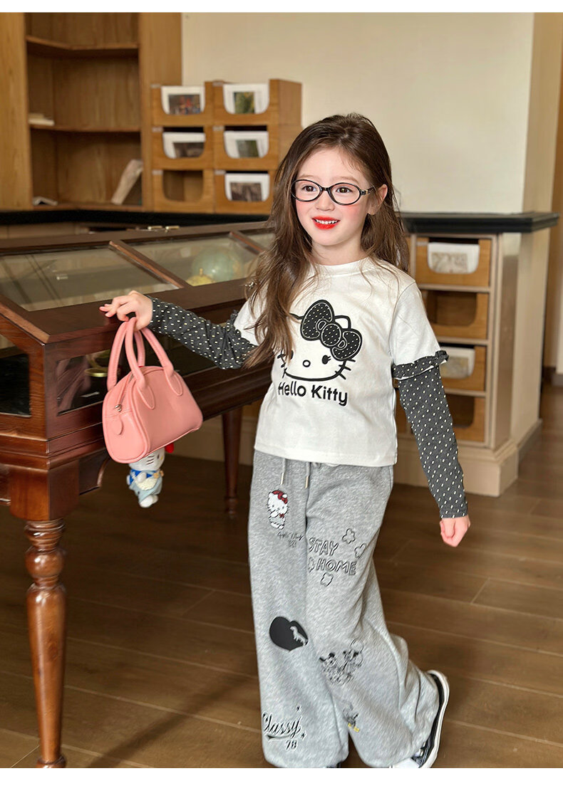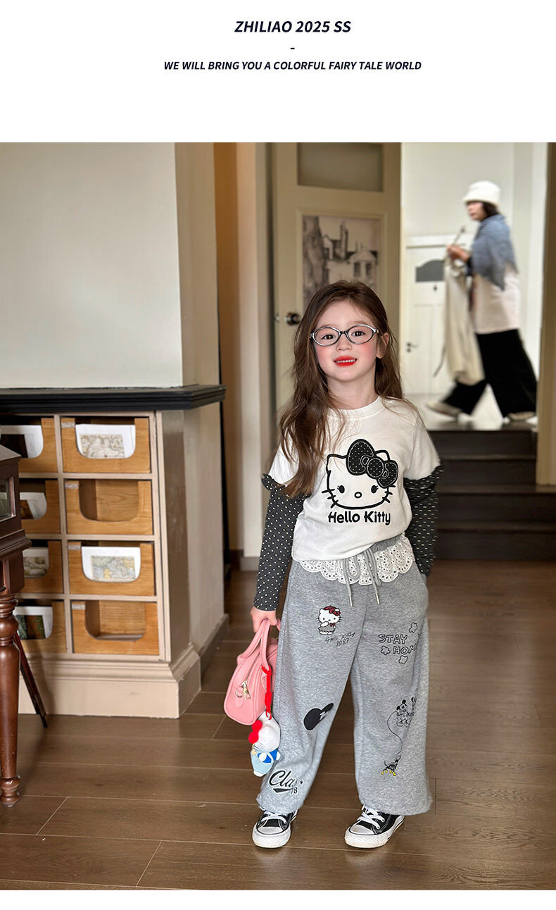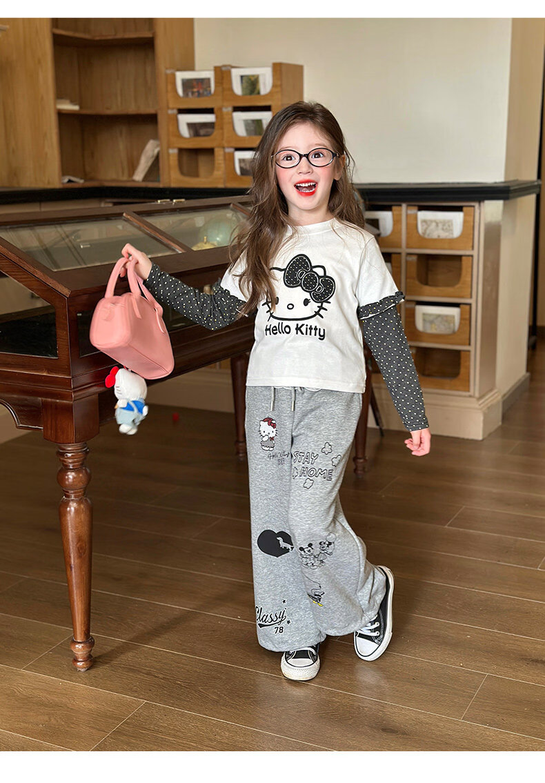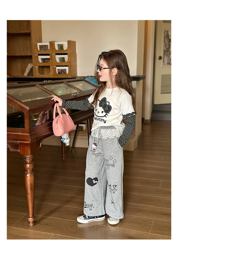 栀了成长记童装女童韩版休闲束脚裤2026春季儿童可爱百搭宽松裤子 灰色 裤子 150 cm