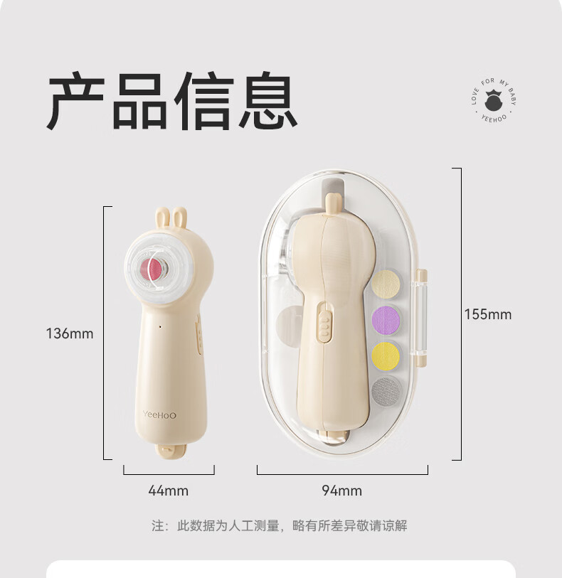 英氏(YEEHOO)婴儿指甲剪新生儿专用电动磨甲器幼儿童指甲刀宝宝指甲钳打磨 电动磨甲器套装+备用指甲剪