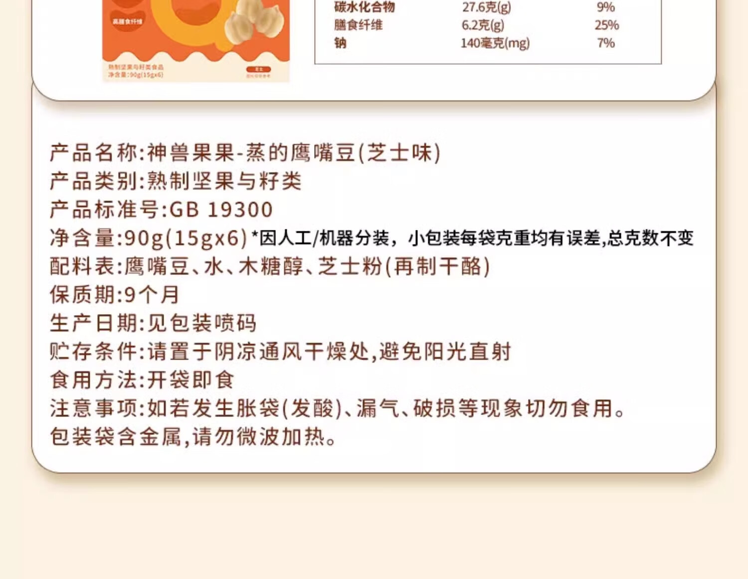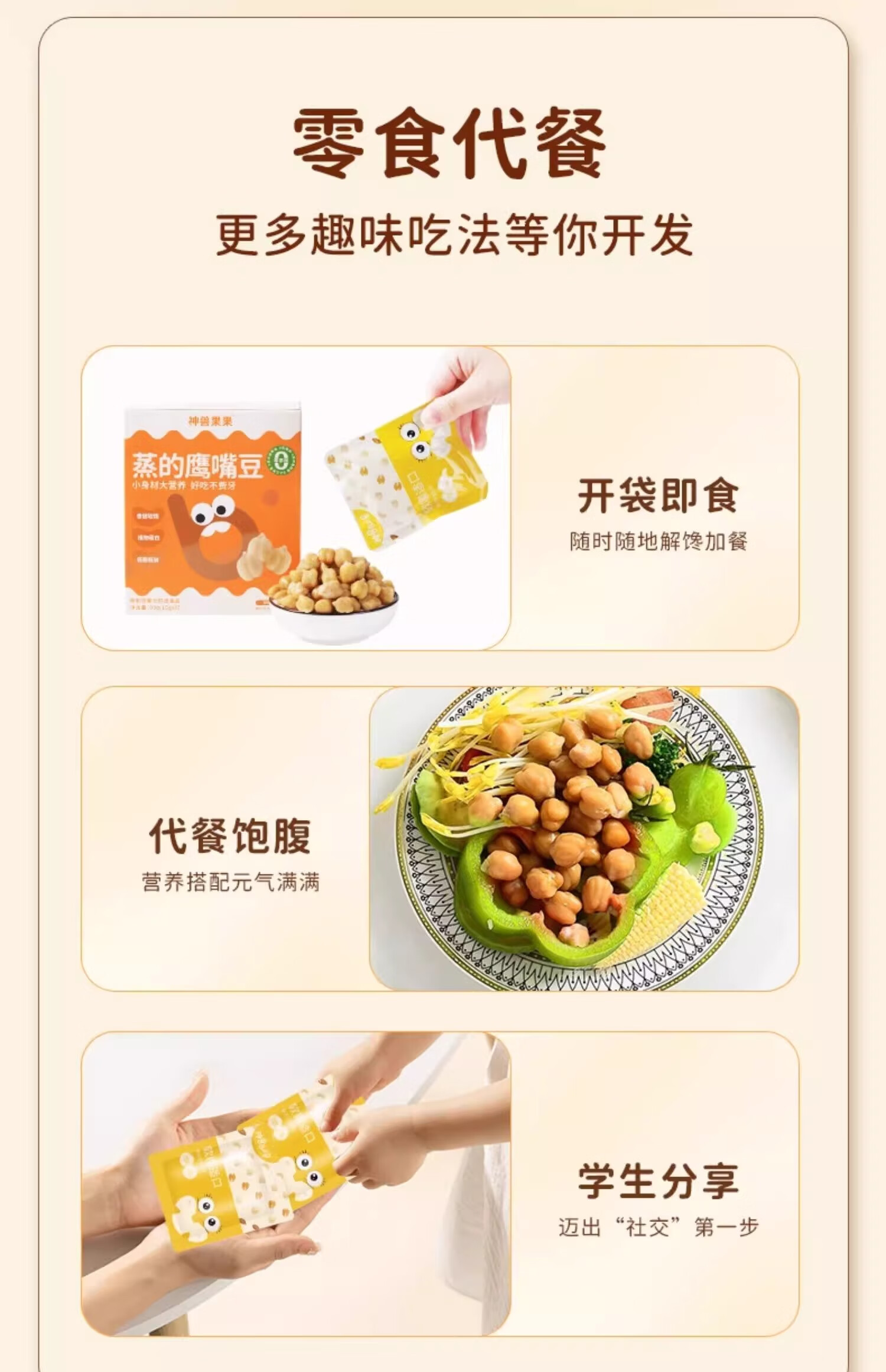 神兽果果蒸的鹰嘴豆独立包装即食零食熟坚果原味无蔗糖添加香酥粗粮杂粮豆 【6袋装】蒸的鹰嘴豆-原味