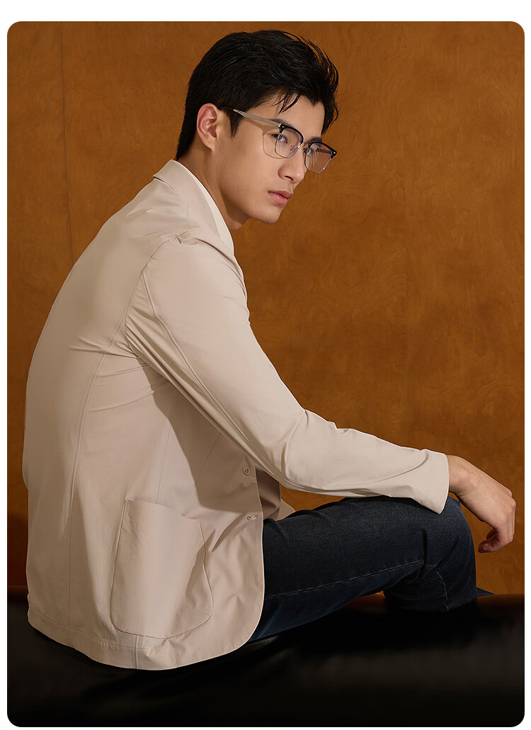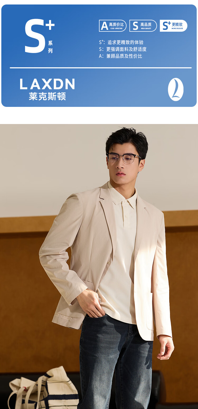莱克斯顿(laxdn)西服男春秋新款四面弹微皱肌理防泼水高级商务休闲西装上衣男 米白 46