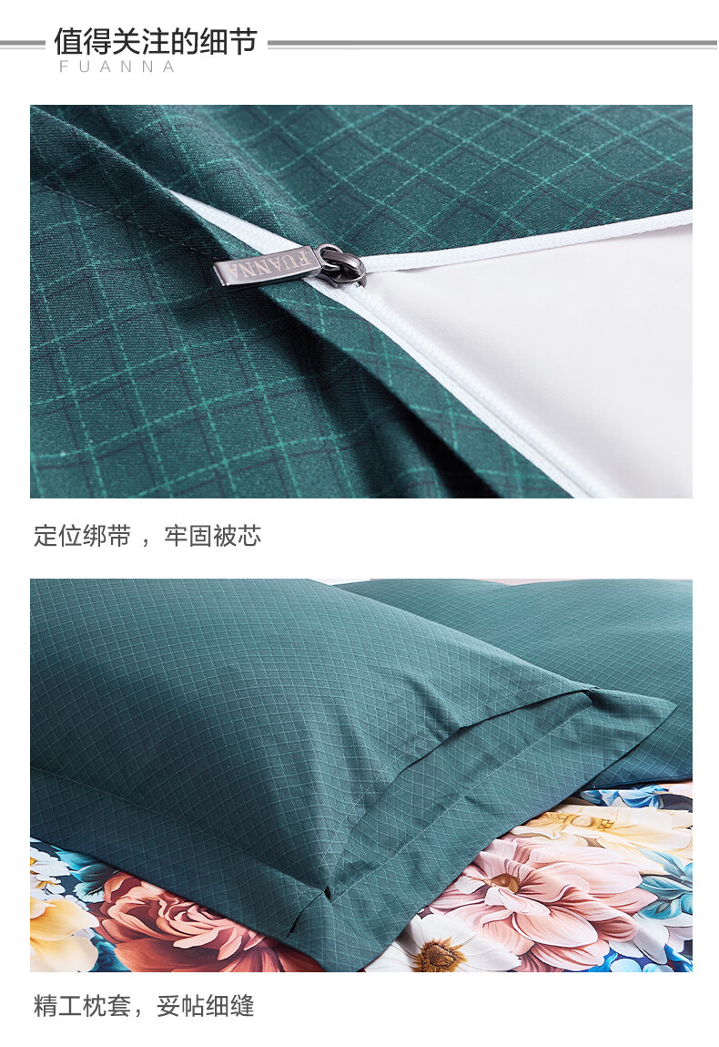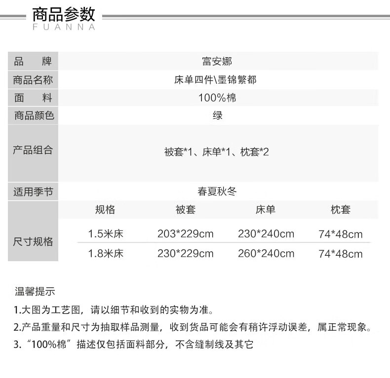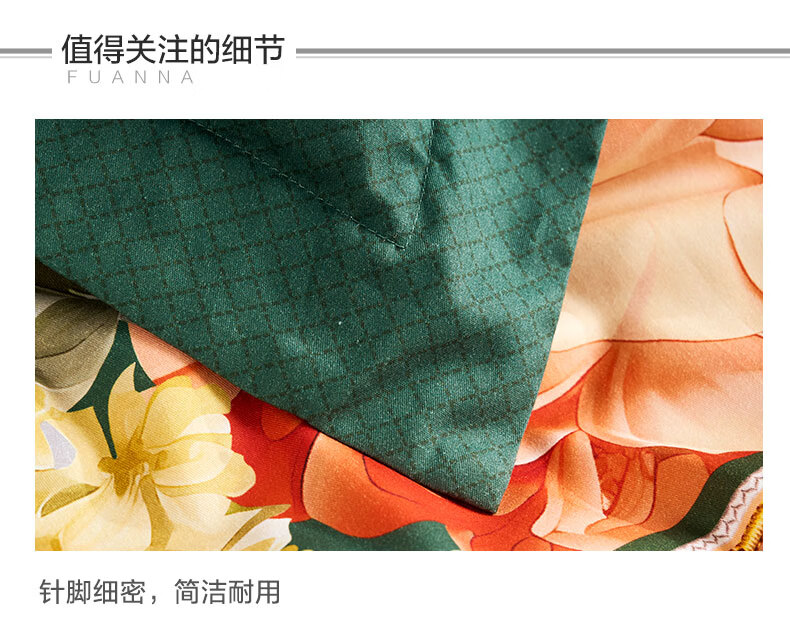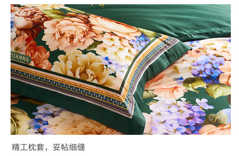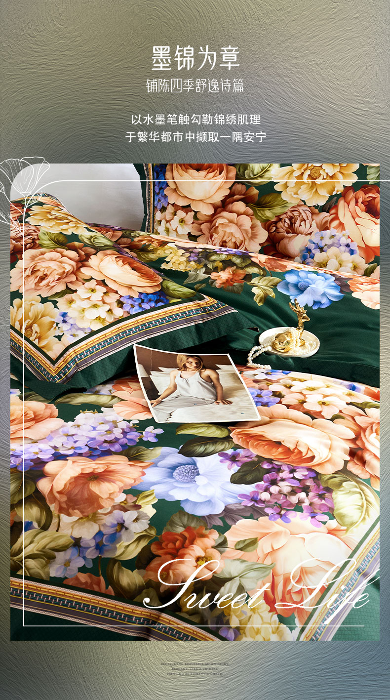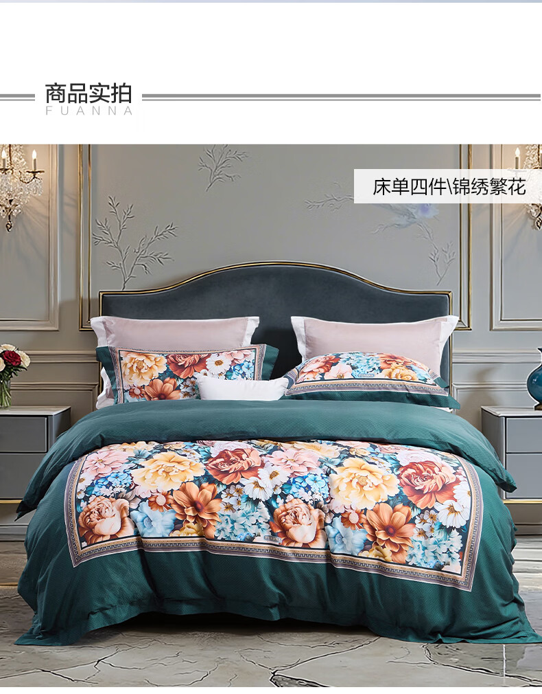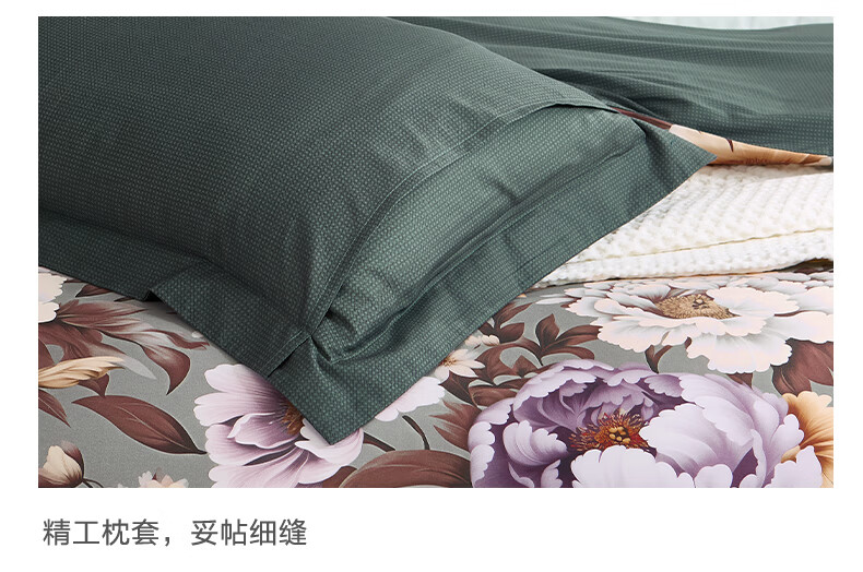 富安娜 床上四件套100%纯棉数码印花床品双人床单被套 【40支亲肤纯棉】墨锦 1.8米 床单款 (被套230*229cm)