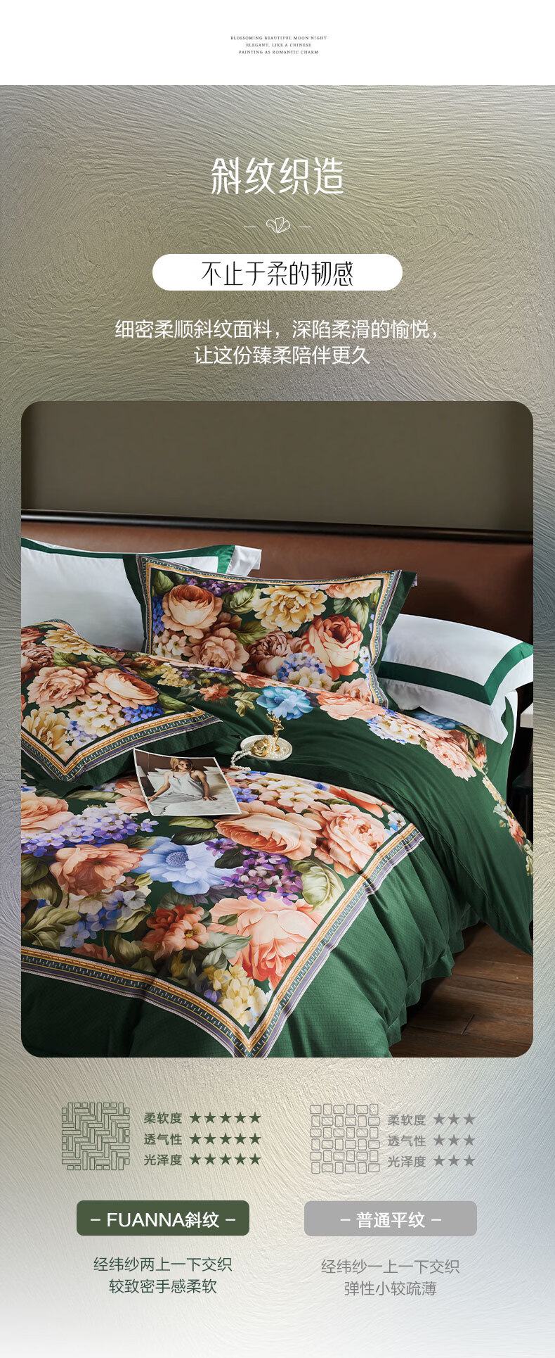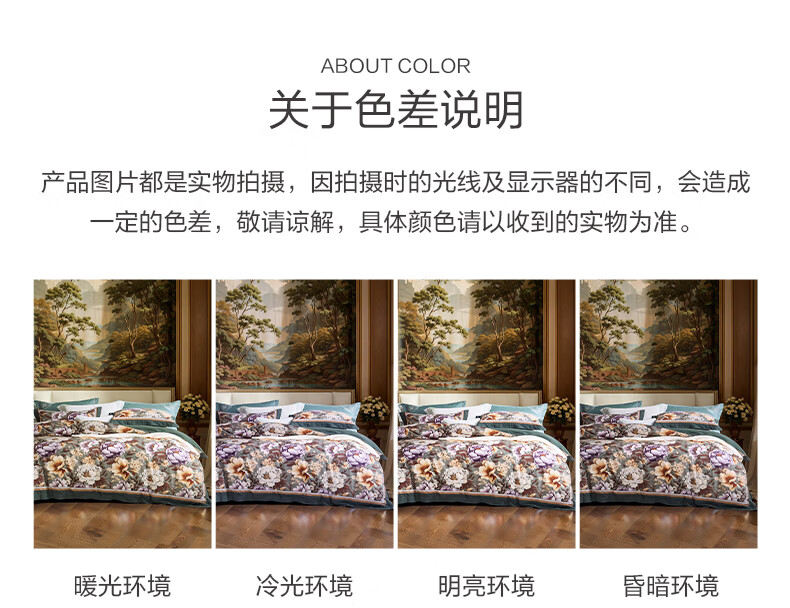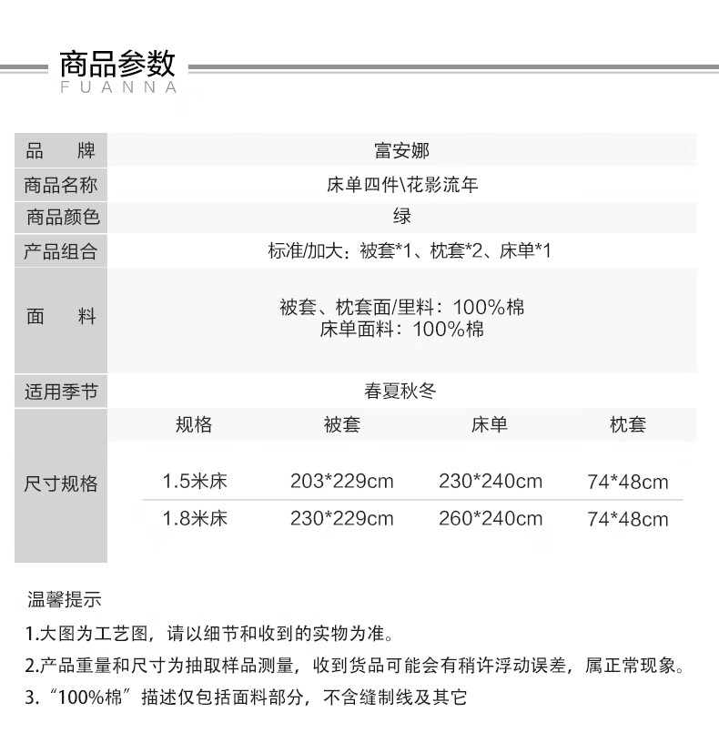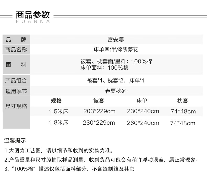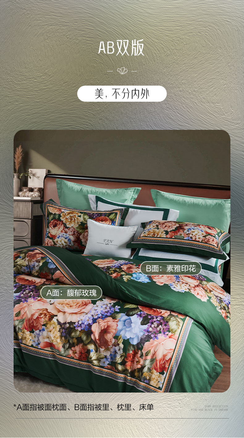 富安娜 床上四件套100%纯棉数码印花床品双人床单被套 【40支亲肤纯棉】墨锦 1.8米 床单款 (被套230*229cm)