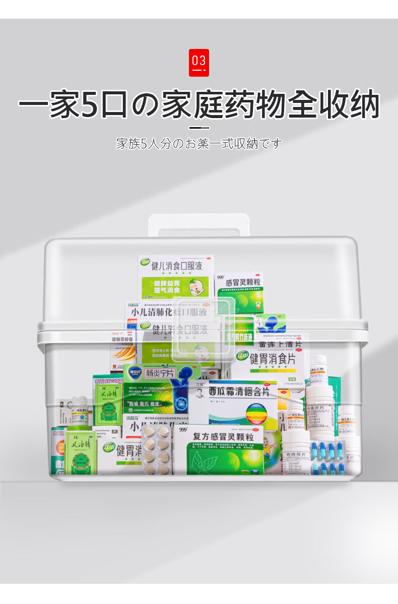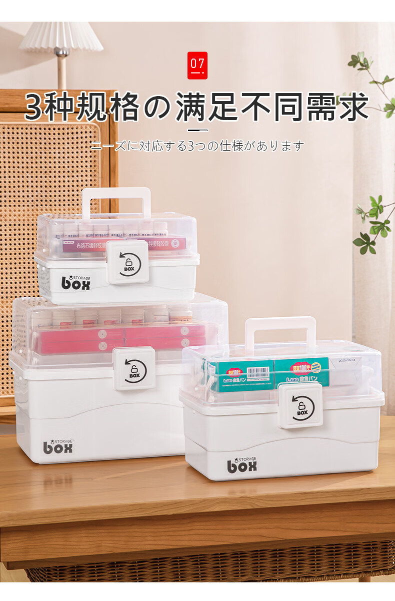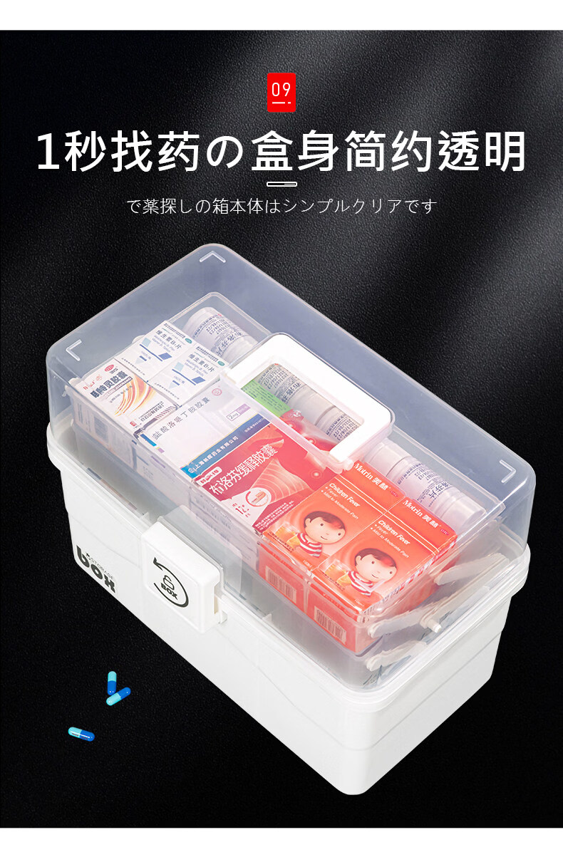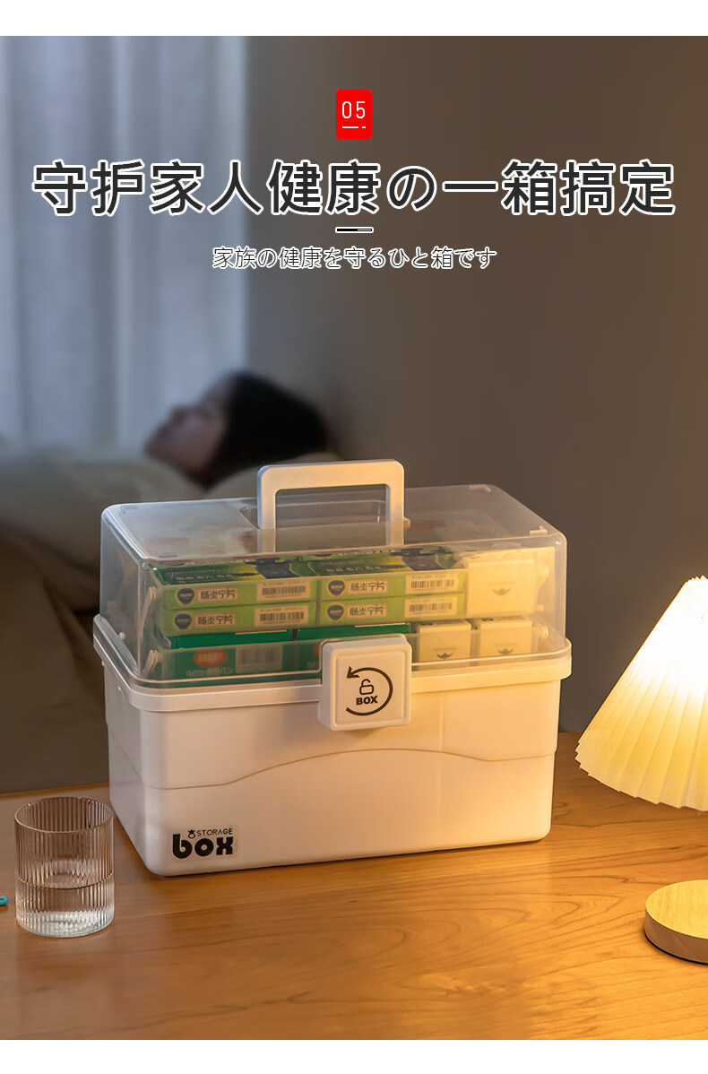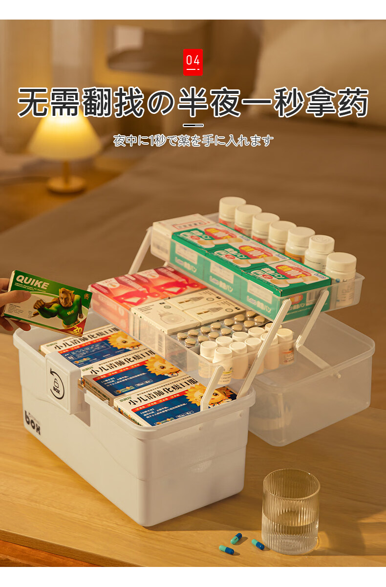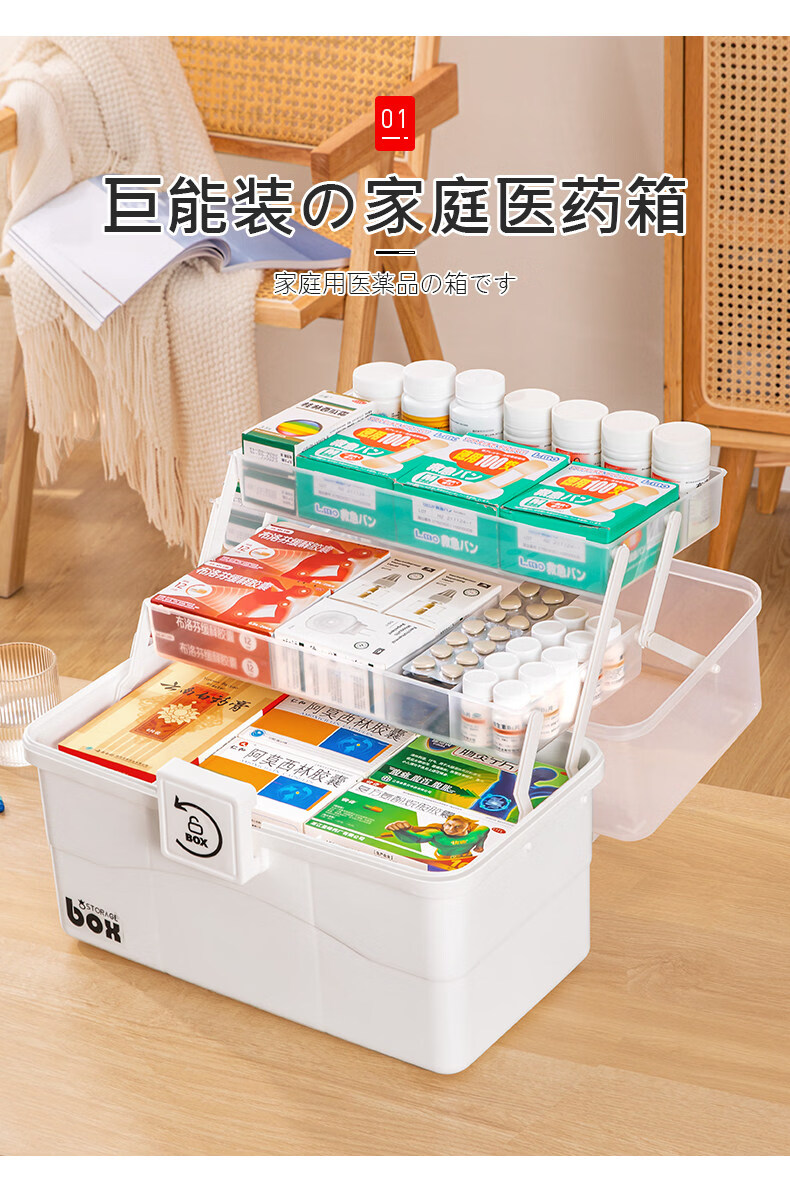 吱凡日本家用医药箱药物收纳盒家庭装大容量多层药品收纳盒便携药盒 【特大-奶油】3层透明【特厚】
