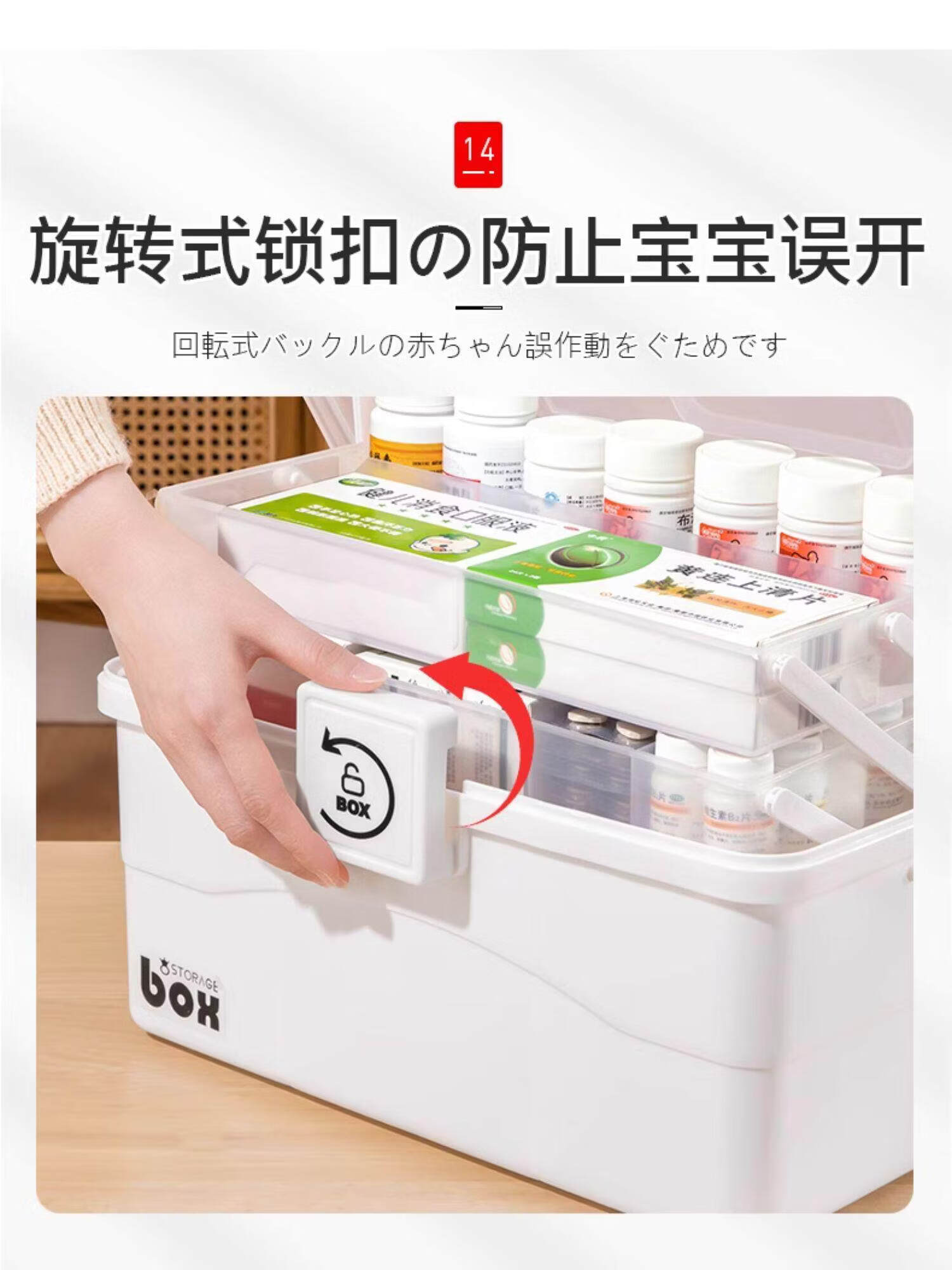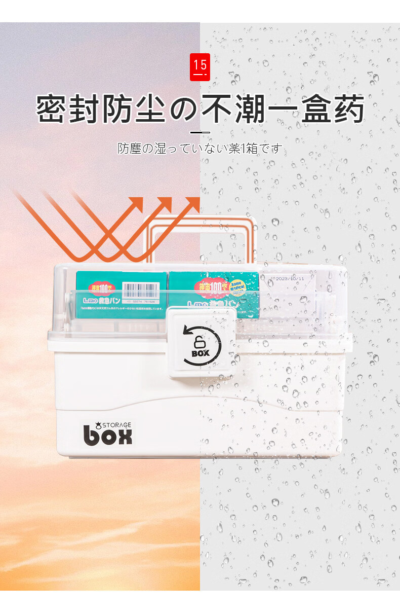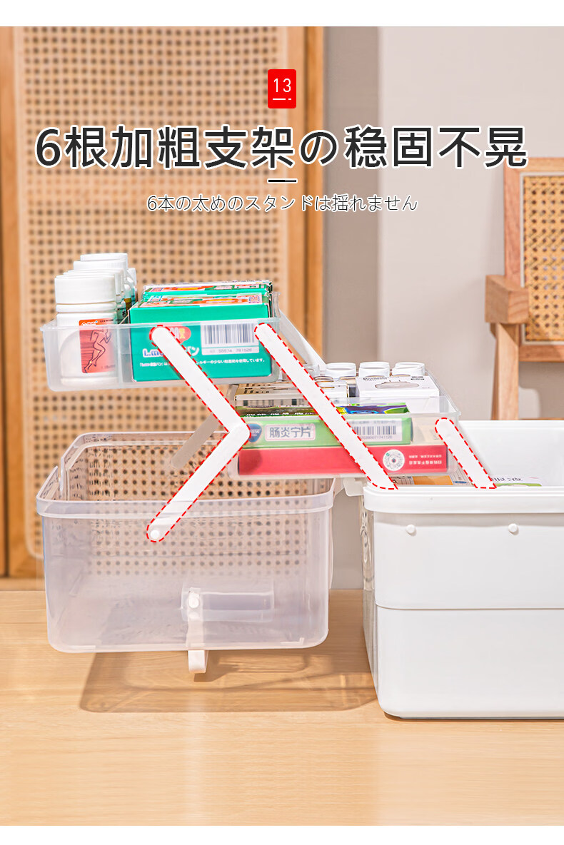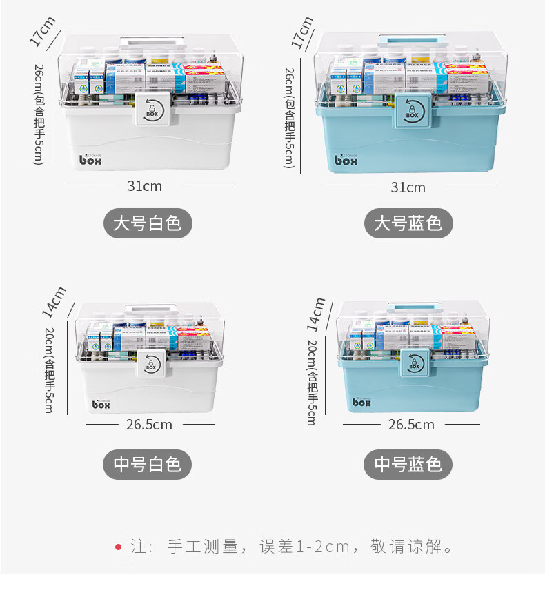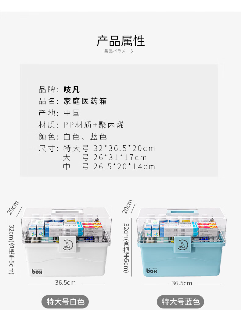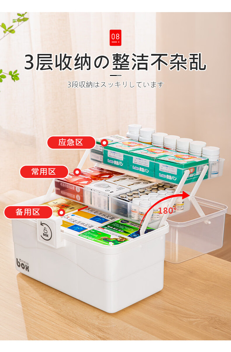 吱凡日本家用医药箱药物收纳盒家庭装大容量多层药品收纳盒便携药盒 【特大-奶油】3层透明【特厚】