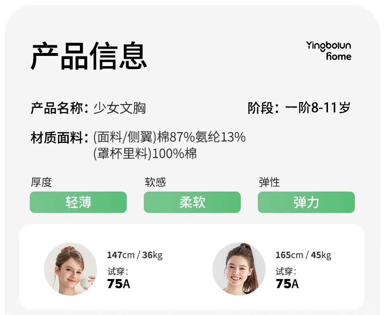 英博伦儿童少女内衣隐形文胸学生女大童一阶段发育期女孩小背心 30197奶白 均码 75