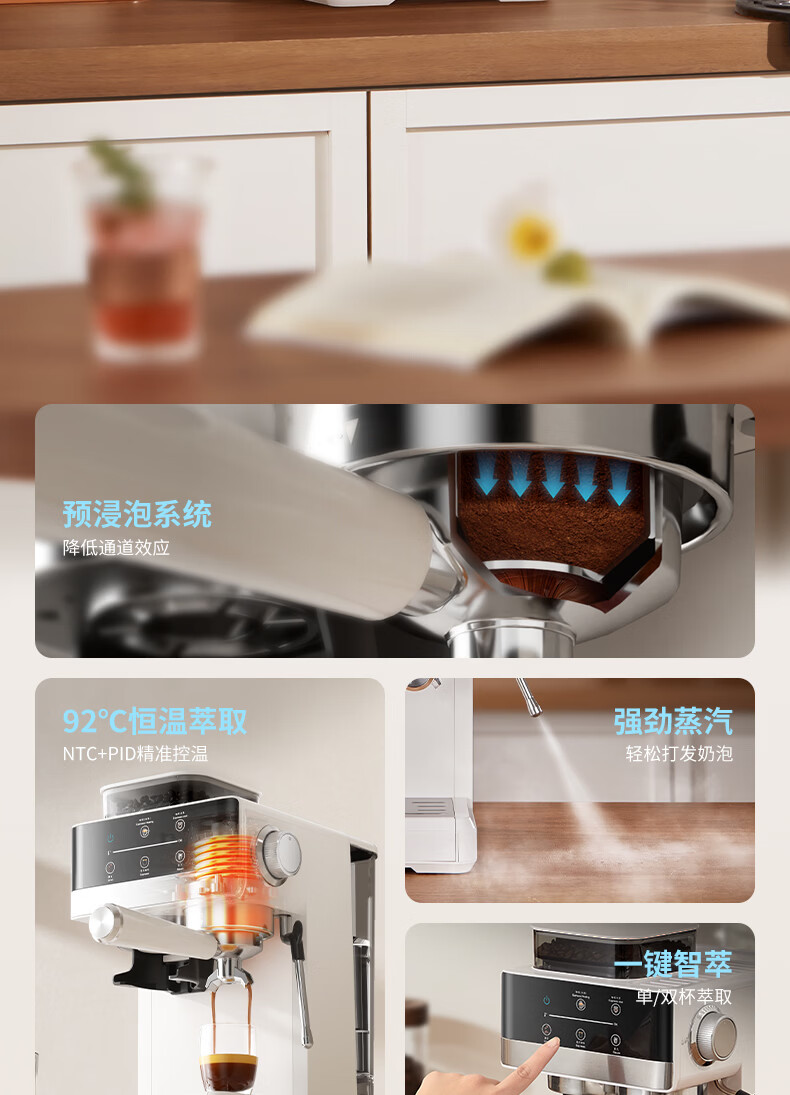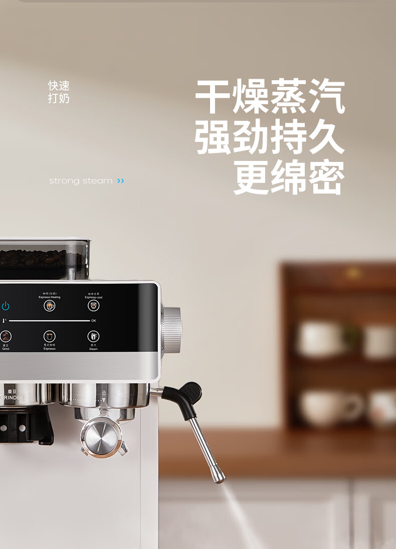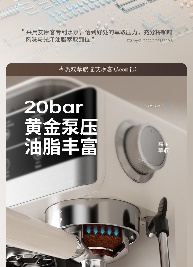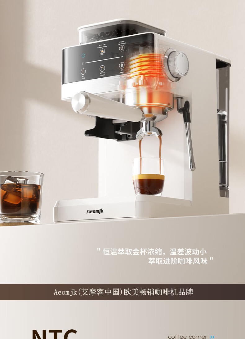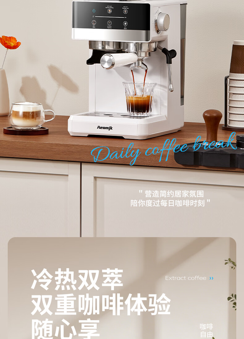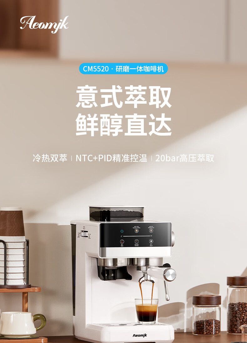 AEOMJK【新年礼物】艾摩客研磨一体冷热双萃取咖啡机 意式半自动家用美式公室咖啡机CM5520 【政府补贴】冷热双萃取研磨一体