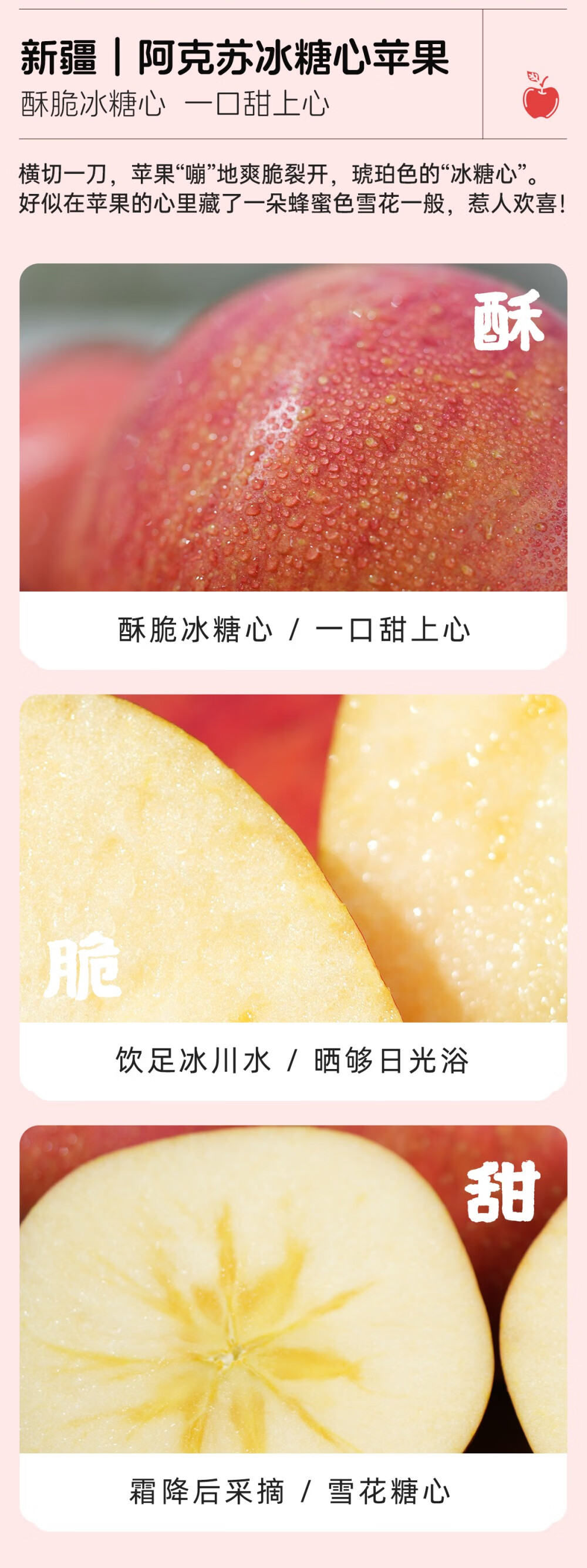 阿克苏苹果冰糖心新疆水果脆甜多汁红旗坡六队直发当季水果礼盒 冰糖心80-85mm【净5斤家庭装】 | 顺丰直发