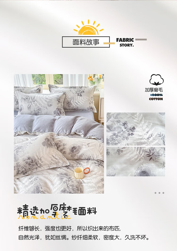 VJE简约全棉磨毛四件套100棉床单被套轻奢纯棉学生宿舍亲肤4件套 纯厚(奶白+棕) 三件套1.2m 床单款 (被套150*200cm)