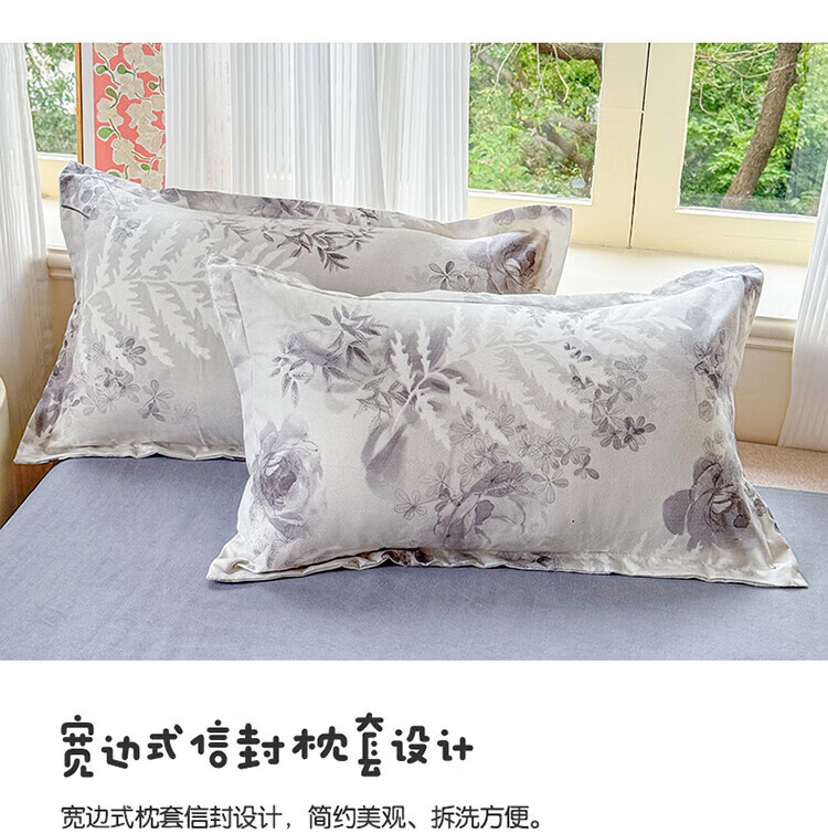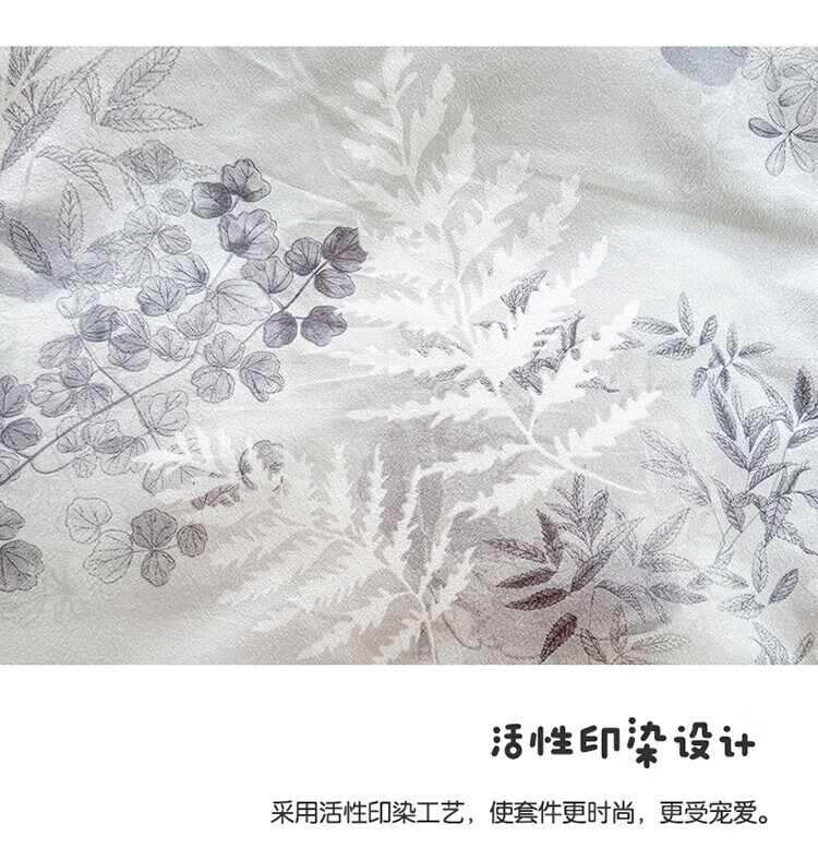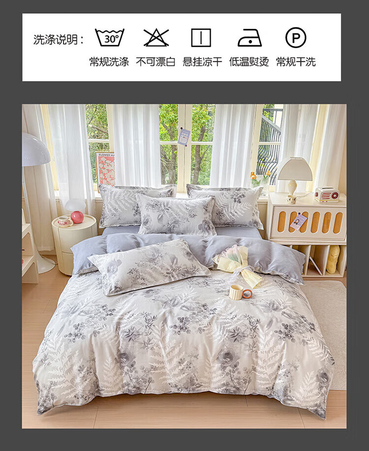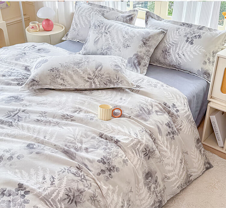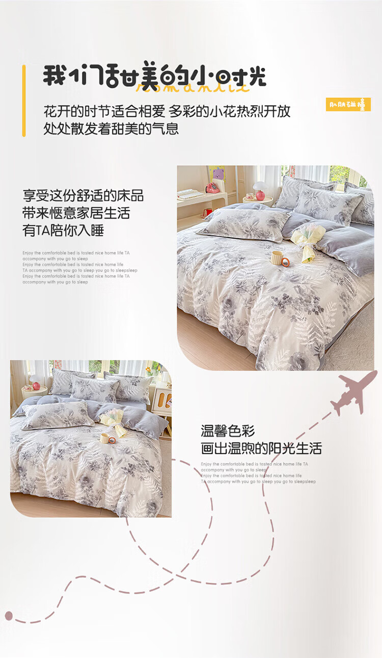 软贝 小清新四件套 透气亲肤 印花卡通简约田园套件被套床单床上用品 朵朵情怀-绿 2.0m 床单款 四件套(被套200*230cm)