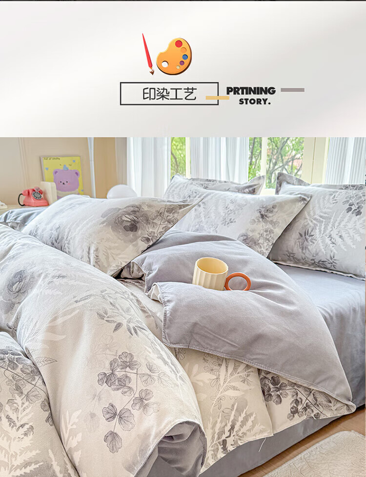 VJE美拉德加厚兔兔绒四件套冬季牛奶绒公主风床单床盖款四件套床品 床盖款-斑马冬日咖 四件套1.5m 床盖款 (被套200*230cm)