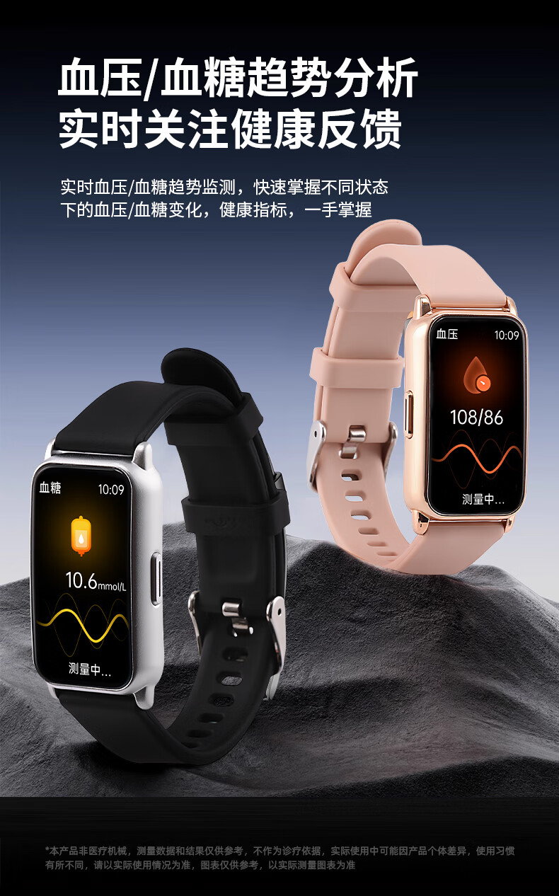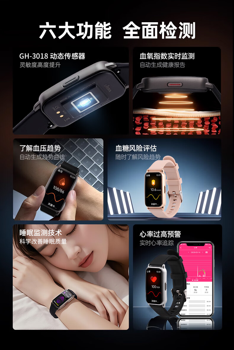 LASIKA男士多功能手表女士学生运动防水蓝牙计步心率血氧血压功能性手表 黑银色