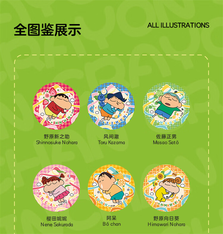 铭塔蜡笔小新双闪吧唧徽章正版授权立牌马口铁动漫周边挂件胸章盲盒 整盒【随机10个】不支持无理由退