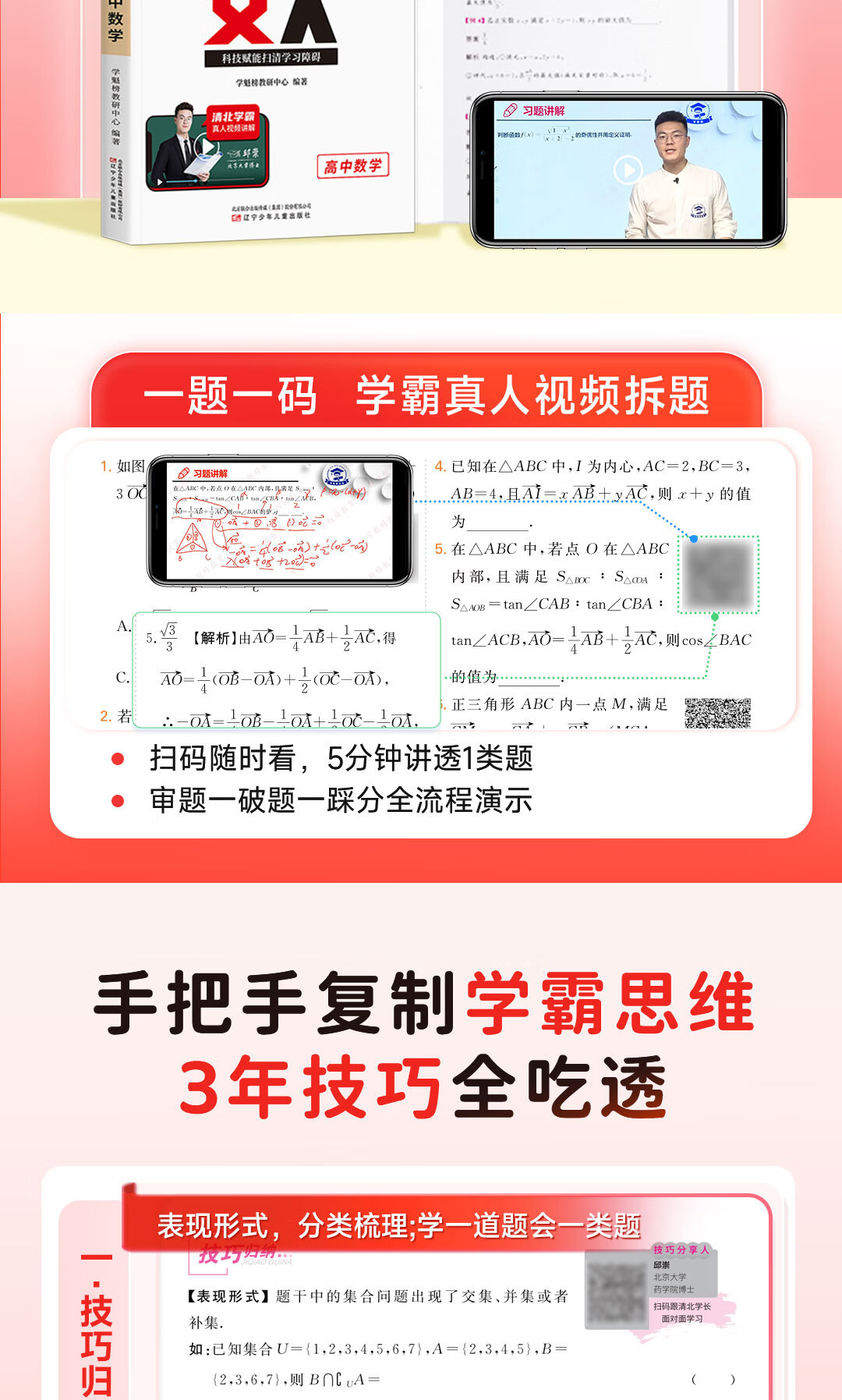 【3年1本搞定】77个解题妙招516个视频技巧+题目讲解 初中 【一本装】数学