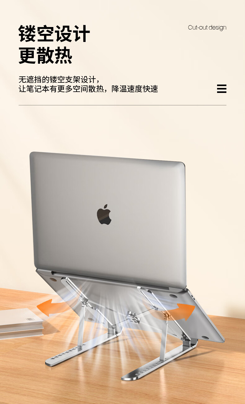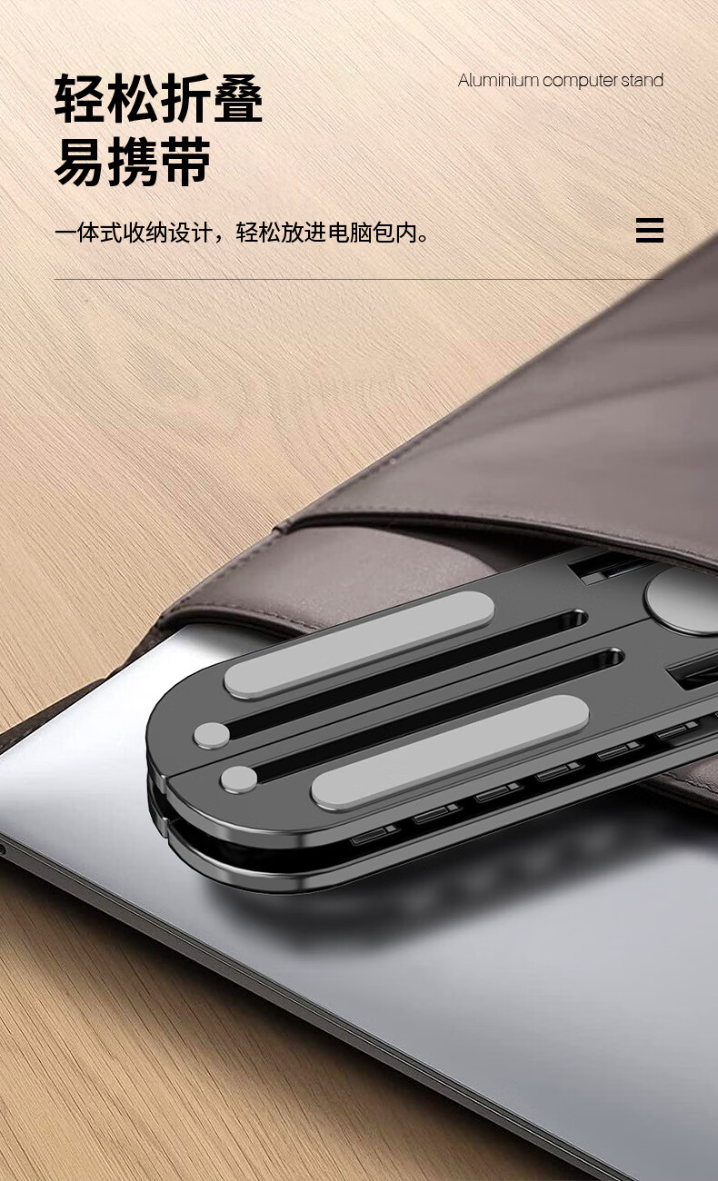 【严选百货】稳固笔记本支架便捷升降增高铝合金电脑支架折叠金属 【升级不硌手全铝合金】精英黑-加大号10档位调节款