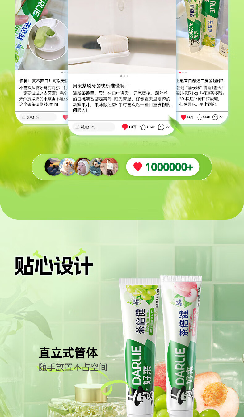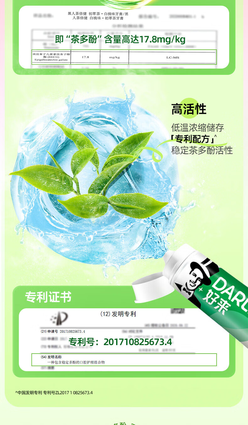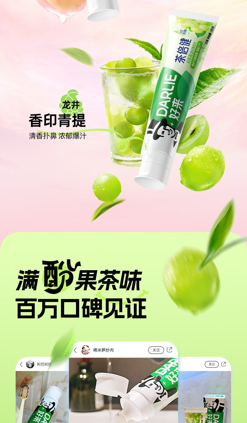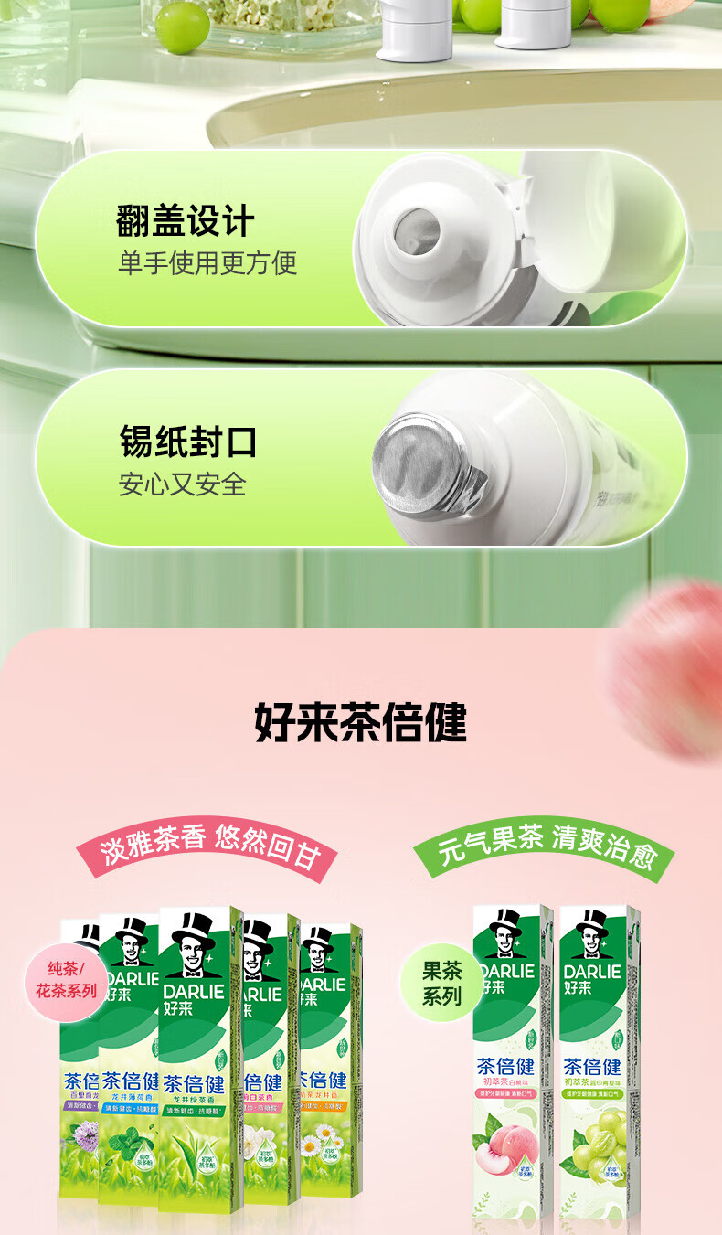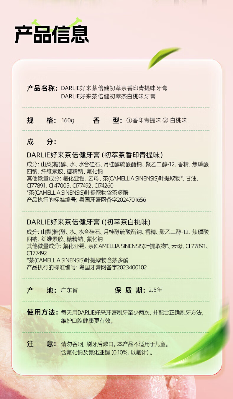 好来(原黑人)牙膏 茶倍健牙膏160g学生果潮茶味白桃乡印青提清新口气 白桃味 160g*1支 【新客体验装】