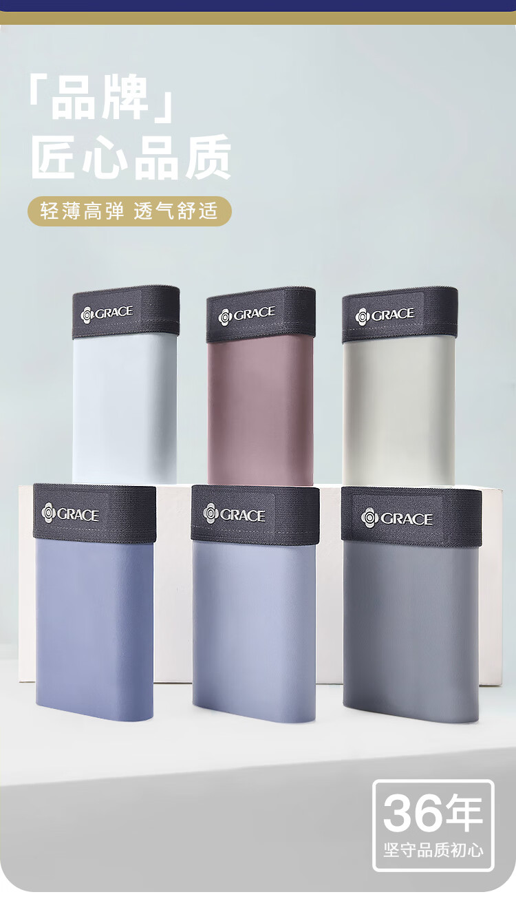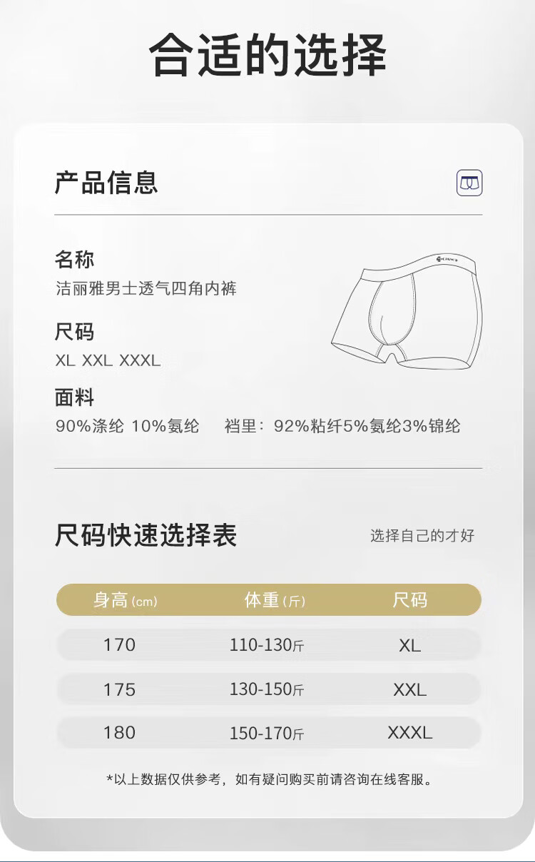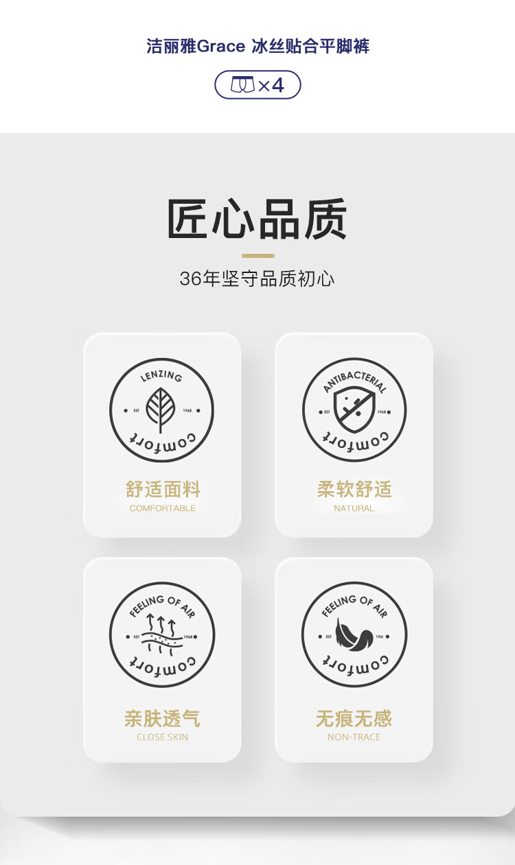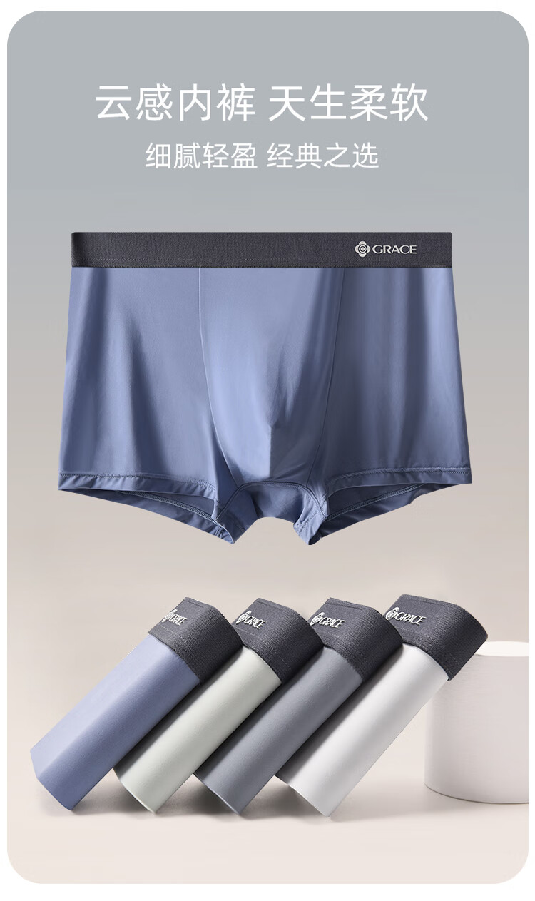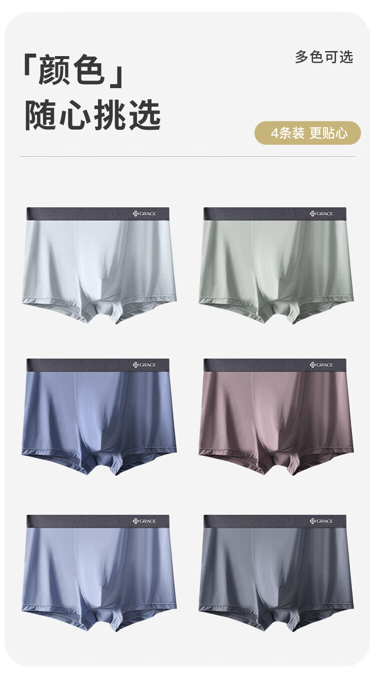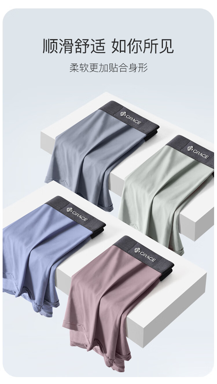 洁丽雅男士内裤4条装平角裤男青少年裤衩裸感冰丝四角短裤头服饰真5折 烟灰/绿灰/蓝灰/紫灰 4条 2XL (建议130-150斤)