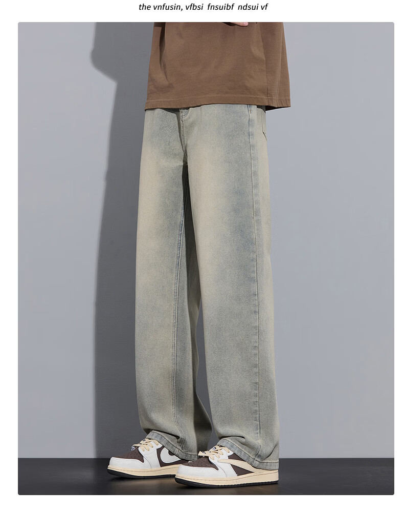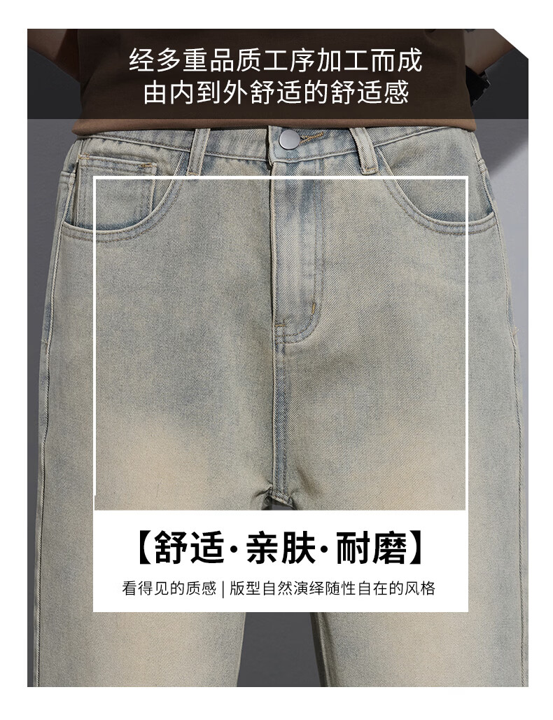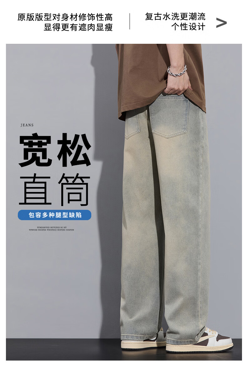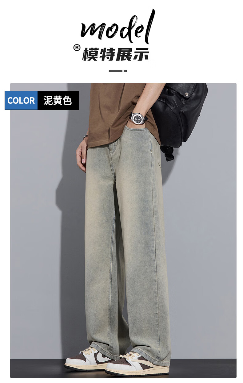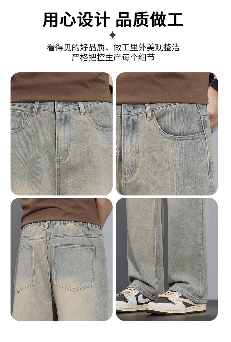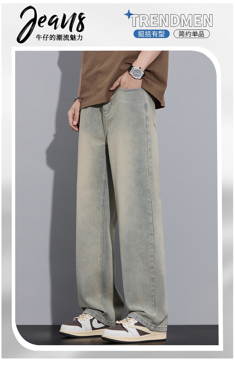 真维斯2026春秋季美式潮牌牛仔裤男直筒宽松休闲裤子青少年垂感浅色长裤 泥黄 M