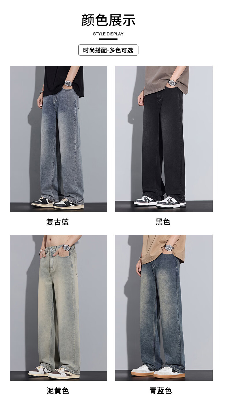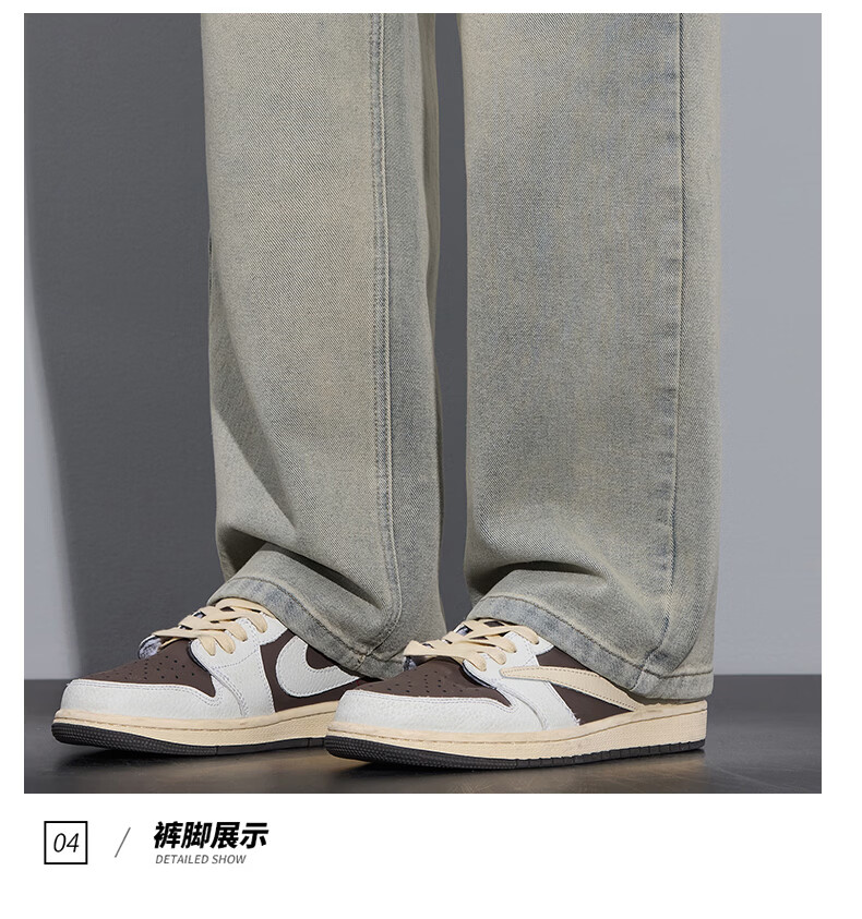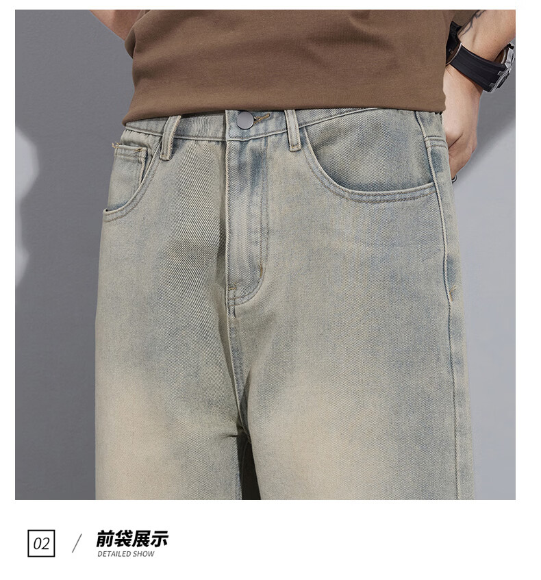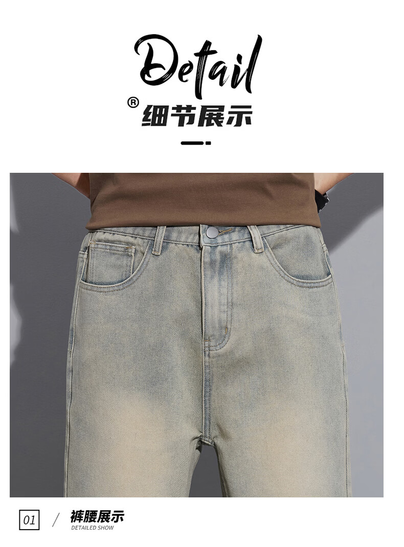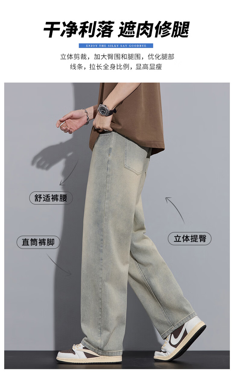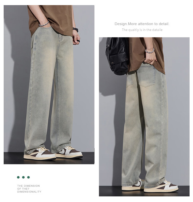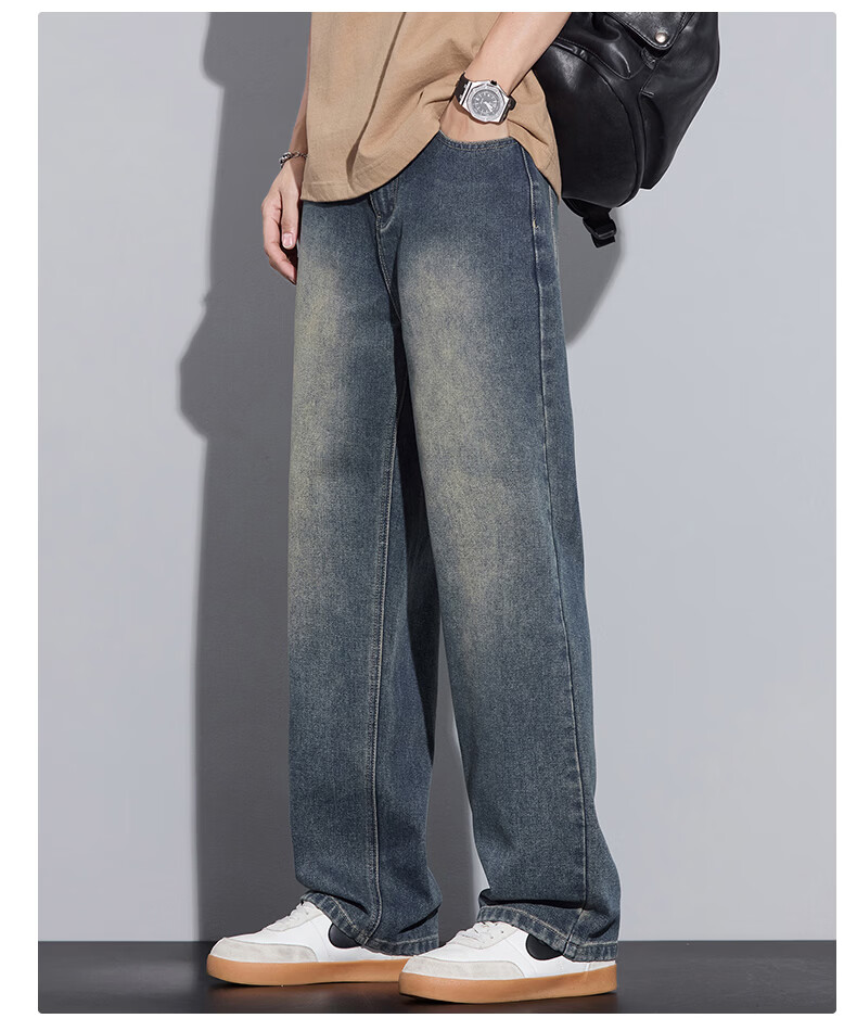 真维斯2026春秋季美式潮牌牛仔裤男直筒宽松休闲裤子青少年垂感浅色长裤 泥黄 M