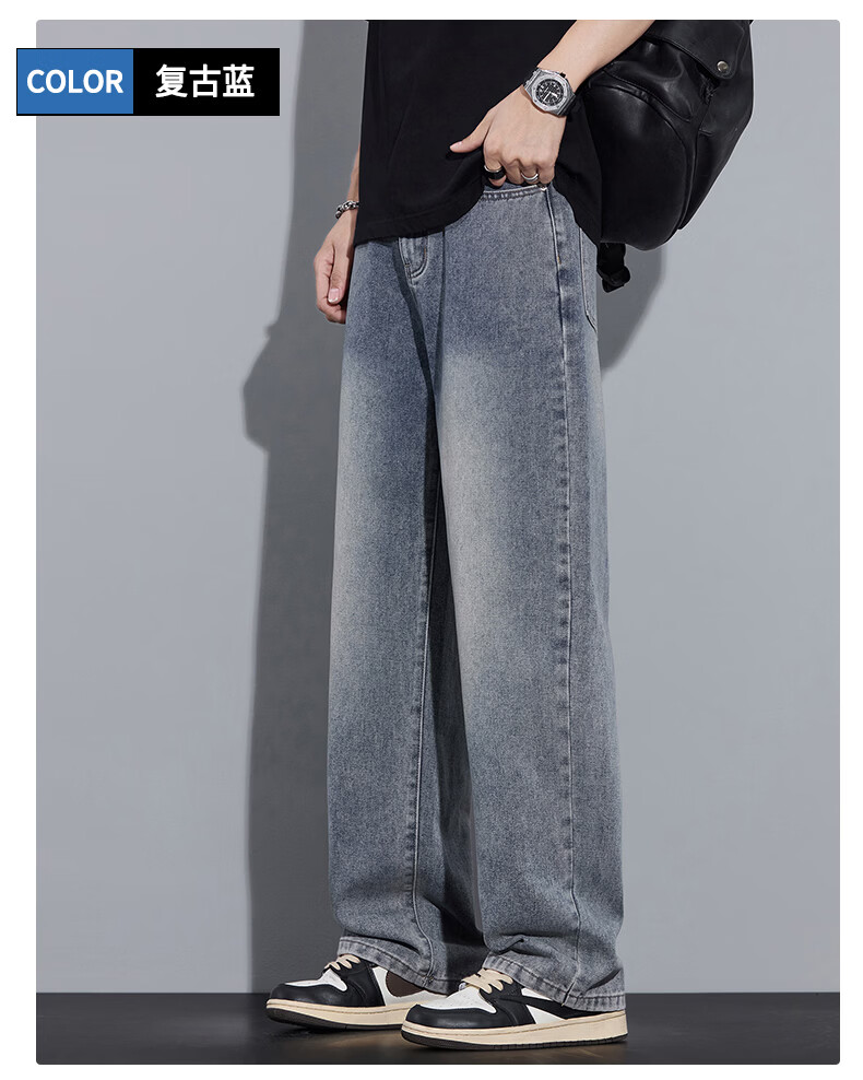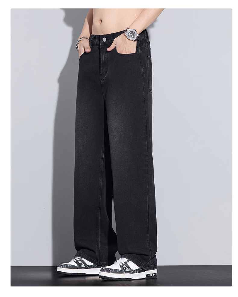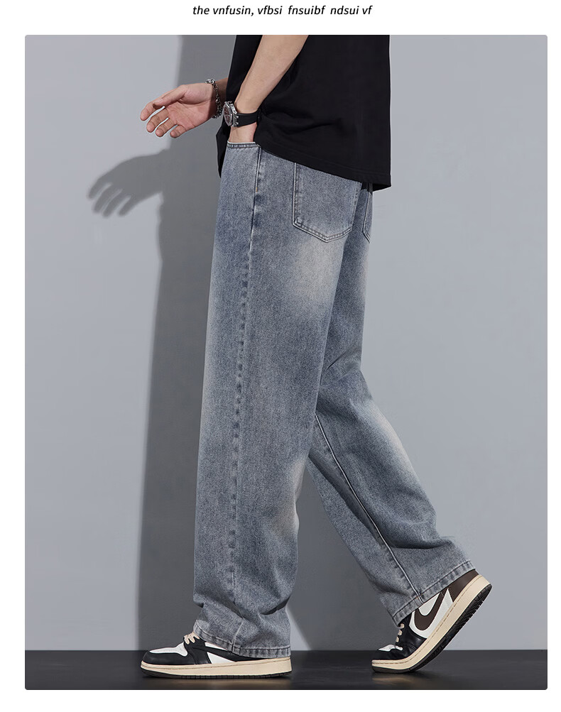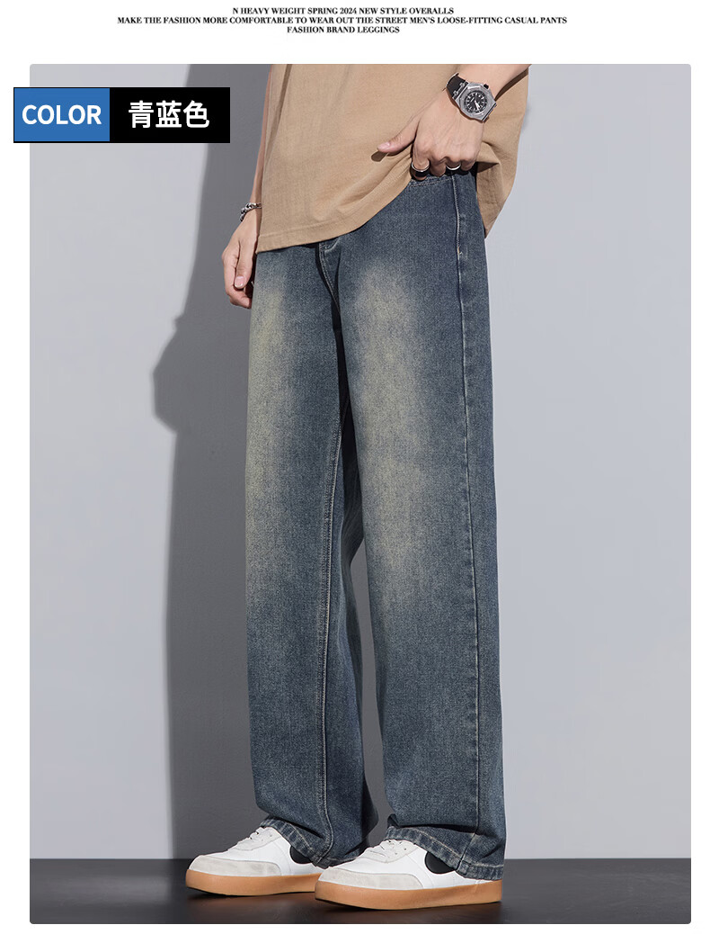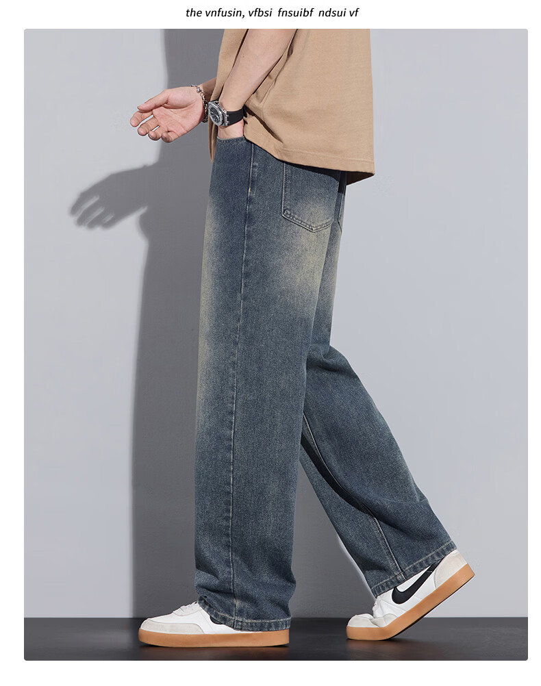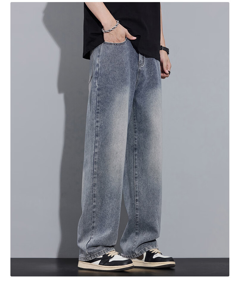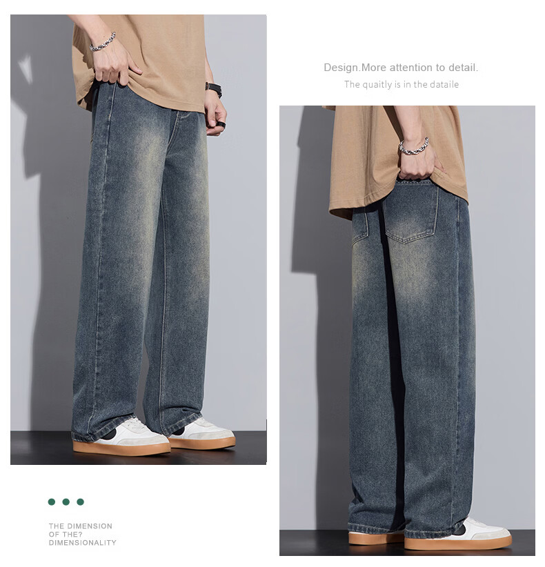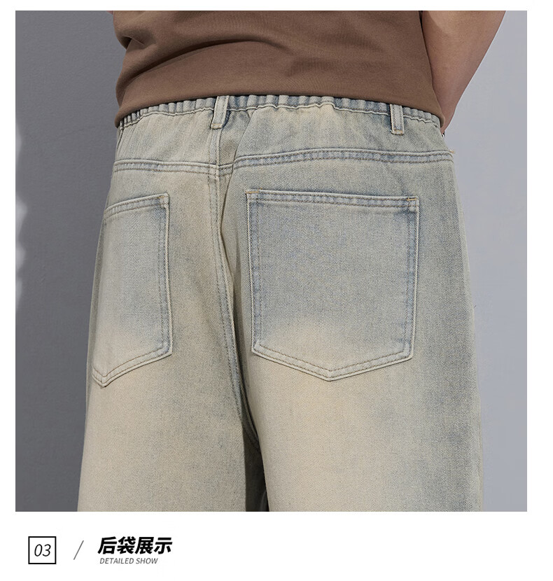 真维斯2026春秋季美式潮牌牛仔裤男直筒宽松休闲裤子青少年垂感浅色长裤 泥黄 M