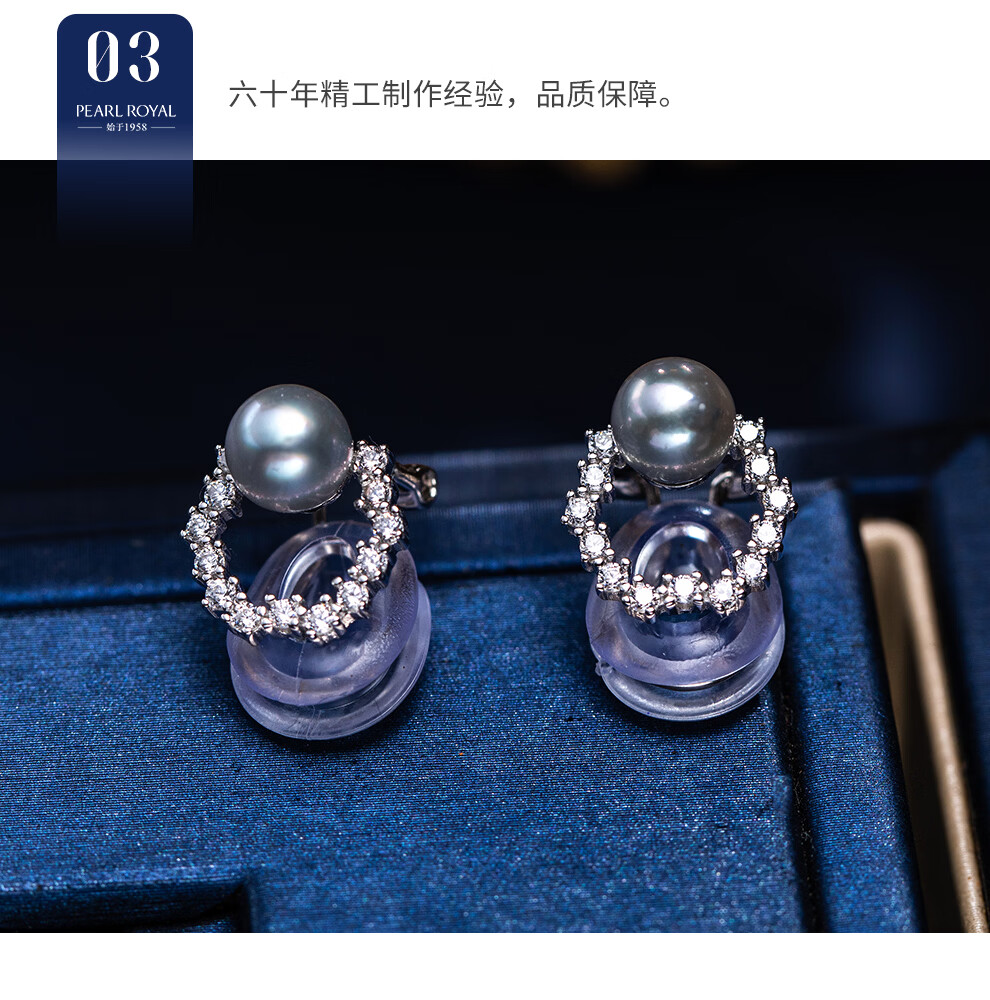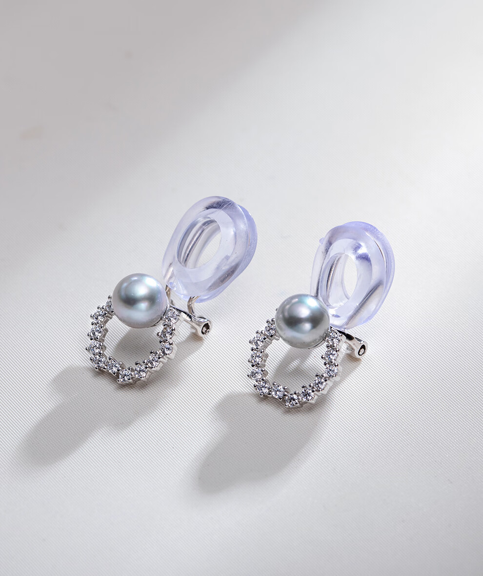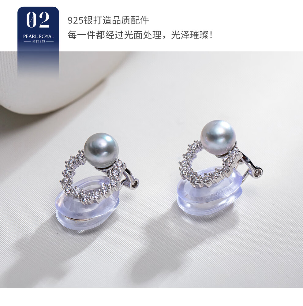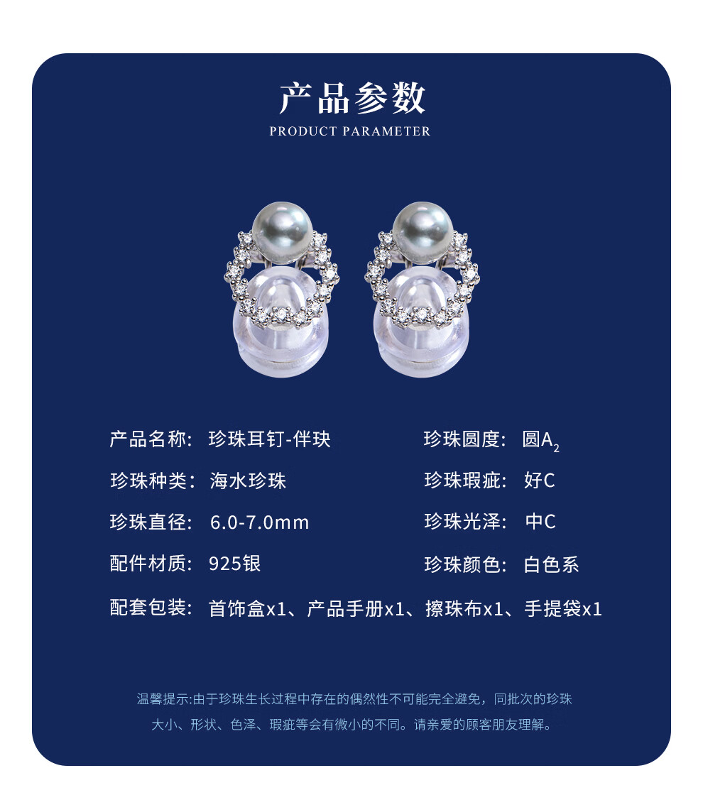 南珠宫伴玦925银海水珍珠耳环真多麻耳夹强光圆形生日礼物送女友 6.0-7.0mm 925银海水珍珠耳环